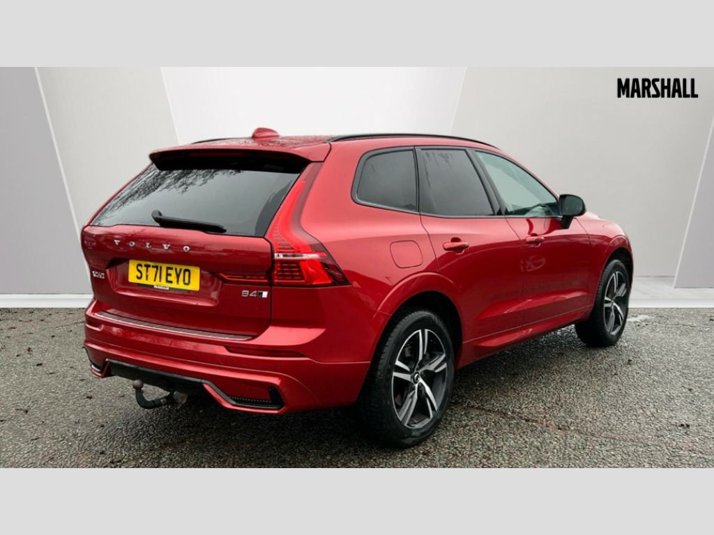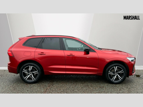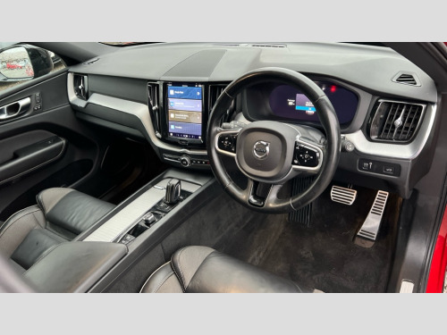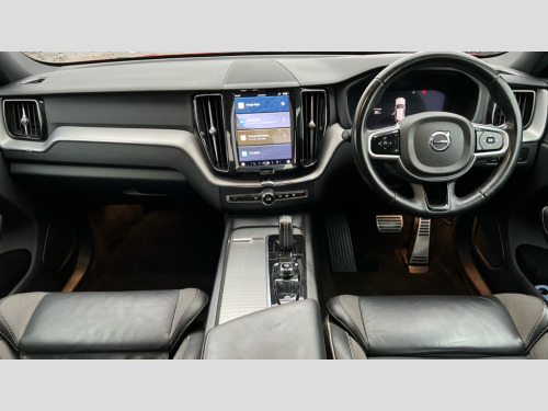 Volvo XC60 2.0 B4D R DESIGN 5dr AWD Geartronic 12.3" Active TFT crystal driver's instrument display, 9" centre console touch screen, Adjustable steering wheel force, Bluetooth handsfree system, Drive mode selector, Driver alert control with lane keeping aid, Front and rear park assist, Google Automotive Services, Oncoming Lane Mitigation, Service interval indicator, Speed limiter, Speed sensitive steering, Trip computer, Volvo on call with App, Wireless/Inductive Mobile Phone Charging, 8 speed automatic transmission with start/stop + manual change functions, Diesel particulate filter, Dynamic chassis, DAB Digital radio, Adaptive brake lights with high level LED brake lights, Auto dimming interior + exterior mirrors, Automatic headlight levelling system, Automatic LED Headlights + Active high beam incorporating daytime running lights, Dark tinted windows for rear side windows and cargo area, Electric adjustable/heated/auto power folding door mirrors, Electric front+rear windows, Front aluminium tread plates, High gloss black door mirrors, High gloss black mesh front grille with high gloss black surround, High gloss black rear bumper deco, High gloss black window frame surround, Home safe and approach lighting, Integrated roof rails in high gloss black, Puddle lights, Rain sensor with automatic windscreen wiper activation, Rear side wing doors, Rear wiper, Roof antenna, Roof spoiler, Tinted windscreen, Visible VIN plate, 12V socket in front tunnel console and luggage compartment, 3 spoke tailored sports steering wheel, A-pillar parking ticket holder, B Pillar ventilation, Bright metal luggage threshold, Centre armrest storage illumination, Centre console cupholders and storage, Charcoal headlining, Contour sports seats with nappa leather/textile upholstery, Floor mats, Front and rear door pocket and front cupholder illumination, Front footwell and side step illumination, Front reading lights, Front seat cushion extensions, Head restraints for all seats, Heated front seats, Height/reach adjustable steering column, High gloss black steering wheel remote infotainment controls, Illuminated glovebox, Illuminated luggage compartment, Illuminated vanity mirrors + ticket holder, Load cover, Load protection net, Multi directional lumbar support, Rear armrest with cupholder, Rear footwell and side step illumination, Rear seat concealed storage, Single front passenger seat, Sport leather gear knob, Sport pedals, Tailgate illumination and ambient door lighting, Underfloor stowage compartment, Versatile split folding rear seat - 60/40, 5 three point seatbelts, City safety with steering support with Pedestrian + cyclist + large animal detection + front collision warning with full auto brake, Drivers knee airbag, Dual stage driver/passenger airbags, Electronic parking brake with auto hold, First aid kit, Hill descent control, Hill start assist, IC (Inflatable Curtains) - Full Length, Mechanical child locks on rear doors, Passenger airbag cut-off device, Road sign information display, Run off Road Mitigation, Run off Road Protection, Seatbelt reminder and pretensioners, SIPS (Side Impact Protection System), SIPS airbags, Slippery road and hazard light alert, Stability and Traction Control with Spin control, Engine Drag Control and Corner Traction Control, Tyre pressure monitoring system, Vehicle deceleration control with Anti-lock Brake System, Electronic Brake Distribution and Emergency Brake Assist, Warning triangle, WHIPS whiplash protection system - front, Anti-theft alarm including immobiliser/volume sensor + level sensor, Care key with user defined top speed, Key integrated remote control central locking + fuel flap with deadlocking system and auto open/close power windows, Keyless Drive (includes Keyless Entry and Keyless Start) with Handsfree Tailgate Opening/Closing, Locking wheel nuts, Private locking for tailgate, Metal mesh inlays