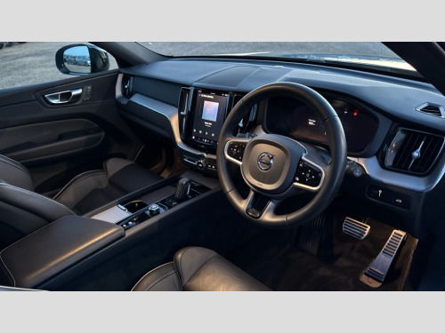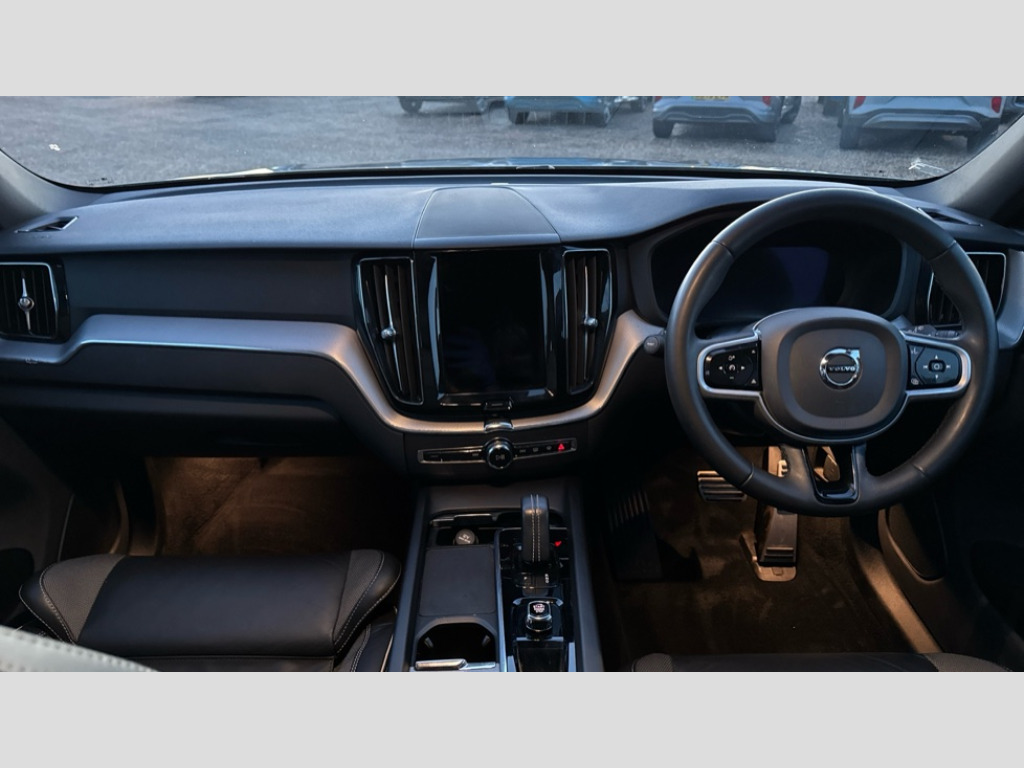 Volvo XC60 2.0 B4D R DESIGN 5dr AWD Geartronic 12.3" Active TFT crystal driver's instrument display, 9" centre console touch screen, Adjustable steering wheel force, Bluetooth handsfree system, Drive mode selector, Driver alert control with lane keeping aid, Front and rear park assist, Google Automotive Services, Oncoming Lane Mitigation, Service interval indicator, Speed limiter, Speed sensitive steering, Trip computer, Volvo on call with App, Wireless/Inductive Mobile Phone Charging, 8 speed automatic transmission with start/stop + manual change functions, Diesel particulate filter, Dynamic chassis, DAB Digital radio, Adaptive brake lights with high level LED brake lights, Auto dimming interior + exterior mirrors, Automatic headlight levelling system, Automatic LED Headlights + Active high beam incorporating daytime running lights, Dark tinted windows for rear side windows and cargo area, Electric adjustable/heated/auto power folding door mirrors, Electric front+rear windows, Front aluminium tread plates, High gloss black door mirrors, High gloss black mesh front grille with high gloss black surround, High gloss black rear bumper deco, High gloss black window frame surround, Home safe and approach lighting, Integrated roof rails in high gloss black, Puddle lights, Rain sensor with automatic windscreen wiper activation, Rear side wing doors, Rear wiper, Roof antenna, Roof spoiler, Tinted windscreen, Visible VIN plate, 12V socket in front tunnel console and luggage compartment, 3 spoke tailored sports steering wheel, A-pillar parking ticket holder, B Pillar ventilation, Bright metal luggage threshold, Centre armrest storage illumination, Centre console cupholders and storage, Charcoal headlining, Contour sports seats with nappa leather/textile upholstery, Floor mats, Front and rear door pocket and front cupholder illumination, Front footwell and side step illumination, Front reading lights, Front seat cushion extensions, Head restraints for all seats, Heated front seats, Height/reach adjustable steering column, High gloss black steering wheel remote infotainment controls, Illuminated glovebox, Illuminated luggage compartment, Illuminated vanity mirrors + ticket holder, Load cover, Load protection net, Multi directional lumbar support, Rear armrest with cupholder, Rear footwell and side step illumination, Rear seat concealed storage, Single front passenger seat, Sport leather gear knob, Sport pedals, Tailgate illumination and ambient door lighting, Underfloor stowage compartment, Versatile split folding rear seat - 60/40, 5 three point seatbelts, City safety with steering support with Pedestrian + cyclist + large animal detection + front collision warning with full auto brake, Drivers knee airbag, Dual stage driver/passenger airbags, Electronic parking brake with auto hold, First aid kit, Hill descent control, Hill start assist, IC (Inflatable Curtains) - Full Length, Mechanical child locks on rear doors, Passenger airbag cut-off device, Road sign information display, Run off Road Mitigation, Run off Road Protection, Seatbelt reminder and pretensioners, SIPS (Side Impact Protection System), SIPS airbags, Slippery road and hazard light alert, Stability and Traction Control with Spin control, Engine Drag Control and Corner Traction Control, Tyre pressure monitoring system, Vehicle deceleration control with Anti-lock Brake System, Electronic Brake Distribution and Emergency Brake Assist, Warning triangle, WHIPS whiplash protection system - front, Anti-theft alarm including immobiliser/volume sensor + level sensor, Care key with user defined top speed, Key integrated remote control central locking + fuel flap with deadlocking system and auto open/close power windows, Keyless Drive (includes Keyless Entry and Keyless Start) with Handsfree Tailgate Opening/Closing, Locking wheel nuts, Private locking for tailgate, Metal mesh inlays