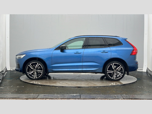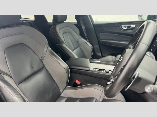 Volvo XC60 2.0 B4D R DESIGN Pro 5dr AWD Geartronic 12.3" Active TFT crystal driver's instrument display, 9" Touch screen, Adjustable steering wheel force, Bluetooth hands free telephone kit, Drive mode selector, Front collision warning with full auto brake, Intelligent driver information system (IDIS), Lane keep assist with driver alert control, Oncoming Lane Mitigation, Power tailgate, Remote fuel flap release, Road Edge Detection, Service interval indicator, Speed limiter, Speed sensitive steering, Trip computer, Voice control system, Volvo on call, Active four-C chassis + four corner adaptive damper with electronic rear air suspension, Diesel particulate filter, DAB Digital radio, Active bending headlights with adaptive shadow technology, Adaptive brake lights with high level LED brake lights, Auto dimming interior + exterior mirrors, Body colour bumpers, Dark tinted glass for rear windows + rear screen + side luggage area window, Dual integrated exhaust pipes with high gloss black surround, Electric folding door mirrors, Electric front+rear windows, Electrically adjustable and heated door mirrors, Headlamp cleaning system, Headlamp levelling, Heated aqua blades, High gloss black door mirrors, High gloss black roof rails, High gloss black window frame surround, Home safe and approach lighting, Illuminated side steps, LED front fog lights with static cornering light function, LED Headlights + Active high beam incorporating daytime running lights, R Design tread plates, Rain sensor with automatic windscreen wiper activation, Rear wiper, Roof antenna, Roof spoiler, Tinted windscreen, Visible VIN plate, 12V power point in luggage area, 3 spoke leather steering wheel with chrome trim, 60/40 split folding rear seat, A-pillar parking ticket holder, B Pillar ventilation, Black headlining, Bright metal luggage threshold, Centre armrest storage illumination, Centre console cupholders and storage, Contour sports seats with leather/textile upholstey, Electric drivers seat with memory, height adjust and multi directional lumbar support + mirrors memory, Extended front seat cushions, Front and rear door pocket and front cupholder illumination, Front footwell illumination, Front reading lights, Glovebox illumination, Head restraints for all seats, Heated front seats, Heated steering wheel, Height/reach adjustable steering column, High gloss black steering wheel remote infotainment controls, Illuminated driver/passenger vanity mirrors, Illuminated luggage compartment, Illuminated tailgate, Load cover, Lockable glovebox, Multicolour theatre lights, Nappa Leather Key Integrated Remote, Pollen filter, Rear armrest / integral cup holders / storage tray, Rear footwell illumination, Rear seat concealed storage, Sport leather gear knob, Sport pedals, Sports floor mats, Sports leather steering wheel with gearshift paddles, Tailgate illumination and ambient door lighting, Underfloor stowage compartment, Vanity mirror with ticket holder, WHIPS - Whiplash Protection System, 5 three point seatbelts, ABS/EBD, City safety with steering support with Pedestrian + cyclist + large animal detection + front collision warning with full auto brake, Curtain airbags, Drivers knee airbag, DSTC-Dynamic Stability and Traction Control, Dual stage driver/passenger airbags, EBA, Electronic parking brake with auto hold, Fasten seatbelt reminder, First aid kit, Hill descent control, Hill start assist, Hydraulic Brake Assist (HBA), Passenger airbag deactivate switch, Road sign information display, Run off Road Protection, Seatbelt pre-tensioners, SIPS airbags, Tyre pressure monitor, Warning triangle, Anti-theft alarm including immobiliser/volume sensor + level sensor, Key integrated remote control central locking + fuel flap with deadlocking system and auto open/close power windows, Locking wheel nuts, Private locking for tailgate, Metal mesh inlays, Tailored instrument panel with contrast stitching