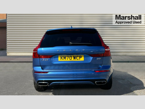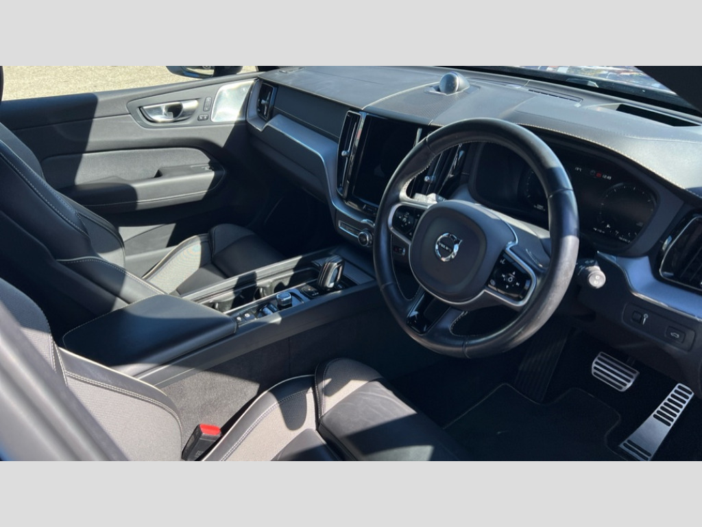 Volvo XC60 2.0 B5D R DESIGN Pro 5dr AWD Geartronic 12.3" Active TFT crystal driver's instrument display, 9" Touch screen, Adjustable steering wheel force, Bluetooth handsfree system, Drive mode selector, Driver alert control with lane keeping aid, Oncoming Lane Mitigation, Sensus navigation with European mapping and traffic information, Service interval indicator, Speed limiter, Speed sensitive steering, Trip computer, Voice control system, Volvo on call, 8 speed automatic transmission with start/stop + manual change functions, Active four-C chassis + four corner adaptive damper with electronic rear air suspension, All wheel drive system, Diesel particulate filter, DAB Digital radio, Active bending headlights with adaptive shadow technology, Adaptive brake lights with high level LED brake lights, Auto dimming interior + exterior mirrors, Automatic headlight levelling system, Body colour bumpers, Colour coordinated auto folding and heated power door mirrors, Dark tinted windows for rear side windows and cargo area, Dual integrated exhaust pipes with high gloss black surround, Electric front+rear windows, Front aluminium tread plates, Headlamp cleaning system, Heated aqua blades, High gloss black door mirrors, High gloss black mesh front grille with high gloss black surround, High gloss black window frame surround, Home safe and approach lighting, Illuminated side steps, Integrated roof rails in high gloss black, LED front fog lights with static cornering light function, LED Headlights + Active high beam incorporating daytime running lights, Rain sensor with automatic windscreen wiper activation, Rear wiper, Roof antenna, Roof spoiler, Tinted windscreen, Visible VIN plate, 12V socket in front tunnel console and luggage compartment, 3 spoke sport leather steering wheel, B Pillar ventilation, Black headlining, Bright metal luggage threshold, Centre armrest storage illumination, Centre console cupholders and storage, Contour sports seats with nappa leather/textile upholstery, Extended front seat cushions, Floor mats, Front and rear door pocket and front cupholder illumination, Front footwell illumination, Front reading lights, Head restraints for all seats, Heated front seats, Heated steering wheel, Height/reach adjustable steering column, High gloss black steering wheel remote infotainment controls, Illuminated glovebox, Illuminated luggage compartment, Illuminated vanity mirrors + ticket holder, Load cover, Load protection net, Multicolour theatre lights, Rear armrest / integral cup holders / storage tray, Rear footwell illumination, Rear seat concealed storage, Sport leather gear knob, Sport pedals, Tailgate illumination and ambient door lighting, Underfloor stowage compartment, Versatile split folding rear seat - 60/40, 5 three point seatbelts, City safety with steering support with Pedestrian + cyclist + large animal detection + front collision warning with full auto brake, Drivers knee airbag, Dual stage driver/passenger airbags, Electronic parking brake with auto hold, First aid kit, Hill descent control, Hill start assist, IC (Inflatable Curtains) - Full Length, Passenger airbag cut-off device, Road sign information display, Run off Road Mitigation, Run off Road Protection, Seatbelt reminder and pretensioners, SIPS (Side Impact Protection System), SIPS airbags, Slippery road and hazard light alert, Stability and Traction Control with Spin control, Engine Drag Control and Corner Traction Control, Tyre pressure monitoring system, Vehicle deceleration control with Anti-lock Brake System, Electronic Brake Distribution and Emergency Brake Assist, Warning triangle, WHIPS whiplash protection system - front, Anti-theft alarm including immobiliser/volume sensor + level sensor, Care key with user defined top speed, Key integrated remote control central locking + fuel flap with deadlocking system and auto open/close power windows, Keyless Drive (includes Keyless Entry and Keyless Start) with Handsfree Tailgate Opening/Closing, Locking wheel nuts, Private locking for tailgate, Metal mesh inlays, Tailored instrument panel with contrast stitching