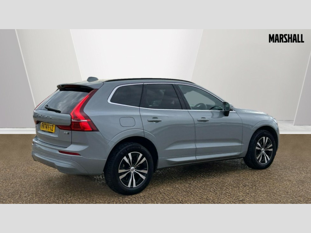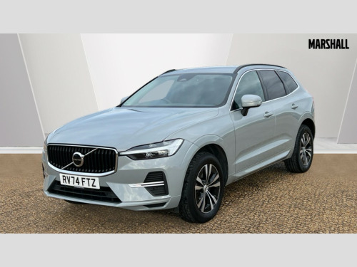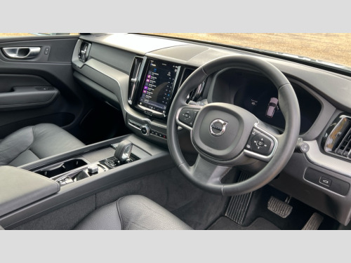 Volvo XC60 2.0 B5P Core 5dr AWD Geartronic 12.3" Progressive Driver Display, 9" centre console touch screen, Adjustable steering wheel force, Apple carplay (wired), Bluetooth handsfree system, Cruise control, Driver alert control with lane keeping aid, Emergency services call system, Front and rear park assist, Google Automotive Services, Intelligent speed assistance, Oncoming Lane Mitigation, PAS, Power tailgate, Rear park assist camera, Service interval indicator, Speed limiter, Speed sensitive steering, Trip computer, Volvo cars services with app, Volvo on call with App, Wireless/Inductive Mobile Phone Charging, 8 speed automatic transmission with start/stop + manual change functions, Dynamic chassis, DAB Digital radio, High performance sound, 2x USB Type C in front and 2x USB Type C in rear, 10 speakers/220W output, Steering wheel remote infotainment controls, Adaptive brake lights with high level LED brake lights, Auto dimming interior + exterior mirrors, Automatic headlight levelling system, Automatic LED Headlights + Active high beam incorporating daytime running lights, Colour co-ordinated door mirrors, Electric adjustable/heated/auto power folding door mirrors, Electric front+rear windows, Front aluminium tread plates, Home safe and approach lighting, Integrated roof rails in black, Piano black front grille with chrome surround, Rain sensor with automatic windscreen wiper activation, Rear side wing doors, Rear wiper, Roof antenna, Roof spoiler, Tinted windscreen, Visible VIN plate, 12V socket in front tunnel console and luggage compartment, 2 zone electronic climate control with Clean zone air quality system and pollen filter, 3 seat bench in 2nd row, 3 Spoke tailored steering wheel with chrome trim, A-pillar parking ticket holder, B Pillar ventilation, Centre console cupholders and storage, Charcoal floor mats, Front and rear courtesy lights, Front cupholder illumination, Front footwell illumination, Front reading lights, Glovebox compartment with illumination, Head restraints for all seats, Heated front seats, Height/reach adjustable steering column, Illuminated luggage compartment, Illuminated vanity mirrors + ticket holder, ISOFIX attachment on outer rear seats, Leather upholstery, Load cover, Load protection net, Power height adjustable drivers seat with lumbar support, Power passenger seat with lumbar support, Rear armrest with cupholder, Rear reading lights, Rear seat concealed storage, Single front passenger seat, Synthetic leather sport gear knob, Underfloor stowage compartment, Versatile split folding rear seat - 60/40, 5 three point seatbelts, City safety with steering support with Pedestrian + cyclist + front collision warning with full auto brake and rear auto brake, Drivers knee airbag, Dual stage driver/passenger airbags, Electronic parking brake with auto hold, First aid kit, Front seats SIPS airbags, Hill descent control - Off-road drive mode, Hill start assist, IC (Inflatable Curtains) - Full Length, Passenger airbag cut-off device, Power child locks on rear doors, Road sign information display, Run off Road Mitigation, Run off Road Protection, Seatbelt reminder and pretensioners, SIPS (Side Impact Protection System), Slippery road and hazard light alert, Stability and Traction Control with Spin control, Engine Drag Control and Corner Traction Control, Tyre pressure monitoring system, Vehicle deceleration control with Anti-lock Brake System, Electronic Brake Distribution and Emergency Brake Assist, Warning triangle, WHIPS whiplash protection system - front, Anti-theft alarm including immobiliser/volume sensor + level sensor, Care key with user defined top speed, Key integrated remote control central locking + fuel flap with deadlocking system and auto open/close power windows, Keyless Start, Locking wheel nuts, Private locking for tailgate
