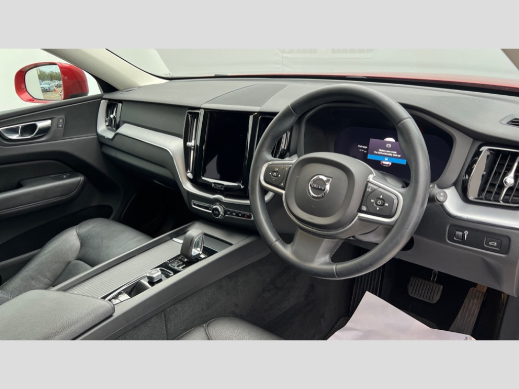Volvo XC60 2.0 B5P Momentum 5dr Geartronic 12.3" Active TFT crystal driver's instrument display, 9" centre console touch screen, Adjustable steering wheel force, Bluetooth handsfree system, Drive mode selector, Driver alert control with lane keeping aid, Emergency services call system, Front and rear park assist, Google Automotive Services, Oncoming Lane Mitigation, Power tailgate, Service interval indicator, Speed limiter, Speed sensitive steering, Trip computer, Volvo on call with App, Wireless/Inductive Mobile Phone Charging, 8 speed automatic transmission with start/stop + manual change functions, Dynamic chassis, DAB Digital radio, Steering wheel remote infotainment controls, Adaptive brake lights with high level LED brake lights, Auto dimming interior + exterior mirrors, Automatic headlight levelling system, Automatic LED Headlights + Active high beam incorporating daytime running lights, Colour co-ordinated door mirrors, Electric adjustable/heated/auto power folding door mirrors, Electric front+rear windows, Front aluminium tread plates, Home safe and approach lighting, Integrated roof rails in black, Piano black front grille with chrome surround, Rain sensor with automatic windscreen wiper activation, Rear side wing doors, Rear wiper, Roof antenna, Roof spoiler, Tinted windscreen, Visible VIN plate, 12V socket in front tunnel console and luggage compartment, 3 seat bench in 2nd row, A-pillar parking ticket holder, B Pillar ventilation, Blond headlining, Bright metal luggage threshold, Centre armrest storage illumination, Centre console cupholders and storage, Floor mats, Front footwell and side step illumination, Front reading lights, Head restraints for all seats, Heated front seats, Height/reach adjustable steering column, Illuminated glovebox, Illuminated luggage compartment, Illuminated vanity mirrors + ticket holder, Leather upholstery, Load cover, Load protection net, Power height adjustable passenger seat with lumbar support, Rear armrest with cupholder, Rear seat concealed storage, Single front passenger seat, Underfloor stowage compartment, Versatile split folding rear seat - 60/40, 5 three point seatbelts, City safety with steering support with Pedestrian + cyclist + large animal detection + front collision warning with full auto brake, Drivers knee airbag, Dual stage driver/passenger airbags, Electronic parking brake with auto hold, First aid kit, Hill descent control, Hill start assist, IC (Inflatable Curtains) - Full Length, Mechanical child locks on rear doors, Passenger airbag cut-off device, Road sign information display, Run off Road Mitigation, Run off Road Protection, Seatbelt reminder and pretensioners, SIPS (Side Impact Protection System), SIPS airbags, Slippery road and hazard light alert, Stability and Traction Control with Spin control, Engine Drag Control and Corner Traction Control, Tyre pressure monitoring system, Vehicle deceleration control with Anti-lock Brake System, Electronic Brake Distribution and Emergency Brake Assist, Warning triangle, WHIPS whiplash protection system - front, Anti-theft alarm including immobiliser/volume sensor + level sensor, Care key with user defined top speed, Key integrated remote control central locking + fuel flap with deadlocking system and auto open/close power windows, Keyless Start, Locking wheel nuts, Private locking for tailgate, Iron ore inlays