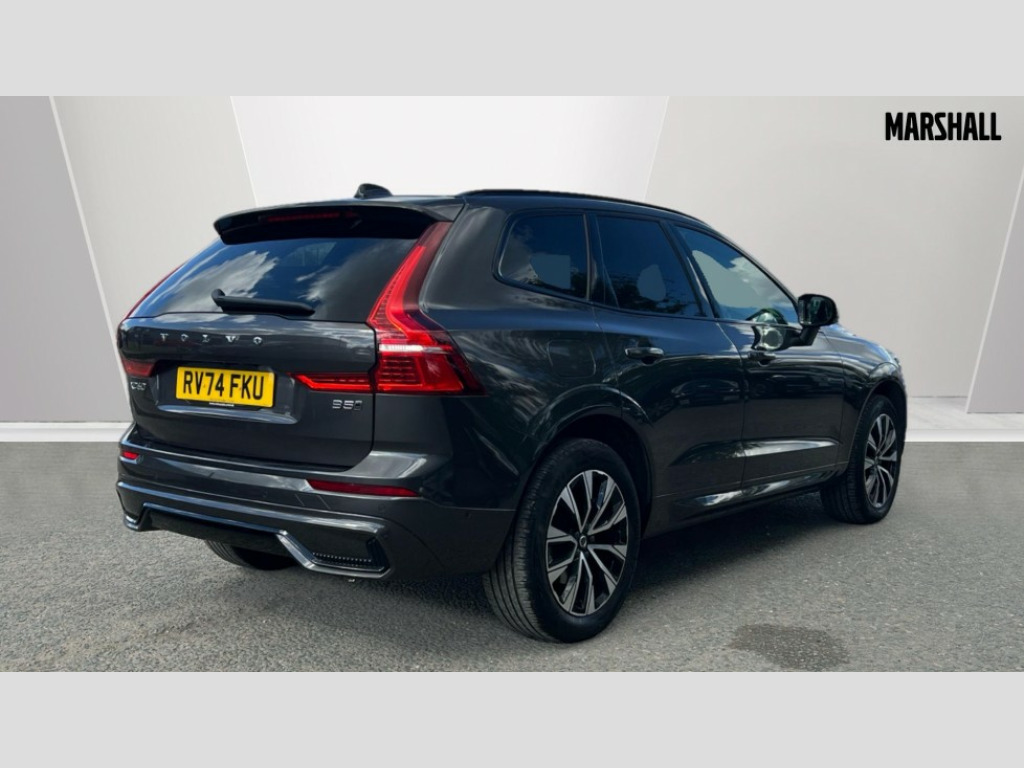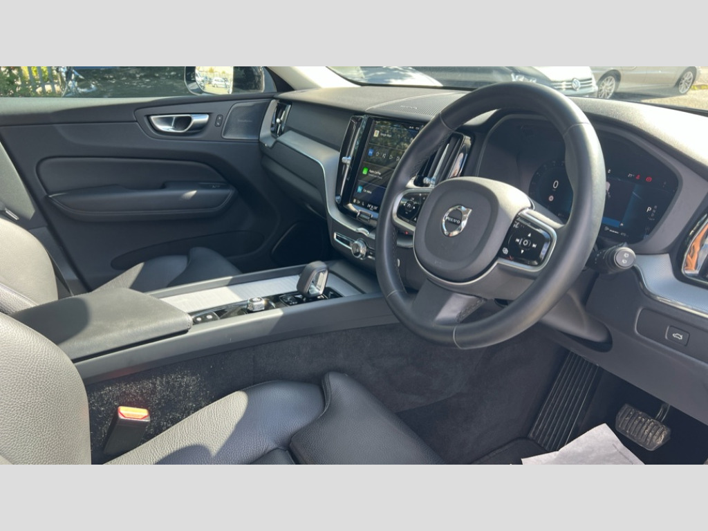 Volvo XC60 2.0 B5P Plus Dark 5dr AWD Geartronic 12.3" Progressive Driver Display, 360 degree surround view parking camera with side proximity sensors, 9" centre console touch screen, Adjustable steering wheel force, Apple carplay (wired), Bluetooth handsfree system, Driver alert control with lane keeping aid, Driver assistance (pilot assist and adaptive cruise control), Driver awareness - Blind spot information system with steer assist, cross traffic alert with autobrake and rear collision warning and mitigation, Emergency services call system, Front and rear park assist, Google Automotive Services, Intelligent speed assistance, Oncoming Lane Mitigation, PAS, Power operated tailgate with handsfree opening and closing, Service interval indicator, Speed limiter, Speed sensitive steering, Trip computer, Volvo cars services with app, Volvo on call with App, Wireless/Inductive Mobile Phone Charging, 8 speed automatic transmission with start/stop + manual change functions, Dynamic chassis, DAB Digital radio, Premium Sound by Harman Kardon, dirac unison, dolby pro logic II surround sound, 13 speakers/600W output and fresh air subwoofer, Steering wheel remote infotainment controls, Adaptive brake lights with high level LED brake lights, Auto dimming interior + exterior mirrors, Automatic headlight levelling system, Automatic LED Headlights + Active high beam incorporating daytime running lights, Electric adjustable/heated/auto power folding door mirrors, Electric front+rear windows, Front aluminium tread plates, Heated front windscreen, High gloss black door mirrors and window surround, High gloss black front and rear bumper decoratives, High gloss black mesh front grille with high gloss black surround, Home safe and approach lighting, Integrated roof rails in high gloss black, LED front fog lights, Puddle lights, Rain sensor with automatic windscreen wiper activation, Rear side wing doors, Rear wiper, Roof antenna, Roof spoiler, Tinted windscreen, Visible VIN plate, 12V socket in front tunnel console and luggage compartment, 3 seat bench in 2nd row, 4 Zone electronic climate control, A-pillar parking ticket holder, Air purifier particulate matter (PM) 2.5 filter, B Pillar ventilation, Bright metal luggage scuff plate, Centre console cupholders and storage, Charcoal floor mats, Front and rear courtesy lights, Front and rear door pocket illumination, Front cupholder illumination, Front footwell illumination, Front reading lights, Front seat cushion extensions, Glovebox compartment with illumination, Head restraints for all seats, Heated front seats, Heated steering wheel, Height/reach adjustable steering column, Illuminated luggage compartment, Illuminated vanity mirrors + ticket holder, ISOFIX attachment on outer rear seats, Load cover, Load protection net, Multi directional lumbar support, Power driver seat with memory + exterior mirrors memory, Power height adjustable passenger seat, Rear armrest with cupholder, Rear footwell and front and rear side step illumination, Rear reading lights, Rear seat concealed storage, Single front passenger seat, Tailgate illumination and ambient door lighting, Underfloor stowage compartment, Versatile split folding rear seat - 60/40, 5 three point seatbelts, City safety with steering support with Pedestrian + cyclist + front collision warning with full auto brake and rear auto brake, Drivers knee airbag, Dual stage driver/passenger airbags, Electronic parking brake with auto hold, First aid kit, Front seats SIPS airbags, Hill descent control - Off-road drive mode, Hill start assist, IC (Inflatable Curtains) - Full Length, Passenger airbag cut-off device, Power child locks on rear doors, Road sign information display, Run off Road Mitigation, Run off Road Protection, Seatbelt reminder and pretensioners, SIPS (Side Impact Protection System), Slippery road and hazard light alert, Stability and Traction Control with Spin control, Engine Drag Control and Corner Traction Control, Tyre pressure monitoring system, Vehicle deceleration control with Anti-lock Brake System, Electronic Brake Distribution and Emergency Brake Assist, Warning triangle, WHIPS whiplash protection system - front, Anti-theft alarm including immobiliser/volume sensor + level sensor, Care key with user defined top speed, Key integrated remote control central locking + fuel flap with deadlocking system and auto open/close power windows, Keyless Drive (includes Keyless Entry and Keyless Start), Locking wheel nuts, Private locking for tailgate