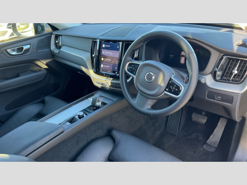 Volvo XC60 2.0 B5P Plus Dark 5dr AWD Geartronic 12.3" Progressive Driver Display, 360 degree surround view parking camera with side proximity sensors, 9" centre console touch screen, Adjustable steering wheel force, Apple carplay (wired), Bluetooth handsfree system, Driver alert control with lane keeping aid, Emergency services call system, Front and rear park assist, Google Automotive Services, Intelligent speed assistance, Oncoming Lane Mitigation, PAS, Power operated tailgate with handsfree opening and closing, Service interval indicator, Speed limiter, Speed sensitive steering, Trip computer, Volvo cars services with app, Volvo on call with App, Wireless/Inductive Mobile Phone Charging, 8 speed automatic transmission with start/stop + manual change functions, DAB Digital radio, Premium Sound by Harman Kardon, dirac unison, dolby pro logic II surround sound, 13 speakers/600W output and fresh air subwoofer, Steering wheel remote infotainment controls, Adaptive brake lights with high level LED brake lights, Auto dimming interior + exterior mirrors, Automatic headlight levelling system, Automatic LED Headlights + Active high beam incorporating daytime running lights, Electric adjustable/heated/auto power folding door mirrors, Electric front+rear windows, Front aluminium tread plates, Heated front windscreen, High gloss black door mirrors and window surround, High gloss black front and rear bumper decoratives, High gloss black mesh front grille with high gloss black surround, Home safe and approach lighting, Integrated roof rails in high gloss black, LED front fog lights, Puddle lights, Rain sensor with automatic windscreen wiper activation, Rear side wing doors, Rear wiper, Roof antenna, Roof spoiler, Tinted windscreen, Visible VIN plate, 12V socket in front tunnel console and luggage compartment, 3 seat bench in 2nd row, 4 Zone electronic climate control, A-pillar parking ticket holder, Air purifier particulate matter (PM) 2.5 filter, B Pillar ventilation, Bright metal luggage scuff plate, Centre console cupholders and storage, Charcoal floor mats, Front and rear courtesy lights, Front and rear door pocket illumination, Front cupholder illumination, Front footwell illumination, Front reading lights, Front seat cushion extensions, Glovebox compartment with illumination, Head restraints for all seats, Heated front seats, Heated steering wheel, Height/reach adjustable steering column, Illuminated luggage compartment, Illuminated vanity mirrors + ticket holder, ISOFIX attachment on outer rear seats, Load cover, Load protection net, Multi directional lumbar support, Power driver seat with memory + exterior mirrors memory, Power height adjustable passenger seat, Rear armrest with cupholder, Rear footwell and front and rear side step illumination, Rear reading lights, Rear seat concealed storage, Single front passenger seat, Tailgate illumination and ambient door lighting, Underfloor stowage compartment, Versatile split folding rear seat - 60/40, Driver assist pack with Driver awareness - XC60, 5 three point seatbelts, City safety with steering support with Pedestrian + cyclist + front collision warning with full auto brake and rear auto brake, Drivers knee airbag, Dual stage driver/passenger airbags, Electronic parking brake with auto hold, First aid kit, Front seats SIPS airbags, Hill descent control - Off-road drive mode, Hill start assist, IC (Inflatable Curtains) - Full Length, Passenger airbag cut-off device, Power child locks on rear doors, Road sign information display, Run off Road Mitigation, Run off Road Protection, Seatbelt reminder and pretensioners, SIPS (Side Impact Protection System), Slippery road and hazard light alert, Stability and Traction Control with Spin control, Engine Drag Control and Corner Traction Control, Tyre pressure monitoring system, Vehicle deceleration control with Anti-lock Brake System, Electronic Brake Distribution and Emergency Brake Assist, Warning triangle, WHIPS whiplash protection system - front, Anti-theft alarm including immobiliser/volume sensor + level sensor, Care key with user defined top speed, Key integrated remote control central locking + fuel flap with deadlocking system and auto open/close power windows, Keyless Drive (includes Keyless Entry and Keyless Start), Locking wheel nuts, Private locking for tailgate