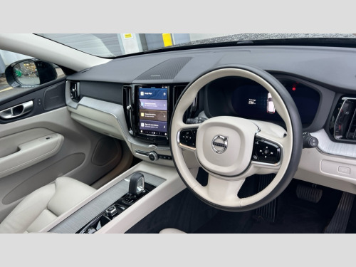 Volvo XC60 2.0 B5P Plus Dark 5dr AWD Geartronic 12.3" Progressive Driver Display, 360 degree surround view parking camera with side proximity sensors, 9" centre console touch screen, Adjustable steering wheel force, Apple carplay (wired), Bluetooth handsfree system, Driver alert control with lane keeping aid, Driver assistance (pilot assist and adaptive cruise control), Emergency services call system, Front and rear park assist, Google Automotive Services, Oncoming Lane Mitigation, PAS, Service interval indicator, Speed limiter, Speed sensitive steering, Trip computer, Volvo on call with App, Wireless/Inductive Mobile Phone Charging, 8 speed automatic transmission with start/stop + manual change functions, Dynamic chassis, DAB Digital radio, Premium Sound by Harman Kardon, dirac unison, dolby pro logic II surround sound, 13 speakers/600W output and fresh air subwoofer, Steering wheel remote infotainment controls, Adaptive brake lights with high level LED brake lights, Auto dimming interior + exterior mirrors, Automatic headlight levelling system, Automatic LED Headlights + Active high beam incorporating daytime running lights, Electric adjustable/heated/auto power folding door mirrors, Electric front+rear windows, Front aluminium tread plates, Heated front windscreen, High gloss black door mirrors and window surround, High gloss black front and rear bumper decoratives, High gloss black mesh front grille with high gloss black surround, Home safe and approach lighting, Integrated roof rails in high gloss black, LED front fog lights, Puddle lights, Rain sensor with automatic windscreen wiper activation, Rear side wing doors, Rear wiper, Roof antenna, Roof spoiler, Tinted windscreen, Visible VIN plate, 12V socket in front tunnel console and luggage compartment, 3 seat bench in 2nd row, 4 Zone electronic climate control, A-pillar parking ticket holder, Air purifier particulate matter (PM) 2.5 filter, B Pillar ventilation, Bright metal luggage threshold, Centre console cupholders and storage, Charcoal floor mats, Front and rear courtesy lights, Front and rear door pocket illumination, Front cupholder illumination, Front footwell illumination, Front reading lights, Front seat cushion extensions, Glovebox compartment with illumination, Head restraints for all seats, Heated front seats, Heated steering wheel, Height/reach adjustable steering column, Illuminated luggage compartment, Illuminated vanity mirrors + ticket holder, ISOFIX attachment on outer rear seats, Load cover, Load protection net, Multi directional lumbar support, Power driver seat with memory + exterior mirrors memory, Power height adjustable passenger seat, Rear armrest with cupholder, Rear footwell and front and rear side step illumination, Rear seat concealed storage, Single front passenger seat, Tailgate illumination and ambient door lighting, Underfloor stowage compartment, Versatile split folding rear seat - 60/40, 5 three point seatbelts, City safety with steering support with Pedestrian + cyclist + front collision warning with full auto brake and rear auto brake, Drivers knee airbag, Dual stage driver/passenger airbags, Electronic parking brake with auto hold, First aid kit, Front seats SIPS airbags, Hill descent control - Off-road drive mode, Hill start assist, IC (Inflatable Curtains) - Full Length, Passenger airbag cut-off device, Power child locks on rear doors, Road sign information display, Run off Road Mitigation, Run off Road Protection, Seatbelt reminder and pretensioners, SIPS (Side Impact Protection System), Slippery road and hazard light alert, Stability and Traction Control with Spin control, Engine Drag Control and Corner Traction Control, Tyre pressure monitoring system, Vehicle deceleration control with Anti-lock Brake System, Electronic Brake Distribution and Emergency Brake Assist, Warning triangle, WHIPS whiplash protection system - front, Anti-theft alarm including immobiliser/volume sensor + level sensor, Care key with user defined top speed, Key integrated remote control central locking + fuel flap with deadlocking system and auto open/close power windows, Keyless Drive (includes Keyless Entry and Keyless Start) with Handsfree Tailgate Opening/Closing, Locking wheel nuts, Private locking for tailgate