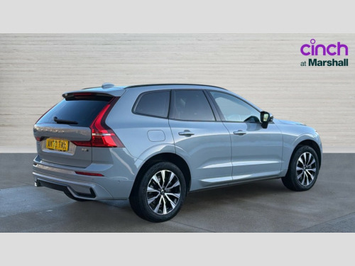 Volvo XC60 2.0 B5P Plus Dark 5dr AWD Geartronic 12.3" Progressive Driver Display, 360 degree surround view parking camera with side proximity sensors, 9" centre console touch screen, Adjustable steering wheel force, Apple carplay (wired), Bluetooth handsfree system, Driver alert control with lane keeping aid, Driver assistance (pilot assist and adaptive cruise control), Emergency services call system, Front and rear park assist, Google Automotive Services, Oncoming Lane Mitigation, PAS, Service interval indicator, Speed limiter, Speed sensitive steering, Trip computer, Volvo on call with App, Wireless/Inductive Mobile Phone Charging, 8 speed automatic transmission with start/stop + manual change functions, Dynamic chassis, DAB Digital radio, Premium Sound by Harman Kardon, dirac unison, dolby pro logic II surround sound, 13 speakers/600W output and fresh air subwoofer, Steering wheel remote infotainment controls, Adaptive brake lights with high level LED brake lights, Auto dimming interior + exterior mirrors, Automatic headlight levelling system, Automatic LED Headlights + Active high beam incorporating daytime running lights, Electric adjustable/heated/auto power folding door mirrors, Electric front+rear windows, Front aluminium tread plates, Heated front windscreen, High gloss black door mirrors and window surround, High gloss black front and rear bumper decoratives, High gloss black mesh front grille with high gloss black surround, Home safe and approach lighting, Integrated roof rails in high gloss black, LED front fog lights, Puddle lights, Rain sensor with automatic windscreen wiper activation, Rear side wing doors, Rear wiper, Roof antenna, Roof spoiler, Tinted windscreen, Visible VIN plate, 12V socket in front tunnel console and luggage compartment, 3 seat bench in 2nd row, 4 Zone electronic climate control, A-pillar parking ticket holder, Air purifier particulate matter (PM) 2.5 filter, B Pillar ventilation, Bright metal luggage threshold, Centre console cupholders and storage, Charcoal floor mats, Front and rear courtesy lights, Front and rear door pocket illumination, Front cupholder illumination, Front footwell illumination, Front reading lights, Front seat cushion extensions, Glovebox compartment with illumination, Head restraints for all seats, Heated front seats, Heated steering wheel, Height/reach adjustable steering column, Illuminated luggage compartment, Illuminated vanity mirrors + ticket holder, ISOFIX attachment on outer rear seats, Load cover, Load protection net, Multi directional lumbar support, Power driver seat with memory + exterior mirrors memory, Power height adjustable passenger seat, Rear armrest with cupholder, Rear footwell and front and rear side step illumination, Rear seat concealed storage, Single front passenger seat, Tailgate illumination and ambient door lighting, Underfloor stowage compartment, Versatile split folding rear seat - 60/40, 5 three point seatbelts, City safety with steering support with Pedestrian + cyclist + front collision warning with full auto brake and rear auto brake, Drivers knee airbag, Dual stage driver/passenger airbags, Electronic parking brake with auto hold, First aid kit, Front seats SIPS airbags, Hill descent control - Off-road drive mode, Hill start assist, IC (Inflatable Curtains) - Full Length, Passenger airbag cut-off device, Power child locks on rear doors, Road sign information display, Run off Road Mitigation, Run off Road Protection, Seatbelt reminder and pretensioners, SIPS (Side Impact Protection System), Slippery road and hazard light alert, Stability and Traction Control with Spin control, Engine Drag Control and Corner Traction Control, Tyre pressure monitoring system, Vehicle deceleration control with Anti-lock Brake System, Electronic Brake Distribution and Emergency Brake Assist, Warning triangle, WHIPS whiplash protection system - front, Anti-theft alarm including immobiliser/volume sensor + level sensor, Care key with user defined top speed, Key integrated remote control central locking + fuel flap with deadlocking system and auto open/close power windows, Keyless Drive (includes Keyless Entry and Keyless Start) with Handsfree Tailgate Opening/Closing, Locking wheel nuts, Private locking for tailgate
