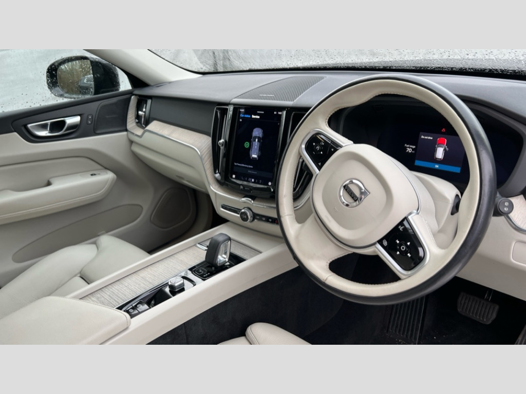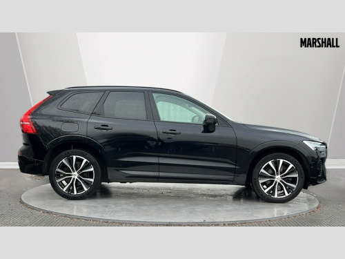 Volvo XC60 2.0 B5P Plus Dark 5dr AWD Geartronic 12.3" Progressive Driver Display, 360 degree surround view parking camera with side proximity sensors, 9" centre console touch screen, Adjustable steering wheel force, Bluetooth handsfree system, Driver alert control with lane keeping aid, Driver assistance (pilot assist and adaptive cruise control), Driver awareness - Blind spot information system with steer assist, cross traffic alert with autobrake and rear collision warning and mitigation, Emergency services call system, Front and rear park assist, Google Automotive Services, Oncoming Lane Mitigation, PAS, Service interval indicator, Speed limiter, Speed sensitive steering, Trip computer, Volvo on call with App, Wireless/Inductive Mobile Phone Charging, 8 speed automatic transmission with start/stop + manual change functions, Dynamic chassis, DAB Digital radio, Premium Sound by Harman Kardon, dirac unison, dolby pro logic II surround sound, 13 speakers/600W output and fresh air subwoofer, Steering wheel remote infotainment controls, Adaptive brake lights with high level LED brake lights, Auto dimming interior + exterior mirrors, Automatic headlight levelling system, Automatic LED Headlights + Active high beam incorporating daytime running lights, Electric adjustable/heated/auto power folding door mirrors, Electric front+rear windows, Front aluminium tread plates, Heated front windscreen, High gloss black door mirrors and window surround, High gloss black front and rear bumper decoratives, High gloss black mesh front grille with high gloss black surround, Home safe and approach lighting, Integrated roof rails in high gloss black, LED front fog lights, Puddle lights, Rain sensor with automatic windscreen wiper activation, Rear side wing doors, Rear wiper, Roof antenna, Roof spoiler, Tinted windscreen, Visible VIN plate, 12V socket in front tunnel console and luggage compartment, 3 seat bench in 2nd row, 4 Zone electronic climate control, A-pillar parking ticket holder, Advanced interior air cleaner PM2.5, B Pillar ventilation, Bright metal luggage threshold, Centre console cupholders and storage, Charcoal floor mats, Front and rear courtesy lights, Front and rear door pocket illumination, Front cupholder illumination, Front footwell illumination, Front reading lights, Front seat cushion extensions, Glovebox compartment with illumination, Head restraints for all seats, Heated front seats, Heated steering wheel, Height/reach adjustable steering column, Illuminated luggage compartment, Illuminated vanity mirrors + ticket holder, ISOFIX attachment on outer rear seats, Load cover, Load protection net, Multi directional lumbar support, Power driver seat with memory + exterior mirrors memory, Power height adjustable passenger seat, Rear armrest with cupholder, Rear footwell and front and rear side step illumination, Rear seat concealed storage, Single front passenger seat, Tailgate illumination and ambient door lighting, Underfloor stowage compartment, Versatile split folding rear seat - 60/40, 5 three point seatbelts, City safety with steering support with Pedestrian + cyclist + large animal detection + front collision warning with full auto brake, Drivers knee airbag, Dual stage driver/passenger airbags, Electronic parking brake with auto hold, First aid kit, Front seats SIPS airbags, Hill descent control - Off-road drive mode, Hill start assist, IC (Inflatable Curtains) - Full Length, Passenger airbag cut-off device, Power child locks on rear doors, Road sign information display, Run off Road Mitigation, Run off Road Protection, Seatbelt reminder and pretensioners, SIPS (Side Impact Protection System), Slippery road and hazard light alert, Stability and Traction Control with Spin control, Engine Drag Control and Corner Traction Control, Tyre pressure monitoring system, Vehicle deceleration control with Anti-lock Brake System, Electronic Brake Distribution and Emergency Brake Assist, Warning triangle, WHIPS whiplash protection system - front, Anti-theft alarm including immobiliser/volume sensor + level sensor, Care key with user defined top speed, Key integrated remote control central locking + fuel flap with deadlocking system and auto open/close power windows, Keyless Drive (includes Keyless Entry and Keyless Start) with Handsfree Tailgate Opening/Closing, Locking wheel nuts, Private locking for tailgate