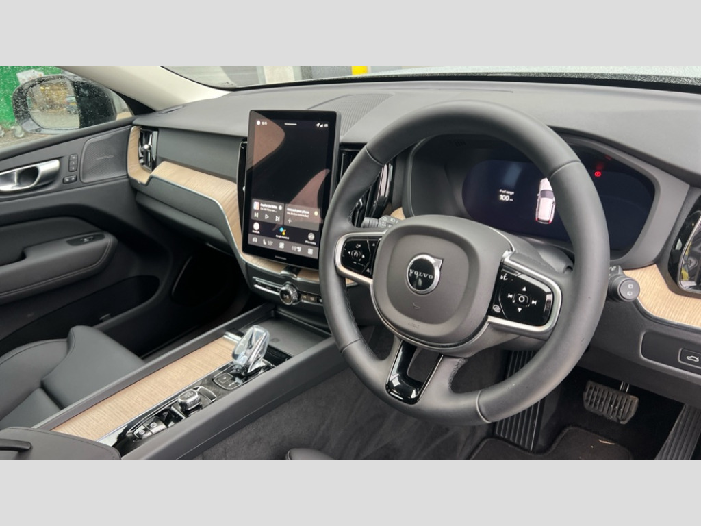 Volvo XC60 2.0 B5P Plus Dark 5dr AWD Geartronic 11.2" centre console touch screen, 12.3" Progressive Driver Display, 360 degree surround view parking camera with side proximity sensors, Adaptive cruise control, Adjustable steering wheel force, Android auto (Wired), Apple carplay (wired), Bluetooth handsfree system, Driver alert control with lane keeping aid, Emergency services call system, Front and rear park assist, Google Automotive Services, Intelligent speed assistance, Oncoming Lane Mitigation, PAS, Power operated tailgate with handsfree opening and closing, Service interval indicator, Speed limiter, Speed sensitive steering, Trip computer, Volvo cars services with app, Volvo on call with App, Wireless/Inductive Mobile Phone Charging, 8 speed automatic transmission with start/stop + manual change functions, DAB Digital radio, Premium Sound by Harman Kardon, dirac unison, dolby pro logic II surround sound, 13 speakers/600W output and fresh air subwoofer, Steering wheel remote infotainment controls, Adaptive brake lights with high level LED brake lights, Auto dimming interior + exterior mirrors, Automatic headlight levelling system, Automatic LED Headlights + Active high beam incorporating daytime running lights, Electric adjustable/heated/auto power folding door mirrors, Electric front+rear windows, Front aluminium tread plates, Heated front windscreen, High gloss black door mirrors and window surround, High gloss black front and rear bumper decoratives, High gloss black mesh front grille with high gloss black surround, Home safe and approach lighting, Integrated roof rails in high gloss black, Puddle lights, Rain sensor with automatic windscreen wiper activation, Rear side wing doors, Rear wiper, Roof antenna, Roof spoiler, Tinted windscreen, Visible VIN plate, 12V socket in front tunnel console and luggage compartment, 3 seat bench in 2nd row, 3 Spoke tailored steering wheel with chrome trim, 4 Zone electronic climate control, A-pillar parking ticket holder, Air purifier particulate matter (PM) 2.5 filter, B Pillar ventilation, Bright metal luggage scuff plate, Centre console cupholders and storage, Charcoal floor mats, Front and rear courtesy lights, Front and rear door pocket illumination, Front cupholder illumination, Front footwell illumination, Front reading lights, Front seat cushion extensions, Glovebox compartment with illumination, Head restraints for all seats, Heated front seats, Heated steering wheel, Height/reach adjustable steering column, Illuminated luggage compartment, Illuminated vanity mirrors + ticket holder, Inner door release handle illumination, ISOFIX attachment on outer rear seats, Load cover, Load protection net, Multi directional lumbar support, Power driver seat with memory + exterior mirrors memory, Power height adjustable passenger seat, Power passenger seat with memory, Quilted nordico leather upholstery, Rear armrest with cupholder, Rear footwell and front and rear side step illumination, Rear reading lights, Rear seat concealed storage, Single front passenger seat, Tailgate illumination and ambient door lighting, Underfloor stowage compartment, Versatile split folding rear seat - 60/40, Driver assist pack without Adaptive cruise control - XC60, 5 three point seatbelts, City safety with steering support with Pedestrian + cyclist + front collision warning with full auto brake and rear auto brake, Drivers knee airbag, Dual stage driver/passenger airbags, Electronic parking brake with auto hold, First aid kit, Front seats SIPS airbags, Hill descent control - Off-road drive mode, Hill start assist, IC (Inflatable Curtains) - Full Length, Passenger airbag cut-off device, Power child locks on rear doors, Road sign information display, Run off Road Mitigation, Run off Road Protection, Seatbelt reminder and pretensioners, SIPS (Side Impact Protection System), Slippery road and hazard light alert, Stability and Traction Control with Spin control, Engine Drag Control and Corner Traction Control, Tyre pressure monitoring system, Vehicle deceleration control with Anti-lock Brake System, Electronic Brake Distribution and Emergency Brake Assist, Warning triangle, WHIPS whiplash protection system - front, Anti-theft alarm including immobiliser/volume sensor + level sensor, Key integrated remote control central locking + fuel flap with deadlocking system and auto open/close power windows, Keyless Drive (includes Keyless Entry and Keyless Start), Locking wheel nuts, Private locking for tailgate, Summer tyres