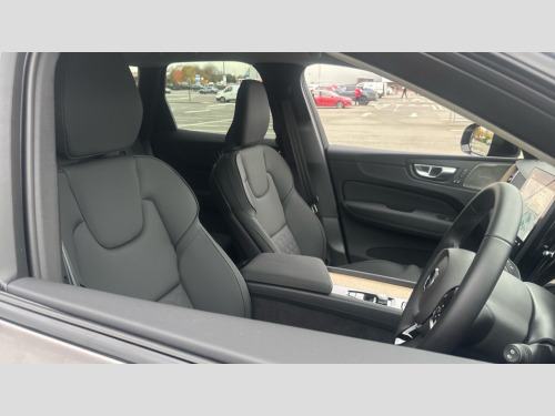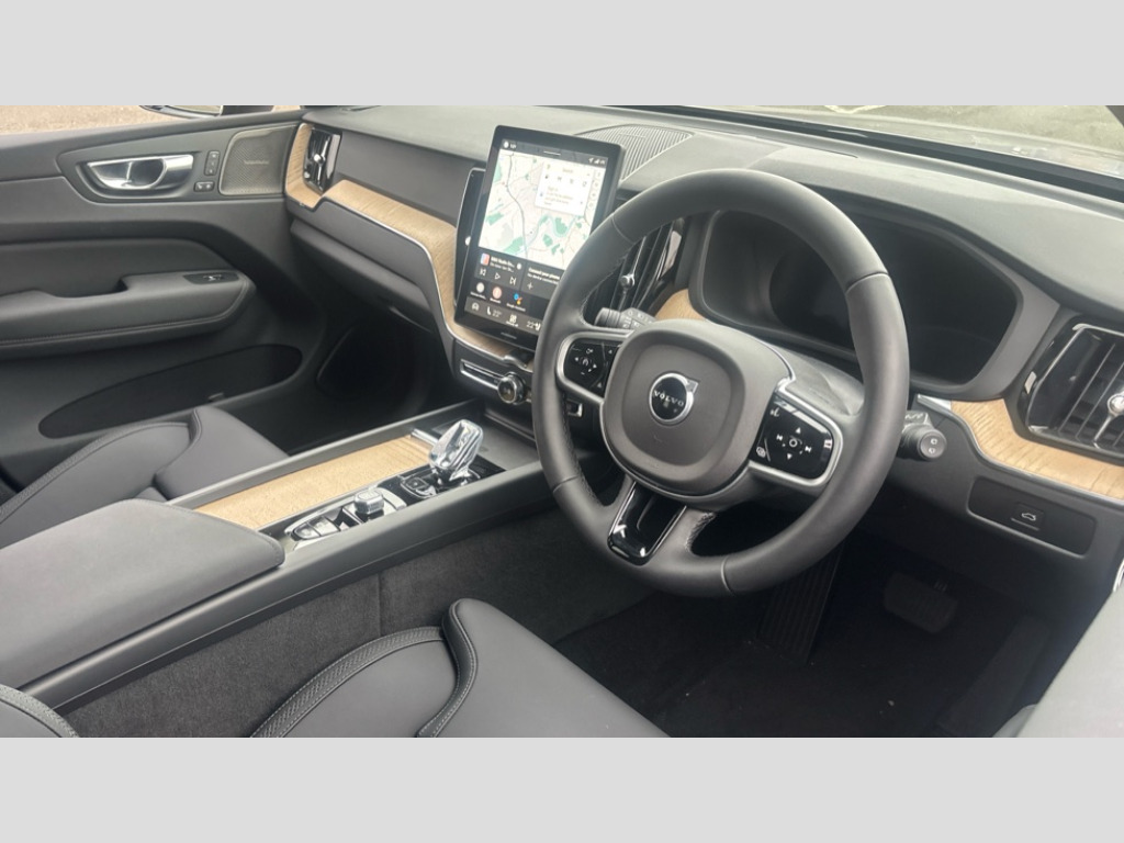 Volvo XC60 2.0 B5P Plus Dark 5dr AWD Geartronic 11.2" centre console touch screen, 12.3" Progressive Driver Display, 360 degree surround view parking camera with side proximity sensors, Adaptive cruise control, Adjustable steering wheel force, Android auto (Wired), Apple carplay (wired), Bluetooth handsfree system, Driver alert control with lane keeping aid, Emergency services call system, Front and rear park assist, Google Automotive Services, Intelligent speed assistance, Oncoming Lane Mitigation, PAS, Power operated tailgate with handsfree opening and closing, Service interval indicator, Speed limiter, Speed sensitive steering, Trip computer, Volvo cars services with app, Volvo on call with App, Wireless/Inductive Mobile Phone Charging, 8 speed automatic transmission with start/stop + manual change functions, DAB Digital radio, Premium Sound by Harman Kardon, dirac unison, dolby pro logic II surround sound, 13 speakers/600W output and fresh air subwoofer, Steering wheel remote infotainment controls, Adaptive brake lights with high level LED brake lights, Auto dimming interior + exterior mirrors, Automatic headlight levelling system, Automatic LED Headlights + Active high beam incorporating daytime running lights, Electric adjustable/heated/auto power folding door mirrors, Electric front+rear windows, Front aluminium tread plates, Heated front windscreen, High gloss black door mirrors and window surround, High gloss black front and rear bumper decoratives, High gloss black mesh front grille with high gloss black surround, Home safe and approach lighting, Integrated roof rails in high gloss black, Puddle lights, Rain sensor with automatic windscreen wiper activation, Rear side wing doors, Rear wiper, Roof antenna, Roof spoiler, Tinted windscreen, Visible VIN plate, 12V socket in front tunnel console and luggage compartment, 3 seat bench in 2nd row, 3 Spoke tailored steering wheel with chrome trim, 4 Zone electronic climate control, A-pillar parking ticket holder, Air purifier particulate matter (PM) 2.5 filter, B Pillar ventilation, Bright metal luggage scuff plate, Centre console cupholders and storage, Charcoal floor mats, Front and rear courtesy lights, Front and rear door pocket illumination, Front cupholder illumination, Front footwell illumination, Front reading lights, Front seat cushion extensions, Glovebox compartment with illumination, Head restraints for all seats, Heated front seats, Heated steering wheel, Height/reach adjustable steering column, Illuminated luggage compartment, Illuminated vanity mirrors + ticket holder, Inner door release handle illumination, ISOFIX attachment on outer rear seats, Load cover, Load protection net, Multi directional lumbar support, Power driver seat with memory + exterior mirrors memory, Power height adjustable passenger seat, Power passenger seat with memory, Quilted nordico leather upholstery, Rear armrest with cupholder, Rear footwell and front and rear side step illumination, Rear reading lights, Rear seat concealed storage, Single front passenger seat, Tailgate illumination and ambient door lighting, Underfloor stowage compartment, Versatile split folding rear seat - 60/40, Driver assist pack without Adaptive cruise control - XC60, 5 three point seatbelts, City safety with steering support with Pedestrian + cyclist + front collision warning with full auto brake and rear auto brake, Drivers knee airbag, Dual stage driver/passenger airbags, Electronic parking brake with auto hold, First aid kit, Front seats SIPS airbags, Hill descent control - Off-road drive mode, Hill start assist, IC (Inflatable Curtains) - Full Length, Passenger airbag cut-off device, Power child locks on rear doors, Road sign information display, Run off Road Mitigation, Run off Road Protection, Seatbelt reminder and pretensioners, SIPS (Side Impact Protection System), Slippery road and hazard light alert, Stability and Traction Control with Spin control, Engine Drag Control and Corner Traction Control, Tyre pressure monitoring system, Vehicle deceleration control with Anti-lock Brake System, Electronic Brake Distribution and Emergency Brake Assist, Warning triangle, WHIPS whiplash protection system - front, Anti-theft alarm including immobiliser/volume sensor + level sensor, Key integrated remote control central locking + fuel flap with deadlocking system and auto open/close power windows, Keyless Drive (includes Keyless Entry and Keyless Start), Locking wheel nuts, Private locking for tailgate, Summer tyres