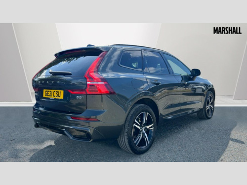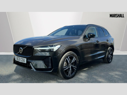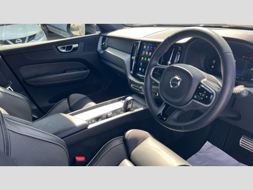 Volvo XC60 2.0 B5P R DESIGN 5dr AWD Geartronic 12.3" Active TFT crystal driver's instrument display, 9" centre console touch screen, Adjustable steering wheel force, Bluetooth handsfree system, Drive mode selector, Driver alert control with lane keeping aid, Front and rear park assist, Google Automotive Services, Oncoming Lane Mitigation, Service interval indicator, Speed limiter, Speed sensitive steering, Trip computer, Volvo on call with App, Wireless apple carplay, Wireless/Inductive Mobile Phone Charging, 8 speed automatic transmission with start/stop + manual change functions, Dynamic chassis, DAB Digital radio, Adaptive brake lights with high level LED brake lights, Auto dimming interior + exterior mirrors, Automatic headlight levelling system, Automatic LED Headlights + Active high beam incorporating daytime running lights, Dark tinted windows for rear side windows and cargo area, Electric adjustable/heated/auto power folding door mirrors, Electric front+rear windows, Front aluminium tread plates, High gloss black door mirrors, High gloss black mesh front grille with high gloss black surround, High gloss black rear bumper deco, High gloss black window frame surround, Home safe and approach lighting, Integrated roof rails in high gloss black, Puddle lights, Rain sensor with automatic windscreen wiper activation, Rear side wing doors, Rear wiper, Roof antenna, Roof spoiler, Tinted windscreen, Visible VIN plate, 12V socket in front tunnel console and luggage compartment, 3 spoke tailored sports steering wheel, A-pillar parking ticket holder, B Pillar ventilation, Bright metal luggage threshold, Centre armrest storage illumination, Centre console cupholders and storage, Charcoal headlining, Contour sports seats with nappa leather/textile upholstery, Floor mats, Front and rear door pocket and front cupholder illumination, Front footwell and side step illumination, Front reading lights, Front seat cushion extensions, Head restraints for all seats, Heated front seats, Height/reach adjustable steering column, High gloss black steering wheel remote infotainment controls, Illuminated glovebox, Illuminated luggage compartment, Illuminated vanity mirrors + ticket holder, Load cover, Load protection net, Multi directional lumbar support, Multicolour theatre lights, Rear armrest with cupholder, Rear footwell and side step illumination, Rear seat concealed storage, Single front passenger seat, Sport leather gear knob, Sport pedals, Tailgate illumination and ambient door lighting, Underfloor stowage compartment, Versatile split folding rear seat - 60/40, 5 three point seatbelts, City safety with steering support with Pedestrian + cyclist + large animal detection + front collision warning with full auto brake, Drivers knee airbag, Dual stage driver/passenger airbags, Electronic parking brake with auto hold, First aid kit, Hill descent control, Hill start assist, IC (Inflatable Curtains) - Full Length, Mechanical child locks on rear doors, Passenger airbag cut-off device, Road sign information display, Run off Road Mitigation, Run off Road Protection, Seatbelt reminder and pretensioners, SIPS (Side Impact Protection System), SIPS airbags, Slippery road and hazard light alert, Stability and Traction Control with Spin control, Engine Drag Control and Corner Traction Control, Tyre pressure monitoring system, Vehicle deceleration control with Anti-lock Brake System, Electronic Brake Distribution and Emergency Brake Assist, Warning triangle, WHIPS whiplash protection system - front, Anti-theft alarm including immobiliser/volume sensor + level sensor, Care key with user defined top speed, Key integrated remote control central locking + fuel flap with deadlocking system and auto open/close power windows, Keyless Drive (includes Keyless Entry and Keyless Start) with Handsfree Tailgate Opening/Closing, Locking wheel nuts, Private locking for tailgate, Metal mesh inlays