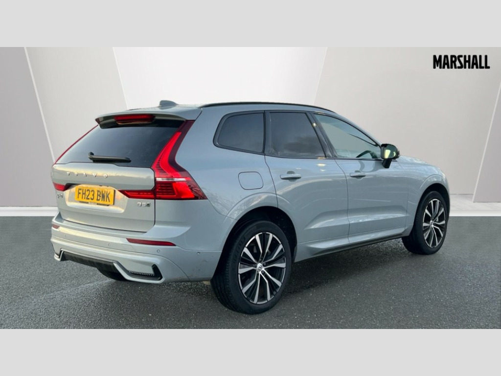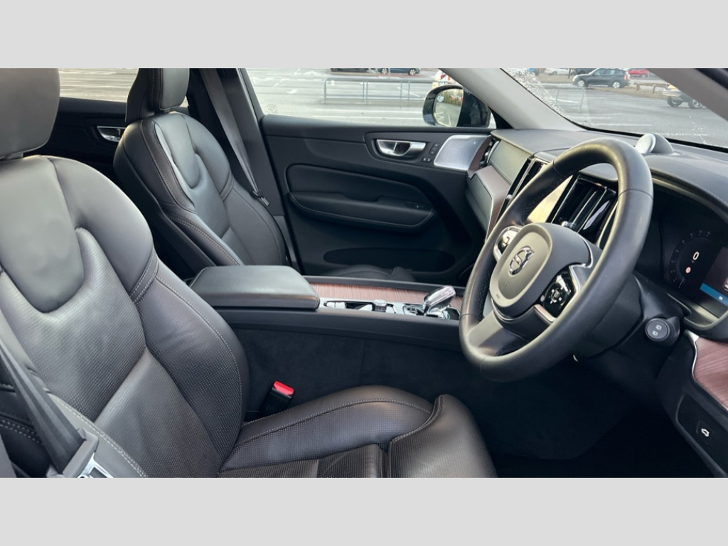 Volvo XC60 2.0 B5P Ultimate Dark 5dr AWD Geartronic 12.3" Progressive Driver Display, 360 degree surround view parking camera with side proximity sensors, 9" centre console touch screen, Adjustable steering wheel force, Apple carplay (wired), Bluetooth handsfree system, Driver alert control with lane keeping aid, Driver assistance (pilot assist and adaptive cruise control), Driver awareness - Blind spot information system with steer assist, cross traffic alert with autobrake and rear collision warning and mitigation, Emergency services call system, Front and rear park assist, Google Automotive Services, Head up display in windscreen includes road sign information, distance alert, set speed and navigation, Oncoming Lane Mitigation, PAS, Service interval indicator, Speed limiter, Speed sensitive steering, Trip computer, Volvo on call with App, Wireless/Inductive Mobile Phone Charging, 8 speed automatic transmission with start/stop + manual change functions, Active four-C chassis + four corner adaptive damper with electronic rear air suspension, DAB Digital radio, Premium Sound by Bowers and Wilkins, dirac live, dolby pro logic II surround sound, 14 speakers/1100W output and subwoofer, Steering wheel remote infotainment controls, Active bending headlights with adaptive shadow technology, Adaptive brake lights with high level LED brake lights, Auto dimming interior + exterior mirrors, Automatic headlight levelling system, Automatic LED Headlights + Active high beam incorporating daytime running lights, Dark tinted windows for rear side windows and cargo area, Electric adjustable/heated/auto power folding door mirrors, Electric front+rear windows, Front aluminium tread plates, Headlight cleaning system, Heated front windscreen, High gloss black door mirrors and window surround, High gloss black front and rear bumper decoratives, High gloss black mesh front grille with high gloss black surround, Home safe and approach lighting, Integrated roof rails in high gloss black, LED front fog lights with static cornering light function, Power glass tilt and slide panoramic sunroof with sun curtain, Puddle lights, Rain sensor with automatic windscreen wiper activation, Rear side wing doors, Rear wiper, Roof antenna, Roof spoiler, Tinted windscreen, Visible VIN plate, 12V socket in front tunnel console and luggage compartment, 3 seat bench in 2nd row, 4 Zone electronic climate control, A-pillar parking ticket holder, Air purifier particulate matter (PM) 2.5 filter, B Pillar ventilation, Bright metal luggage threshold, Centre console cupholders and storage, Charcoal floor mats, Front and rear courtesy lights, Front and rear door pocket illumination, Front cupholder illumination, Front footwell illumination, Front reading lights, Front seat cushion extensions, Glovebox compartment with illumination, Head restraints for all seats, Heated front seats, Heated steering wheel, Height/reach adjustable steering column, Illuminated luggage compartment, Illuminated vanity mirrors + ticket holder, ISOFIX attachment on outer rear seats, Load cover, Load protection net, Multi directional lumbar support, Power driver seat with memory + exterior mirrors memory, Power folding rear headrests, Power passenger seat with memory, Rear armrest with cupholder, Rear footwell and front and rear side step illumination, Rear seat concealed storage, Single front passenger seat, Tailgate illumination and ambient door lighting, Underfloor stowage compartment, Versatile split folding rear seat - 60/40, 5 three point seatbelts, City safety with steering support with Pedestrian + cyclist + front collision warning with full auto brake and rear auto brake, Drivers knee airbag, Dual stage driver/passenger airbags, Electronic parking brake with auto hold, First aid kit, Front seats SIPS airbags, Hill descent control - Off-road drive mode, Hill start assist, IC (Inflatable Curtains) - Full Length, Passenger airbag cut-off device, Power child locks on rear doors, Run off Road Mitigation, Run off Road Protection, Seatbelt reminder and pretensioners, SIPS (Side Impact Protection System), Slippery road and hazard light alert, Stability and Traction Control with Spin control, Engine Drag Control and Corner Traction Control, Tyre pressure monitoring system, Vehicle deceleration control with Anti-lock Brake System, Electronic Brake Distribution and Emergency Brake Assist, Warning triangle, WHIPS whiplash protection system - front, Anti-theft alarm including immobiliser/volume sensor + level sensor, Care key with user defined top speed, Key integrated remote control central locking + fuel flap with deadlocking system and auto open/close power windows, Keyless Drive (includes Keyless Entry and Keyless Start) with Handsfree Tailgate Opening/Closing, Locking wheel nuts, Private locking for tailgate, Tailored instrument panel with contrast stitching