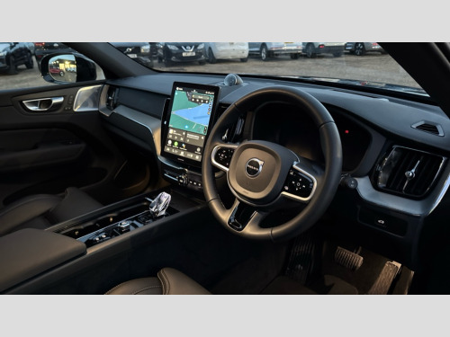 Volvo XC60 2.0 B5P Ultra Black Edition 5dr AWD Geartronic 11.2" centre console touch screen, 12.3" Progressive Driver Display, 360 degree surround view parking camera with side proximity sensors, Adaptive cruise control, Adjustable steering wheel force, Android auto (Wired), Apple carplay (wired), Bluetooth handsfree system, Driver alert control with lane keeping aid, Emergency services call system, Front and rear park assist, Google Automotive Services, Intelligent speed assistance, Oncoming Lane Mitigation, PAS, Power operated tailgate with handsfree opening and closing, Service interval indicator, Speed limiter, Speed sensitive steering, Trip computer, Volvo cars services with app, Volvo on call with App, Wireless/Inductive Mobile Phone Charging, 8 speed automatic transmission with start/stop + manual change functions, Active four-C chassis + four corner adaptive damper with electronic rear air suspension, DAB Digital radio, Premium sound by Bowers and Wilkins, dirac live, dolby pro logic II surround sound, 14 speakers/1100W output and fresh air subwoofer, Steering wheel remote infotainment controls, Active bending headlights with adaptive shadow technology, Adaptive brake lights with high level LED brake lights, Auto dimming interior + exterior mirrors, Automatic headlight levelling system, Automatic LED Headlights + Active high beam incorporating daytime running lights, Dark tinted windows for rear side windows and cargo area, Electric adjustable/heated/auto power folding door mirrors, Electric front+rear windows, Front aluminium tread plates, Headlight cleaning system, High gloss black door mirrors and window surround, High gloss black front and rear bumper decoratives, High gloss black front grille, Surround, Strikethrough and Ironmark, High gloss black rear model, engine and volvo logo badges, Home safe and approach lighting, Integrated roof rails in high gloss black, LED front fog lights with static cornering light function, Power glass tilt and slide panoramic sunroof with sun curtain, Puddle lights, Rain sensor with automatic windscreen wiper activation, Rear side wing doors, Rear wiper, Roof antenna, Roof spoiler, Tinted windscreen, Visible VIN plate, 12V socket in front tunnel console and luggage compartment, 3 seat bench in 2nd row, 3 Spoke tailored steering wheel with chrome trim, 4 Zone electronic climate control, A-pillar parking ticket holder, Air purifier particulate matter (PM) 2.5 filter, B Pillar ventilation, Bright metal luggage scuff plate, Centre console cupholders and storage, Charcoal floor mats, Front and rear courtesy lights, Front and rear door pocket illumination, Front cupholder illumination, Front footwell illumination, Front headrests, Front reading lights, Front seat cushion extensions, Glovebox compartment with illumination, Heated front seats, Heated steering wheel, Height/reach adjustable steering column, Illuminated luggage compartment, Illuminated vanity mirrors + ticket holder, Inner door release handle illumination, ISOFIX attachment on outer rear seats, Load cover, Load protection net, Multi directional lumbar support, Nappa soft leather perforated and ventilated upholstery with front seat backrest massage and power side support, Power driver seat with memory + exterior mirrors memory, Power folding rear headrests, Power height adjustable passenger seat, Power passenger seat with memory, Rear armrest with cupholder, Rear footwell and front and rear side step illumination, Rear reading lights, Rear seat concealed storage, Single front passenger seat, Tailgate illumination and ambient door lighting, Underfloor stowage compartment, Versatile split folding rear seat - 60/40, Driver assist pack without Adaptive cruise control - XC60, 5 three point seatbelts, City safety with steering support with Pedestrian + cyclist + front collision warning with full auto brake and rear auto brake, Drivers knee airbag, Dual stage driver/passenger airbags, Electronic parking brake with auto hold, First aid kit, Front seats SIPS airbags, Hill descent control - Off-road drive mode, Hill start assist, IC (Inflatable Curtains) - Full Length, Passenger airbag cut-off device, Power child locks on rear doors, Run off Road Mitigation, Run off Road Protection, Seatbelt reminder and pretensioners, SIPS (Side Impact Protection System), Slippery road and hazard light alert, Stability and Traction Control with Spin control, Engine Drag Control and Corner Traction Control, Tyre pressure monitoring system, Vehicle deceleration control with Anti-lock Brake System, Electronic Brake Distribution and Emergency Brake Assist, Warning triangle, WHIPS whiplash protection system - front, Anti-theft alarm including immobiliser/volume sensor + level sensor, Key integrated remote control central locking + fuel flap with deadlocking system and auto open/close power windows, Keyless Drive (includes Keyless Entry and Keyless Start), Locking wheel nuts, Private locking for tailgate, Tailored instrument panel with contrast stitching, Summer tyres