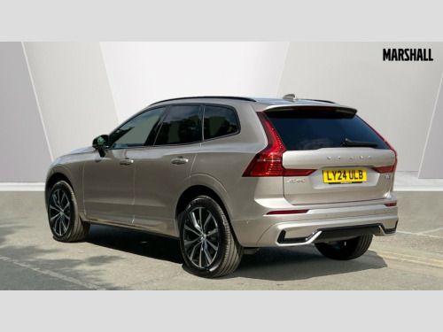 Volvo XC60 2.0 B5P Ultra Dark 5dr AWD Geartronic 12.3" Progressive Driver Display, 360 degree surround view parking camera with side proximity sensors, 9" centre console touch screen, Adjustable steering wheel force, Apple carplay (wired), Bluetooth handsfree system, Driver alert control with lane keeping aid, Driver assistance (pilot assist and adaptive cruise control), Driver awareness - Blind spot information system with steer assist, cross traffic alert with autobrake and rear collision warning and mitigation, Emergency services call system, Front and rear park assist, Google Automotive Services, Intelligent speed assistance, Oncoming Lane Mitigation, PAS, Power operated tailgate with handsfree opening and closing, Service interval indicator, Speed limiter, Speed sensitive steering, Trip computer, Volvo cars services with app, Volvo on call with App, Wireless/Inductive Mobile Phone Charging, 8 speed automatic transmission with start/stop + manual change functions, Active four-C chassis + four corner adaptive damper with electronic rear air suspension, DAB Digital radio, Premium Sound by Bowers and Wilkins, dirac live, dolby pro logic II surround sound, 14 speakers/1100W output and subwoofer, Steering wheel remote infotainment controls, Active bending headlights with adaptive shadow technology, Adaptive brake lights with high level LED brake lights, Auto dimming interior + exterior mirrors, Automatic headlight levelling system, Automatic LED Headlights + Active high beam incorporating daytime running lights, Dark tinted windows for rear side windows and cargo area, Electric adjustable/heated/auto power folding door mirrors, Electric front+rear windows, Front aluminium tread plates, Headlight cleaning system, High gloss black door mirrors and window surround, High gloss black front and rear bumper decoratives, High gloss black mesh front grille with high gloss black surround, Home safe and approach lighting, Integrated roof rails in high gloss black, LED front fog lights with static cornering light function, Power glass tilt and slide panoramic sunroof with sun curtain, Puddle lights, Rain sensor with automatic windscreen wiper activation, Rear side wing doors, Rear wiper, Roof antenna, Roof spoiler, Tinted windscreen, Visible VIN plate, 12V socket in front tunnel console and luggage compartment, 3 seat bench in 2nd row, 4 Zone electronic climate control, A-pillar parking ticket holder, Air purifier particulate matter (PM) 2.5 filter, B Pillar ventilation, Bright metal luggage scuff plate, Centre console cupholders and storage, Charcoal floor mats, Front and rear courtesy lights, Front and rear door pocket illumination, Front cupholder illumination, Front footwell illumination, Front reading lights, Front seat cushion extensions, Glovebox compartment with illumination, Head restraints for all seats, Heated front seats, Heated steering wheel, Height/reach adjustable steering column, Illuminated luggage compartment, Illuminated vanity mirrors + ticket holder, ISOFIX attachment on outer rear seats, Load cover, Load protection net, Multi directional lumbar support, Power driver seat with memory + exterior mirrors memory, Power folding rear headrests, Power passenger seat with memory, Rear armrest with cupholder, Rear footwell and front and rear side step illumination, Rear reading lights, Rear seat concealed storage, Single front passenger seat, Tailgate illumination and ambient door lighting, Underfloor stowage compartment, Versatile split folding rear seat - 60/40, 5 three point seatbelts, City safety with steering support with Pedestrian + cyclist + front collision warning with full auto brake and rear auto brake, Drivers knee airbag, Dual stage driver/passenger airbags, Electronic parking brake with auto hold, First aid kit, Front seats SIPS airbags, Hill descent control - Off-road drive mode, Hill start assist, IC (Inflatable Curtains) - Full Length, Passenger airbag cut-off device, Power child locks on rear doors, Run off Road Mitigation, Run off Road Protection, Seatbelt reminder and pretensioners, SIPS (Side Impact Protection System), Slippery road and hazard light alert, Stability and Traction Control with Spin control, Engine Drag Control and Corner Traction Control, Tyre pressure monitoring system, Vehicle deceleration control with Anti-lock Brake System, Electronic Brake Distribution and Emergency Brake Assist, Warning triangle, WHIPS whiplash protection system - front, Anti-theft alarm including immobiliser/volume sensor + level sensor, Care key with user defined top speed, Key integrated remote control central locking + fuel flap with deadlocking system and auto open/close power windows, Keyless Drive (includes Keyless Entry and Keyless Start), Locking wheel nuts, Private locking for tailgate, Tailored instrument panel with contrast stitching