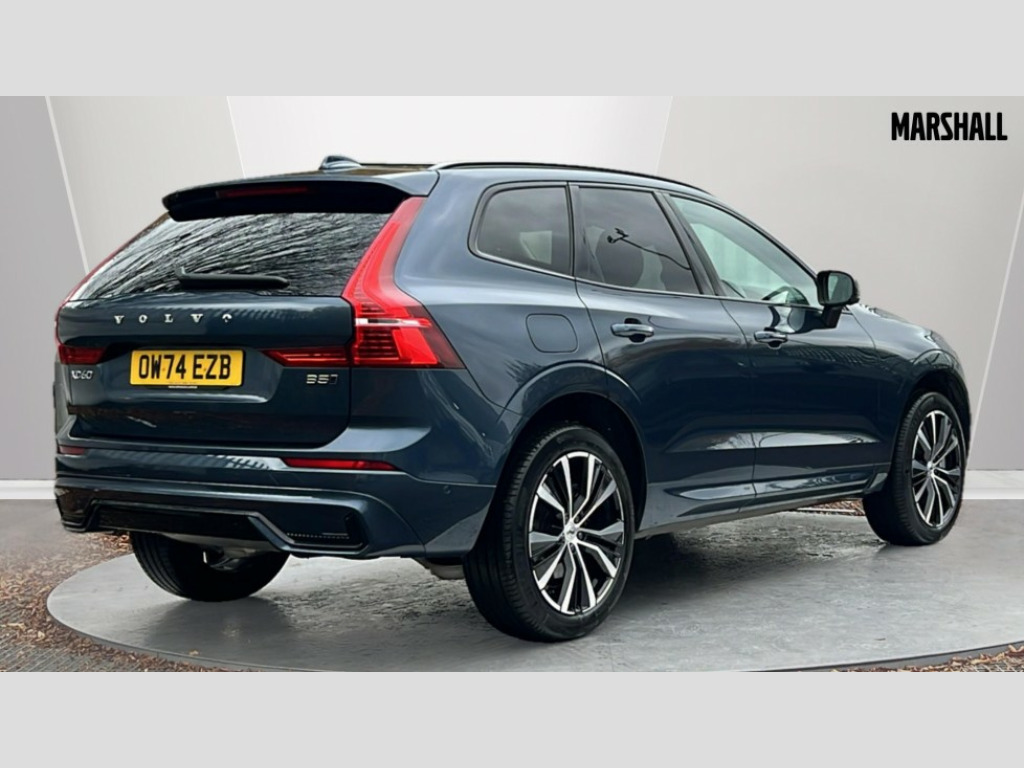 Volvo XC60 2.0 B5P Ultra Dark 5dr AWD Geartronic 12.3" Progressive Driver Display, 360 degree surround view parking camera with side proximity sensors, 9" centre console touch screen, Adjustable steering wheel force, Apple carplay (wired), Bluetooth handsfree system, Driver alert control with lane keeping aid, Emergency services call system, Front and rear park assist, Google Automotive Services, Intelligent speed assistance, Oncoming Lane Mitigation, PAS, Power operated tailgate with handsfree opening and closing, Service interval indicator, Speed limiter, Speed sensitive steering, Trip computer, Volvo cars services with app, Volvo on call with App, Wireless/Inductive Mobile Phone Charging, 8 speed automatic transmission with start/stop + manual change functions, Active four-C chassis + four corner adaptive damper with electronic rear air suspension, DAB Digital radio, Premium Sound by Bowers and Wilkins, dirac live, dolby pro logic II surround sound, 14 speakers/1100W output and subwoofer, Steering wheel remote infotainment controls, Active bending headlights with adaptive shadow technology, Adaptive brake lights with high level LED brake lights, Auto dimming interior + exterior mirrors, Automatic headlight levelling system, Automatic LED Headlights + Active high beam incorporating daytime running lights, Dark tinted windows for rear side windows and cargo area, Electric adjustable/heated/auto power folding door mirrors, Electric front+rear windows, Front aluminium tread plates, Headlight cleaning system, High gloss black door mirrors and window surround, High gloss black front and rear bumper decoratives, High gloss black mesh front grille with high gloss black surround, Home safe and approach lighting, Integrated roof rails in high gloss black, LED front fog lights with static cornering light function, Power glass tilt and slide panoramic sunroof with sun curtain, Puddle lights, Rain sensor with automatic windscreen wiper activation, Rear side wing doors, Rear wiper, Roof antenna, Roof spoiler, Tinted windscreen, Visible VIN plate, 12V socket in front tunnel console and luggage compartment, 3 seat bench in 2nd row, 4 Zone electronic climate control, A-pillar parking ticket holder, Air purifier particulate matter (PM) 2.5 filter, B Pillar ventilation, Bright metal luggage scuff plate, Centre console cupholders and storage, Charcoal floor mats, Front and rear courtesy lights, Front and rear door pocket illumination, Front cupholder illumination, Front footwell illumination, Front reading lights, Front seat cushion extensions, Glovebox compartment with illumination, Head restraints for all seats, Heated front seats, Heated steering wheel, Height/reach adjustable steering column, Illuminated luggage compartment, Illuminated vanity mirrors + ticket holder, ISOFIX attachment on outer rear seats, Load cover, Load protection net, Multi directional lumbar support, Power driver seat with memory + exterior mirrors memory, Power folding rear headrests, Power passenger seat with memory, Rear armrest with cupholder, Rear footwell and front and rear side step illumination, Rear reading lights, Rear seat concealed storage, Single front passenger seat, Tailgate illumination and ambient door lighting, Underfloor stowage compartment, Versatile split folding rear seat - 60/40, Driver assist pack with Driver awareness - XC60, 5 three point seatbelts, City safety with steering support with Pedestrian + cyclist + front collision warning with full auto brake and rear auto brake, Drivers knee airbag, Dual stage driver/passenger airbags, Electronic parking brake with auto hold, First aid kit, Front seats SIPS airbags, Hill descent control - Off-road drive mode, Hill start assist, IC (Inflatable Curtains) - Full Length, Passenger airbag cut-off device, Power child locks on rear doors, Run off Road Mitigation, Run off Road Protection, Seatbelt reminder and pretensioners, SIPS (Side Impact Protection System), Slippery road and hazard light alert, Stability and Traction Control with Spin control, Engine Drag Control and Corner Traction Control, Tyre pressure monitoring system, Vehicle deceleration control with Anti-lock Brake System, Electronic Brake Distribution and Emergency Brake Assist, Warning triangle, WHIPS whiplash protection system - front, Anti-theft alarm including immobiliser/volume sensor + level sensor, Care key with user defined top speed, Key integrated remote control central locking + fuel flap with deadlocking system and auto open/close power windows, Keyless Drive (includes Keyless Entry and Keyless Start), Locking wheel nuts, Private locking for tailgate, Tailored instrument panel with contrast stitching