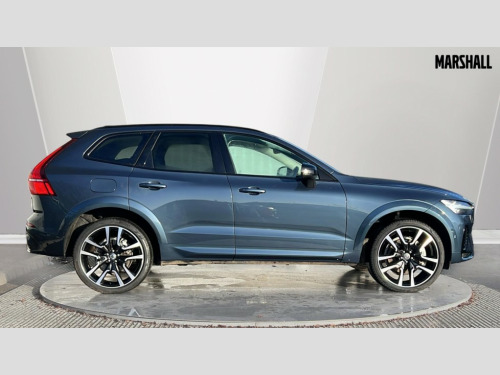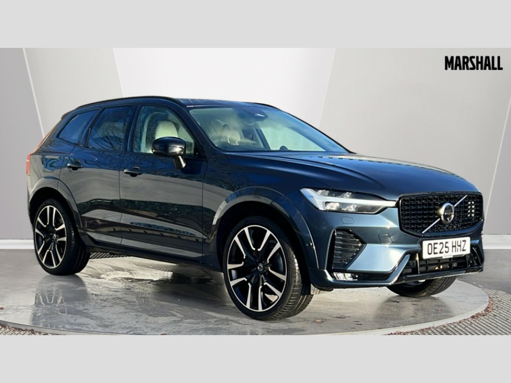 Volvo XC60 2.0 B5P Ultra Dark 5dr AWD Geartronic 12.3" Progressive Driver Display, 360 degree surround view parking camera with side proximity sensors, 9" centre console touch screen, Adjustable steering wheel force, Apple carplay (wired), Bluetooth handsfree system, Driver alert control with lane keeping aid, Emergency services call system, Front and rear park assist, Google Automotive Services, Intelligent speed assistance, Oncoming Lane Mitigation, PAS, Power operated tailgate with handsfree opening and closing, Service interval indicator, Speed limiter, Speed sensitive steering, Trip computer, Volvo cars services with app, Volvo on call with App, Wireless/Inductive Mobile Phone Charging, 8 speed automatic transmission with start/stop + manual change functions, Active four-C chassis + four corner adaptive damper with electronic rear air suspension, DAB Digital radio, Premium sound by Bowers and Wilkins, dirac live, dolby pro logic II surround sound, 14 speakers/1100W output and fresh air subwoofer, Steering wheel remote infotainment controls, Active bending headlights with adaptive shadow technology, Adaptive brake lights with high level LED brake lights, Auto dimming interior + exterior mirrors, Automatic headlight levelling system, Automatic LED Headlights + Active high beam incorporating daytime running lights, Dark tinted windows for rear side windows and cargo area, Electric adjustable/heated/auto power folding door mirrors, Electric front+rear windows, Front aluminium tread plates, Headlight cleaning system, High gloss black door mirrors and window surround, High gloss black front and rear bumper decoratives, High gloss black mesh front grille with high gloss black surround, Home safe and approach lighting, Integrated roof rails in high gloss black, LED front fog lights with static cornering light function, Power glass tilt and slide panoramic sunroof with sun curtain, Puddle lights, Rain sensor with automatic windscreen wiper activation, Rear side wing doors, Rear wiper, Roof antenna, Roof spoiler, Tinted windscreen, Visible VIN plate, 12V socket in front tunnel console and luggage compartment, 3 seat bench in 2nd row, 4 Zone electronic climate control, A-pillar parking ticket holder, Air purifier particulate matter (PM) 2.5 filter, B Pillar ventilation, Bright metal luggage scuff plate, Centre console cupholders and storage, Charcoal floor mats, Front and rear courtesy lights, Front and rear door pocket illumination, Front cupholder illumination, Front footwell illumination, Front reading lights, Front seat cushion extensions, Glovebox compartment with illumination, Head restraints for all seats, Heated front seats, Heated steering wheel, Height/reach adjustable steering column, Illuminated luggage compartment, Illuminated vanity mirrors + ticket holder, ISOFIX attachment on outer rear seats, Load cover, Load protection net, Multi directional lumbar support, Power driver seat with memory + exterior mirrors memory, Power folding rear headrests, Power passenger seat with memory, Rear armrest with cupholder, Rear footwell and front and rear side step illumination, Rear reading lights, Rear seat concealed storage, Single front passenger seat, Tailgate illumination and ambient door lighting, Underfloor stowage compartment, Versatile split folding rear seat - 60/40, Driver assist pack with Driver awareness - XC60, 5 three point seatbelts, City safety with steering support with Pedestrian + cyclist + front collision warning with full auto brake and rear auto brake, Drivers knee airbag, Dual stage driver/passenger airbags, Electronic parking brake with auto hold, First aid kit, Front seats SIPS airbags, Hill descent control - Off-road drive mode, Hill start assist, IC (Inflatable Curtains) - Full Length, Passenger airbag cut-off device, Power child locks on rear doors, Run off Road Mitigation, Run off Road Protection, Seatbelt reminder and pretensioners, SIPS (Side Impact Protection System), Slippery road and hazard light alert, Stability and Traction Control with Spin control, Engine Drag Control and Corner Traction Control, Tyre pressure monitoring system, Vehicle deceleration control with Anti-lock Brake System, Electronic Brake Distribution and Emergency Brake Assist, Warning triangle, WHIPS whiplash protection system - front, Anti-theft alarm including immobiliser/volume sensor + level sensor, Care key with user defined top speed, Key integrated remote control central locking + fuel flap with deadlocking system and auto open/close power windows, Keyless Drive (includes Keyless Entry and Keyless Start), Locking wheel nuts, Private locking for tailgate, Tailored instrument panel with contrast stitching