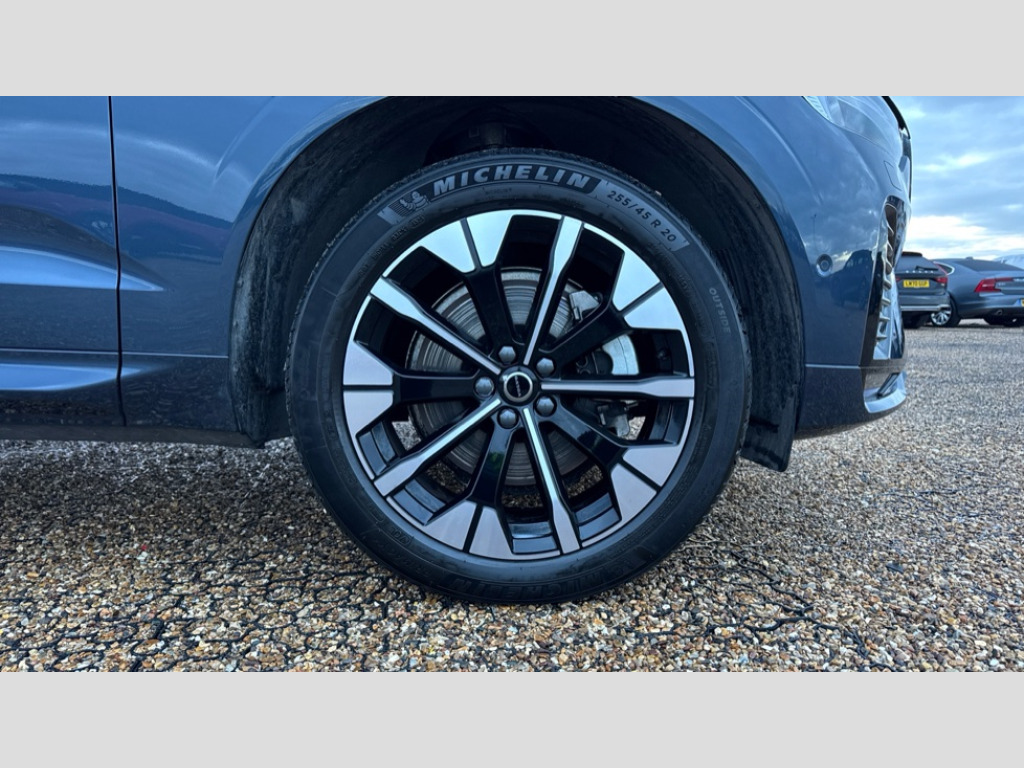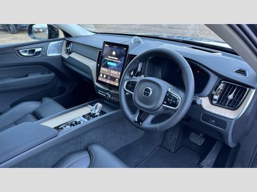 Volvo XC60 2.0 B5P Ultra Dark 5dr AWD Geartronic 11.2" centre console touch screen, 12.3" Progressive Driver Display, 360 degree surround view parking camera with side proximity sensors, Adaptive cruise control, Adjustable steering wheel force, Android auto (Wired), Apple carplay (wired), Bluetooth handsfree system, Driver alert control with lane keeping aid, Emergency services call system, Front and rear park assist, Google Automotive Services, Intelligent speed assistance, Oncoming Lane Mitigation, PAS, Power operated tailgate with handsfree opening and closing, Service interval indicator, Speed limiter, Speed sensitive steering, Trip computer, Volvo cars services with app, Volvo on call with App, Wireless/Inductive Mobile Phone Charging, 8 speed automatic transmission with start/stop + manual change functions, Active four-C chassis + four corner adaptive damper with electronic rear air suspension, DAB Digital radio, Premium sound by Bowers and Wilkins, dirac live, dolby pro logic II surround sound, 14 speakers/1100W output and fresh air subwoofer, Steering wheel remote infotainment controls, Active bending headlights with adaptive shadow technology, Adaptive brake lights with high level LED brake lights, Auto dimming interior + exterior mirrors, Automatic headlight levelling system, Automatic LED Headlights + Active high beam incorporating daytime running lights, Dark tinted windows for rear side windows and cargo area, Electric adjustable/heated/auto power folding door mirrors, Electric front+rear windows, Front aluminium tread plates, Headlight cleaning system, High gloss black door mirrors and window surround, High gloss black front and rear bumper decoratives, High gloss black mesh front grille with high gloss black surround, Home safe and approach lighting, Integrated roof rails in high gloss black, LED front fog lights with static cornering light function, Power glass tilt and slide panoramic sunroof with sun curtain, Puddle lights, Rain sensor with automatic windscreen wiper activation, Rear side wing doors, Rear wiper, Roof antenna, Roof spoiler, Tinted windscreen, Visible VIN plate, 12V socket in front tunnel console and luggage compartment, 3 seat bench in 2nd row, 4 Zone electronic climate control, A-pillar parking ticket holder, Air purifier particulate matter (PM) 2.5 filter, B Pillar ventilation, Bright metal luggage scuff plate, Centre console cupholders and storage, Charcoal floor mats, Front and rear courtesy lights, Front and rear door pocket illumination, Front cupholder illumination, Front footwell illumination, Front reading lights, Front seat cushion extensions, Glovebox compartment with illumination, Head restraints for all seats, Heated front seats, Heated steering wheel, Height/reach adjustable steering column, Illuminated luggage compartment, Illuminated vanity mirrors + ticket holder, Inner door release handle illumination, ISOFIX attachment on outer rear seats, Load cover, Load protection net, Multi directional lumbar support, Power driver seat with memory + exterior mirrors memory, Power folding rear headrests, Power passenger seat with memory, Rear armrest with cupholder, Rear footwell and front and rear side step illumination, Rear reading lights, Rear seat concealed storage, Single front passenger seat, Tailgate illumination and ambient door lighting, Underfloor stowage compartment, Versatile split folding rear seat - 60/40, Driver assist pack without Adaptive cruise control - XC60, 5 three point seatbelts, City safety with steering support with Pedestrian + cyclist + front collision warning with full auto brake and rear auto brake, Drivers knee airbag, Dual stage driver/passenger airbags, Electronic parking brake with auto hold, First aid kit, Front seats SIPS airbags, Hill descent control - Off-road drive mode, Hill start assist, IC (Inflatable Curtains) - Full Length, Passenger airbag cut-off device, Power child locks on rear doors, Run off Road Mitigation, Run off Road Protection, Seatbelt reminder and pretensioners, SIPS (Side Impact Protection System), Slippery road and hazard light alert, Stability and Traction Control with Spin control, Engine Drag Control and Corner Traction Control, Tyre pressure monitoring system, Vehicle deceleration control with Anti-lock Brake System, Electronic Brake Distribution and Emergency Brake Assist, Warning triangle, WHIPS whiplash protection system - front, Anti-theft alarm including immobiliser/volume sensor + level sensor, Key integrated remote control central locking + fuel flap with deadlocking system and auto open/close power windows, Keyless Drive (includes Keyless Entry and Keyless Start), Locking wheel nuts, Private locking for tailgate, Tailored instrument panel with contrast stitching, Summer tyres