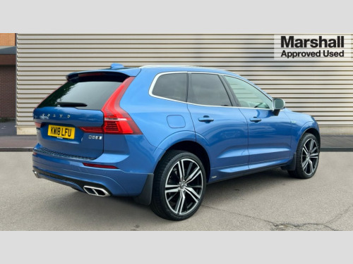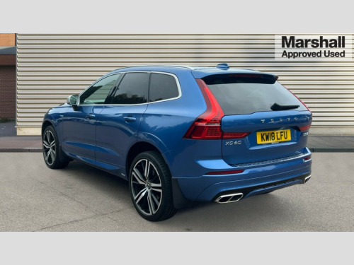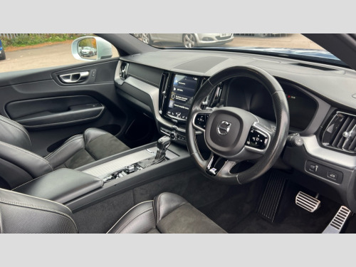 Volvo XC60 2.0 D5 PowerPulse R DESIGN Pro 5dr AWD Geartronic 12.3" Active TFT crystal driver's instrument display, Adjustable steering wheel force, Bluetooth hands free telephone kit, Drive mode selector, Intelligent driver information system (IDIS), Lane keep assist with driver alert control, Oncoming Lane Mitigation, Power tailgate, Road Edge Detection, Service interval indicator, Speed limiter, Speed sensitive steering, Voice control system, Volvo on call, Active four-C chassis + four corner adaptive damper with electronic rear air suspension, Diesel particulate filter, DAB Digital radio, Active bending headlights, Adaptive brake lights, Auto dimming interior + exterior mirrors, Body colour bumpers, Dark tinted glass for rear windows + rear screen + side luggage area window, Dual integrated exhaust pipes with high gloss black surround, Electric front+rear windows, Electrically adjustable and heated door mirrors, Front skid plate, Headlamp cleaning system, Headlamp levelling, Heated aqua blades, High gloss black front grille, Home safe and approach lighting, Illuminated side steps, LED front fog lights with static cornering light function, LED Headlights + Active high beam incorporating daytime running lights, Matt silver finish door mirrors, Puddle lights, Rain sensor windscreen wipers, Rear wiper, Roof spoiler, Silk metal grille surround, Silver matt window frame surround, Silver roof rails, Tinted windscreen, 12V power point in luggage area, 12V socket in front + rear tunnel console, 3 spoke leather steering wheel with chrome trim, 4 aluminium high level anchor points, 60/40 split folding rear seat, A-pillar parking ticket holder, Ambient lighting, B Pillar ventilation, Black headlining, Bright metal luggage threshold, Contour sports seats with leather/nubuck upholstery, Electric drivers seat with memory + mirrors memory, Extended front seat cushions, Front and rear door pockets, Front centre armrest with storage compartment and cupholders, Front footwell illumination, Front/rear reading lights, Gearshift paddles, Glovebox illumination, Head restraints for all seats, Heated front seats, Heated steering wheel, Height adjustable drivers seat with lumbar support, Height/reach adjustable steering column, Illuminated driver/passenger vanity mirrors, Illuminated front cupholder, Illuminated luggage compartment, Illuminated tailgate, Isofix attachments on outer rear seats, Load cover, Lockable load floor, Multicolour theatre lights, Passenger seat adjustable for lumbar support, Perforated leather gearknob, Perforated Leather Key Integrated Remote, Perforated leather steering wheel, Pollen filter, Rear armrest / integral cup holders / storage tray, Rear footwell illumination, Sport pedals, Sports floor mats, Underfloor stowage compartment, WHIPS - Whiplash Protection System, 5 three point seatbelts, ABS/EBD, Child proof door locks, City safety, Drivers knee airbag, DSTC-Dynamic Stability and Traction Control, Dual stage driver/passenger airbags, EBA, Electronic parking brake with auto hold, Fasten seatbelt reminder, First aid kit, Hill descent control, Hill start assist, Hydraulic Brake Assist (HBA), Inflatable curtain, Passenger airbag deactivate switch, Road sign information display, Roll over protection, RSC - Roll stability control, Run off Road Protection, Seatbelt pre-tensioners, SIPS airbags, Tyre pressure monitor, Warning triangle, Anti-theft alarm including immobiliser/volume sensor + level sensor, Fuel flap with deadlocking system, Key integrated remote control central locking, Keyless entry system with hands free boot opening, Keyless Start, Locking wheel nuts, Private locking, Metal mesh inlays
