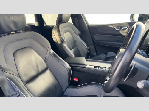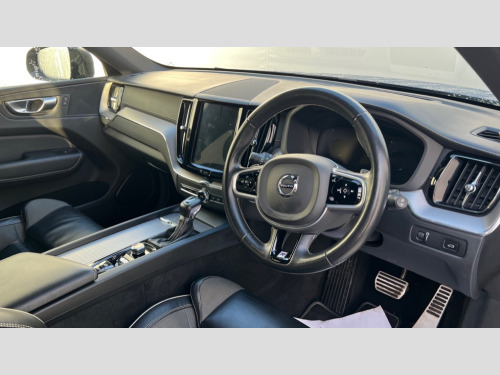 Volvo XC60 2.0 T5 [250] R DESIGN Pro 5dr Geartronic 12.3" Active TFT crystal driver's instrument display, 9" Touch screen, Adjustable steering wheel force, Bluetooth hands free telephone kit, Drive mode selector, Front collision warning with full auto brake, Intelligent driver information system (IDIS), Lane keep assist with driver alert control, Oncoming Lane Mitigation, Power tailgate, Remote fuel flap release, Road Edge Detection, Service interval indicator, Speed limiter, Speed sensitive steering, Trip computer, Voice control system, Volvo on call, Active four-C chassis + four corner adaptive damper with electronic rear air suspension, DAB Digital radio, Active bending headlights with adaptive shadow technology, Adaptive brake lights with high level LED brake lights, Auto dimming interior + exterior mirrors, Body colour bumpers, Dark tinted glass for rear windows + rear screen + side luggage area window, Dual integrated exhaust pipes with high gloss black surround, Electric folding door mirrors, Electric front+rear windows, Electrically adjustable and heated door mirrors, Headlamp cleaning system, Headlamp levelling, Heated aqua blades, High gloss black door mirrors, High gloss black mesh front grille with silk metal surround, High gloss black roof rails, High gloss black window frame surround, Home safe and approach lighting, Illuminated side steps, LED front fog lights with static cornering light function, LED Headlights + Active high beam incorporating daytime running lights, R Design tread plates, Rain sensor with automatic windscreen wiper activation, Rear wiper, Roof antenna, Roof spoiler, Tinted windscreen, Visible VIN plate, 12V power point in luggage area, 3 spoke leather steering wheel with chrome trim, 60/40 split folding rear seat, A-pillar parking ticket holder, B Pillar ventilation, Black headlining, Bright metal luggage threshold, Centre armrest storage illumination, Centre console cupholders and storage, Contour sports seats with leather/textile upholstey, Electric drivers seat with memory, height adjust and multi directional lumbar support + mirrors memory, Extended front seat cushions, Front and rear door pocket and front cupholder illumination, Front footwell illumination, Front reading lights, Glovebox illumination, Head restraints for all seats, Heated front seats, Heated steering wheel, Height/reach adjustable steering column, High gloss black steering wheel remote infotainment controls, Illuminated driver/passenger vanity mirrors, Illuminated luggage compartment, Illuminated tailgate, Load cover, Lockable glovebox, Multicolour theatre lights, Nappa Leather Key Integrated Remote, Pollen filter, Rear armrest / integral cup holders / storage tray, Rear footwell illumination, Rear seat concealed storage, Sport leather gear knob, Sport pedals, Sports floor mats, Sports leather steering wheel with gearshift paddles, Tailgate illumination and ambient door lighting, Underfloor stowage compartment, Vanity mirror with ticket holder, WHIPS - Whiplash Protection System, 5 three point seatbelts, ABS/EBD, City safety with steering support with Pedestrian + cyclist + large animal detection + front collision warning with full auto brake, Curtain airbags, Drivers knee airbag, DSTC-Dynamic Stability and Traction Control, Dual stage driver/passenger airbags, EBA, Electronic parking brake with auto hold, Fasten seatbelt reminder, First aid kit, Hill descent control, Hill start assist, Hydraulic Brake Assist (HBA), Passenger airbag deactivate switch, Road sign information display, Run off Road Protection, Seatbelt pre-tensioners, SIPS airbags, Tyre pressure monitor, Warning triangle, Anti-theft alarm including immobiliser/volume sensor + level sensor, Key integrated remote control central locking + fuel flap with deadlocking system and auto open/close power windows, Locking wheel nuts, Private locking for tailgate, Metal mesh inlays, Tailored instrument panel with contrast stitching