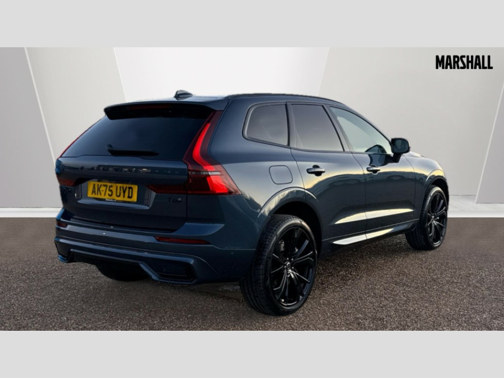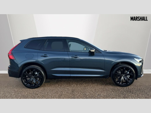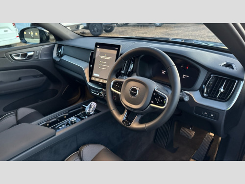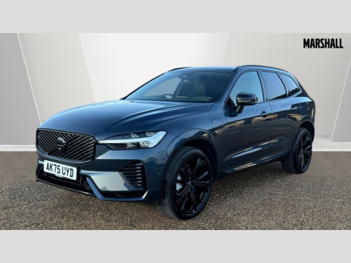 Volvo XC60 2.0 T6 [350] PHEV Plus Black Ed 5dr AWD Geartronic 11.2" centre console touch screen, 12.3" Progressive Driver Display, 360 degree surround view parking camera with side proximity sensors, Adaptive cruise control, Adjustable steering wheel force, Android auto (Wired), Apple carplay (wired), Bluetooth handsfree system, Drive mode settings, Driver alert control with lane keeping aid, Emergency services call system, Front and rear park assist, Google Automotive Services, Intelligent speed assistance, Oncoming Lane Mitigation, PAS, Power operated tailgate with handsfree opening and closing, Service interval indicator, Speed limiter, Speed sensitive steering, Trip computer, Volvo cars services with app, Volvo on call with App, Wireless/Inductive Mobile Phone Charging, 2 phase on board charger 6.4kW (home charging limited to 3.7kW), 6m 3 phase 16amp Type 2 / mode 3 charge cable, 8 speed automatic transmission with start/stop + manual change functions, Electric rear axle drive, Recharging port located in nearside front wing, DAB Digital radio, Low speed exterior sound speaker, Premium Sound by Harman Kardon, dirac unison, dolby pro logic II surround sound, 13 speakers/600W output and fresh air subwoofer, Steering wheel remote infotainment controls, Adaptive brake lights with high level LED brake lights, Auto dimming interior + exterior mirrors, Automatic headlight levelling system, Automatic LED Headlights + Active high beam incorporating daytime running lights, Dark tinted windows for rear side windows and cargo area, Electric adjustable/heated/auto power folding door mirrors, Electric front+rear windows, Front aluminium tread plates, Heated front windscreen, High gloss black door mirrors and window surround, High gloss black front and rear bumper decoratives, High gloss black front grille, Surround, Strikethrough and Ironmark, High gloss black rear model, engine and volvo logo badges, Home safe and approach lighting, Integrated roof rails in high gloss black, Puddle lights, Rain sensor with automatic windscreen wiper activation, Rear side wing doors, Rear wiper, Roof antenna, Roof spoiler, Tinted windscreen, Visible VIN plate, 12V socket in front tunnel console and luggage compartment, 2 zone electronic climate control with Clean zone air quality system and pollen filter, 3 seat bench in 2nd row, 3 Spoke tailored steering wheel with chrome trim, A-pillar parking ticket holder, Air purifier particulate matter (PM) 2.5 filter, B Pillar ventilation, Bright metal luggage scuff plate, Centre console cupholders and storage, Charcoal floor mats, Contour sports seats with nappa soft leather/textile upholstery, Front and rear courtesy lights, Front and rear door pocket illumination, Front cupholder illumination, Front footwell illumination, Front reading lights, Front seat cushion extensions, Glovebox compartment with illumination, Head restraints for all seats, Heated front seats, Heated steering wheel, Height/reach adjustable steering column, Illuminated luggage compartment, Illuminated vanity mirrors + ticket holder, Inner door release handle illumination, ISOFIX attachment on outer rear seats, Load cover, Load protection net, Multi directional lumbar support, Power driver seat with memory + exterior mirrors memory, Power height adjustable passenger seat, Power passenger seat with memory, Rear armrest with cupholder, Rear footwell and front and rear side step illumination, Rear reading lights, Rear seat concealed storage, Single front passenger seat, Tailgate illumination and ambient door lighting, Underfloor stowage compartment, Versatile split folding rear seat - 60/40, Driver assist pack without Adaptive cruise control - XC60, 5 three point seatbelts, City safety with steering support with Pedestrian + cyclist + front collision warning with full auto brake and rear auto brake, Drivers knee airbag, Dual stage driver/passenger airbags, Electronic parking brake with auto hold, First aid kit, Front seats SIPS airbags, Hill descent control - Off-road drive mode, Hill start assist, IC (Inflatable Curtains) - Full Length, Passenger airbag cut-off device, Power child locks on rear doors, Road sign information display, Run off Road Mitigation, Run off Road Protection, Seatbelt reminder and pretensioners, SIPS (Side Impact Protection System), Slippery road and hazard light alert, Stability and Traction Control with Spin control, Engine Drag Control and Corner Traction Control, Tyre pressure monitoring system, Vehicle deceleration control with Anti-lock Brake System, Electronic Brake Distribution and Emergency Brake Assist, Warning triangle, WHIPS whiplash protection system - front, Anti-theft alarm including immobiliser/volume sensor + level sensor, Key integrated remote control central locking + fuel flap with deadlocking system and auto open/close power windows, Keyless Drive (includes Keyless Entry and Keyless Start), Locking wheel nuts, Private locking for tailgate, 21" 5 Double spoke high gloss black alloy wheels, Summer tyres, Tyre sealant kit + 12v compressor