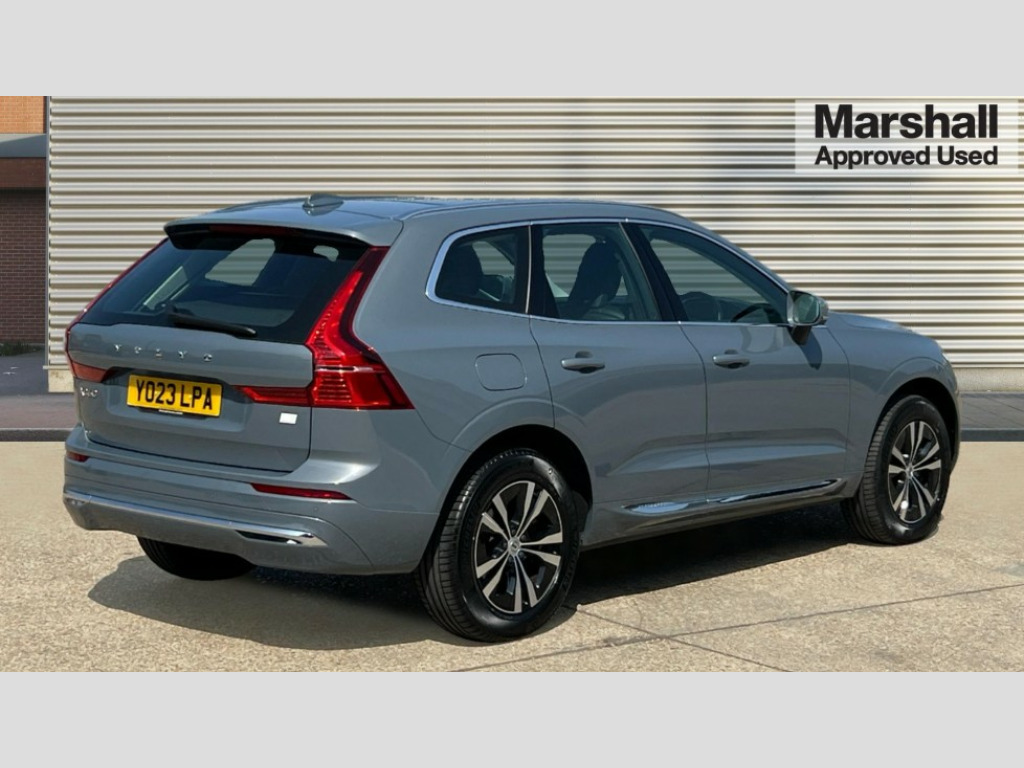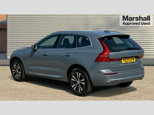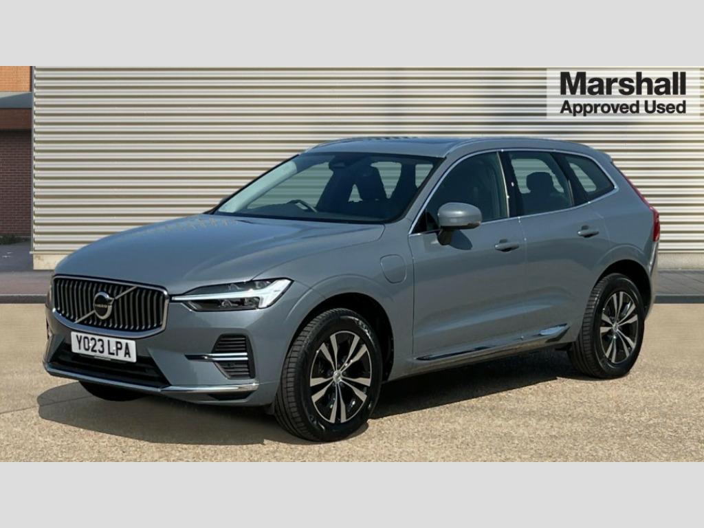 Volvo XC60 2.0 T6 [350] RC PHEV Core Bright 5dr AWD Gtron 12.3" Progressive Driver Display, 9" centre console touch screen, Adjustable steering wheel force, Bluetooth handsfree system, Drive mode settings, Driver alert control with lane keeping aid, Emergency services call system, Front and rear park assist, Google Automotive Services, Oncoming Lane Mitigation, Power tailgate, Rear park assist camera, Service interval indicator, Speed limiter, Speed sensitive steering, Trip computer, Volvo on call with App, Wireless/Inductive Mobile Phone Charging, 3.7 kW monophase on board charger, 7m 10amp Charge Cable with 3 Pin Plug and 7m 1-Phase 16amp Type 2 / Mode 3 Charge Cable, 8 speed automatic transmission with start/stop + manual change functions, Dynamic chassis, Electric rear axle drive, Recharging port located in nearside front wing, DAB Digital radio, Fresh air subwoofer, High performance sound, connected service booking, 2x USB Type A in front and 2x USB Type C in rear, 10 speakers/220W output, Low speed exterior sound speaker, Steering wheel remote infotainment controls, Adaptive brake lights with high level LED brake lights, Auto dimming interior + exterior mirrors, Automatic headlight levelling system, Automatic LED Headlights + Active high beam incorporating daytime running lights, Chrome front and rear bumper decoratives, Chrome lower side moulding trim with Recharge logo, Chrome window surround, Colour co-ordinated door mirrors, Electric adjustable/heated/auto power folding door mirrors, Electric front+rear windows, High gloss black grille with chrome inserts, Home safe and approach lighting, Integrated roof rails in Chrome, Power glass tilt and slide panoramic sunroof with sun curtain, Rain sensor with automatic windscreen wiper activation, Rear side wing doors, Rear wiper, Roof antenna, Roof spoiler, Tinted windscreen, Visible VIN plate, 12V socket in front tunnel console and luggage compartment, 2 zone electronic climate control with Clean zone air quality system and pollen filter, 3 seat bench in 2nd row, A-pillar parking ticket holder, B Pillar ventilation, Blond headlining, Bright metal luggage threshold, Centre console cupholders and storage, Charcoal floor mats, Front and rear courtesy lights, Front cupholder illumination, Front footwell illumination, Front reading lights, Glovebox compartment with illumination, Head restraints for all seats, Heated front seats, Height/reach adjustable steering column, Illuminated luggage compartment, Illuminated vanity mirrors + ticket holder, ISOFIX attachment on outer rear seats, Leather upholstery, Load cover, Load protection net, Power passenger seat with lumbar support, Rear armrest with cupholder, Rear seat concealed storage, Recharge aluminium tread plates, Single front passenger seat, Synthetic leather sport gear knob, Underfloor stowage compartment, Versatile split folding rear seat - 60/40, 5 three point seatbelts, City safety with steering support with Pedestrian + cyclist + large animal detection + front collision warning with full auto brake, Drivers knee airbag, Dual stage driver/passenger airbags, Electronic parking brake with auto hold, First aid kit, Front seats SIPS airbags, Hill descent control - Off-road drive mode, Hill start assist, IC (Inflatable Curtains) - Full Length, Passenger airbag cut-off device, Power child locks on rear doors, Road sign information display, Run off Road Mitigation, Run off Road Protection, Seatbelt reminder and pretensioners, SIPS (Side Impact Protection System), Slippery road and hazard light alert, Stability and Traction Control with Spin control, Engine Drag Control and Corner Traction Control, Tyre pressure monitoring system, Vehicle deceleration control with Anti-lock Brake System, Electronic Brake Distribution and Emergency Brake Assist, Warning triangle, WHIPS whiplash protection system - front, Anti-theft alarm including immobiliser/volume sensor + level sensor, Care key with user defined top speed, Key integrated remote control central locking + fuel flap with deadlocking system and auto open/close power windows, Keyless Start, Locking wheel nuts, Private locking for tailgate, Tyre sealant kit + 12v compressor