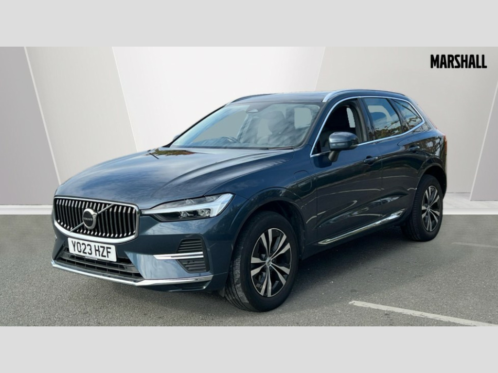 Volvo XC60 2.0 T6 [350] RC PHEV Core Bright 5dr AWD Gtron 12.3" Progressive Driver Display, 9" centre console touch screen, Adjustable steering wheel force, Bluetooth handsfree system, Drive mode settings, Driver alert control with lane keeping aid, Emergency services call system, Front and rear park assist, Google Automotive Services, Oncoming Lane Mitigation, Power tailgate, Rear park assist camera, Service interval indicator, Speed limiter, Speed sensitive steering, Trip computer, Volvo on call with App, Wireless/Inductive Mobile Phone Charging, 3.7 kW monophase on board charger, 7m 10amp Charge Cable with 3 Pin Plug and 7m 1-Phase 16amp Type 2 / Mode 3 Charge Cable, 8 speed automatic transmission with start/stop + manual change functions, Dynamic chassis, Electric rear axle drive, Recharging port located in nearside front wing, DAB Digital radio, Fresh air subwoofer, High performance sound, connected service booking, 2x USB Type A in front and 2x USB Type C in rear, 10 speakers/220W output, Low speed exterior sound speaker, Steering wheel remote infotainment controls, Adaptive brake lights with high level LED brake lights, Auto dimming interior + exterior mirrors, Automatic headlight levelling system, Automatic LED Headlights + Active high beam incorporating daytime running lights, Chrome front and rear bumper decoratives, Chrome lower side moulding trim with Recharge logo, Chrome window surround, Colour co-ordinated door mirrors, Electric adjustable/heated/auto power folding door mirrors, Electric front+rear windows, High gloss black grille with chrome inserts, Home safe and approach lighting, Integrated roof rails in Chrome, Power glass tilt and slide panoramic sunroof with sun curtain, Rain sensor with automatic windscreen wiper activation, Rear side wing doors, Rear wiper, Roof antenna, Roof spoiler, Tinted windscreen, Visible VIN plate, 12V socket in front tunnel console and luggage compartment, 2 zone electronic climate control with Clean zone air quality system and pollen filter, 3 seat bench in 2nd row, A-pillar parking ticket holder, B Pillar ventilation, Blond headlining, Bright metal luggage threshold, Centre console cupholders and storage, Charcoal floor mats, Front and rear courtesy lights, Front cupholder illumination, Front footwell illumination, Front reading lights, Glovebox compartment with illumination, Head restraints for all seats, Heated front seats, Height/reach adjustable steering column, Illuminated luggage compartment, Illuminated vanity mirrors + ticket holder, ISOFIX attachment on outer rear seats, Leather upholstery, Load cover, Load protection net, Power passenger seat with lumbar support, Rear armrest with cupholder, Rear seat concealed storage, Recharge aluminium tread plates, Single front passenger seat, Synthetic leather sport gear knob, Underfloor stowage compartment, Versatile split folding rear seat - 60/40, 5 three point seatbelts, City safety with steering support with Pedestrian + cyclist + large animal detection + front collision warning with full auto brake, Drivers knee airbag, Dual stage driver/passenger airbags, Electronic parking brake with auto hold, First aid kit, Front seats SIPS airbags, Hill descent control - Off-road drive mode, Hill start assist, IC (Inflatable Curtains) - Full Length, Passenger airbag cut-off device, Power child locks on rear doors, Road sign information display, Run off Road Mitigation, Run off Road Protection, Seatbelt reminder and pretensioners, SIPS (Side Impact Protection System), Slippery road and hazard light alert, Stability and Traction Control with Spin control, Engine Drag Control and Corner Traction Control, Tyre pressure monitoring system, Vehicle deceleration control with Anti-lock Brake System, Electronic Brake Distribution and Emergency Brake Assist, Warning triangle, WHIPS whiplash protection system - front, Anti-theft alarm including immobiliser/volume sensor + level sensor, Care key with user defined top speed, Key integrated remote control central locking + fuel flap with deadlocking system and auto open/close power windows, Keyless Start, Locking wheel nuts, Private locking for tailgate, Tyre sealant kit + 12v compressor