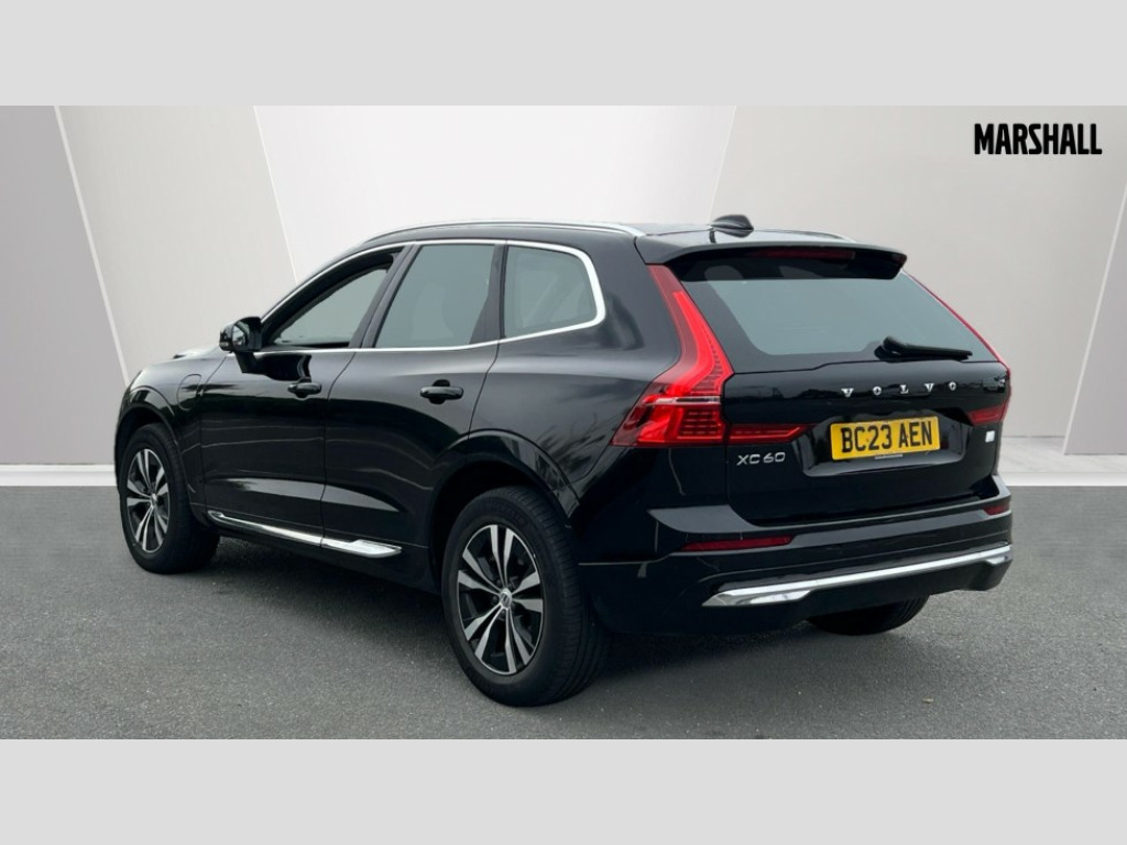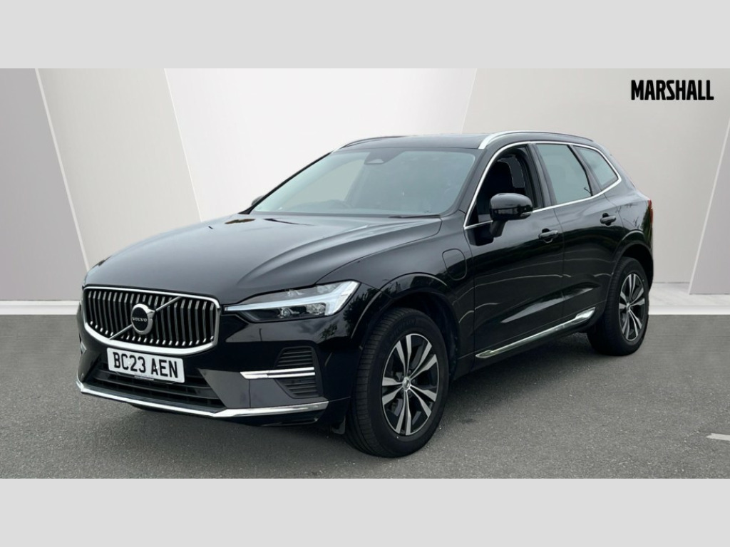 Volvo XC60 2.0 T6 [350] RC PHEV Core Bright 5dr AWD Gtron 12.3" Progressive Driver Display, 9" centre console touch screen, Adjustable steering wheel force, Bluetooth handsfree system, Drive mode settings, Driver alert control with lane keeping aid, Emergency services call system, Front and rear park assist, Google Automotive Services, Oncoming Lane Mitigation, Power tailgate, Rear park assist camera, Service interval indicator, Speed limiter, Speed sensitive steering, Trip computer, Volvo on call with App, Wireless/Inductive Mobile Phone Charging, 3.7 kW monophase on board charger, 7m 10amp Charge Cable with 3 Pin Plug and 7m 1-Phase 16amp Type 2 / Mode 3 Charge Cable, 8 speed automatic transmission with start/stop + manual change functions, Dynamic chassis, Electric rear axle drive, Recharging port located in nearside front wing, DAB Digital radio, Fresh air subwoofer, High performance sound, connected service booking, 2x USB Type A in front and 2x USB Type C in rear, 10 speakers/220W output, Low speed exterior sound speaker, Steering wheel remote infotainment controls, Adaptive brake lights with high level LED brake lights, Auto dimming interior + exterior mirrors, Automatic headlight levelling system, Automatic LED Headlights + Active high beam incorporating daytime running lights, Chrome front and rear bumper decoratives, Chrome lower side moulding trim with Recharge logo, Chrome window surround, Colour co-ordinated door mirrors, Electric adjustable/heated/auto power folding door mirrors, Electric front+rear windows, High gloss black grille with chrome inserts, Home safe and approach lighting, Integrated roof rails in Chrome, Power glass tilt and slide panoramic sunroof with sun curtain, Rain sensor with automatic windscreen wiper activation, Rear side wing doors, Rear wiper, Roof antenna, Roof spoiler, Tinted windscreen, Visible VIN plate, 12V socket in front tunnel console and luggage compartment, 2 zone electronic climate control with Clean zone air quality system and pollen filter, 3 seat bench in 2nd row, A-pillar parking ticket holder, B Pillar ventilation, Blond headlining, Bright metal luggage threshold, Centre console cupholders and storage, Charcoal floor mats, Front and rear courtesy lights, Front cupholder illumination, Front footwell illumination, Front reading lights, Glovebox compartment with illumination, Head restraints for all seats, Heated front seats, Height/reach adjustable steering column, Illuminated luggage compartment, Illuminated vanity mirrors + ticket holder, ISOFIX attachment on outer rear seats, Leather upholstery, Load cover, Load protection net, Power passenger seat with lumbar support, Rear armrest with cupholder, Rear seat concealed storage, Recharge aluminium tread plates, Single front passenger seat, Synthetic leather sport gear knob, Underfloor stowage compartment, Versatile split folding rear seat - 60/40, 5 three point seatbelts, City safety with steering support with Pedestrian + cyclist + large animal detection + front collision warning with full auto brake, Drivers knee airbag, Dual stage driver/passenger airbags, Electronic parking brake with auto hold, First aid kit, Front seats SIPS airbags, Hill descent control - Off-road drive mode, Hill start assist, IC (Inflatable Curtains) - Full Length, Passenger airbag cut-off device, Power child locks on rear doors, Road sign information display, Run off Road Mitigation, Run off Road Protection, Seatbelt reminder and pretensioners, SIPS (Side Impact Protection System), Slippery road and hazard light alert, Stability and Traction Control with Spin control, Engine Drag Control and Corner Traction Control, Tyre pressure monitoring system, Vehicle deceleration control with Anti-lock Brake System, Electronic Brake Distribution and Emergency Brake Assist, Warning triangle, WHIPS whiplash protection system - front, Anti-theft alarm including immobiliser/volume sensor + level sensor, Care key with user defined top speed, Key integrated remote control central locking + fuel flap with deadlocking system and auto open/close power windows, Keyless Start, Locking wheel nuts, Private locking for tailgate, Tyre sealant kit + 12v compressor