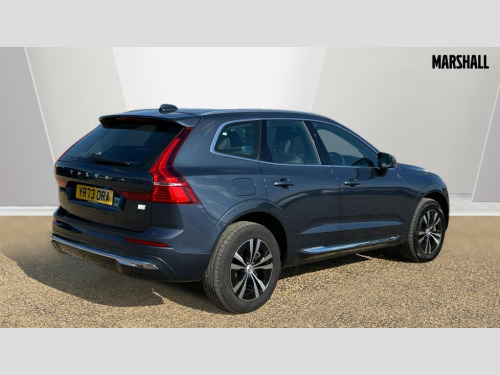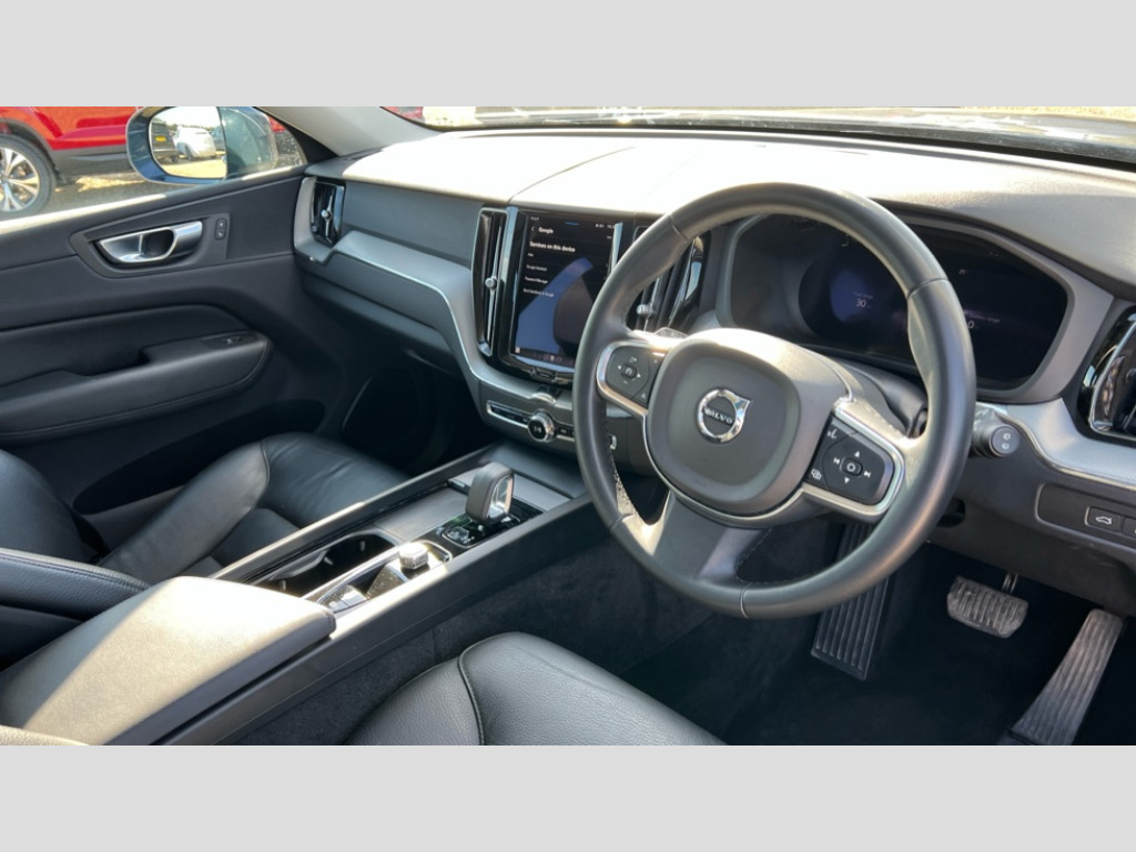 Volvo XC60 2.0 T6 [350] RC PHEV Core Bright 5dr AWD Gtron 12.3" Progressive Driver Display, 9" centre console touch screen, Adjustable steering wheel force, Bluetooth handsfree system, Drive mode settings, Driver alert control with lane keeping aid, Emergency services call system, Front and rear park assist, Google Automotive Services, Oncoming Lane Mitigation, Power tailgate, Rear park assist camera, Service interval indicator, Speed limiter, Speed sensitive steering, Trip computer, Volvo on call with App, Wireless/Inductive Mobile Phone Charging, 3.7 kW monophase on board charger, 7m 10amp Charge Cable with 3 Pin Plug and 7m 1-Phase 16amp Type 2 / Mode 3 Charge Cable, 8 speed automatic transmission with start/stop + manual change functions, Dynamic chassis, Electric rear axle drive, Recharging port located in nearside front wing, DAB Digital radio, Fresh air subwoofer, High performance sound, connected service booking, 2x USB Type A in front and 2x USB Type C in rear, 10 speakers/220W output, Low speed exterior sound speaker, Steering wheel remote infotainment controls, Adaptive brake lights with high level LED brake lights, Auto dimming interior + exterior mirrors, Automatic headlight levelling system, Automatic LED Headlights + Active high beam incorporating daytime running lights, Chrome front and rear bumper decoratives, Chrome lower side moulding trim with Recharge logo, Chrome window surround, Colour co-ordinated door mirrors, Electric adjustable/heated/auto power folding door mirrors, Electric front+rear windows, High gloss black grille with chrome inserts, Home safe and approach lighting, Integrated roof rails in Chrome, Power glass tilt and slide panoramic sunroof with sun curtain, Rain sensor with automatic windscreen wiper activation, Rear side wing doors, Rear wiper, Roof antenna, Roof spoiler, Tinted windscreen, Visible VIN plate, 12V socket in front tunnel console and luggage compartment, 2 zone electronic climate control with Clean zone air quality system and pollen filter, 3 seat bench in 2nd row, A-pillar parking ticket holder, B Pillar ventilation, Blond headlining, Bright metal luggage threshold, Centre console cupholders and storage, Charcoal floor mats, Front and rear courtesy lights, Front cupholder illumination, Front footwell illumination, Front reading lights, Glovebox compartment with illumination, Head restraints for all seats, Heated front seats, Height/reach adjustable steering column, Illuminated luggage compartment, Illuminated vanity mirrors + ticket holder, ISOFIX attachment on outer rear seats, Leather upholstery, Load cover, Load protection net, Power passenger seat with lumbar support, Rear armrest with cupholder, Rear seat concealed storage, Recharge aluminium tread plates, Single front passenger seat, Synthetic leather sport gear knob, Underfloor stowage compartment, Versatile split folding rear seat - 60/40, 5 three point seatbelts, City safety with steering support with Pedestrian + cyclist + large animal detection + front collision warning with full auto brake, Drivers knee airbag, Dual stage driver/passenger airbags, Electronic parking brake with auto hold, First aid kit, Front seats SIPS airbags, Hill descent control - Off-road drive mode, Hill start assist, IC (Inflatable Curtains) - Full Length, Passenger airbag cut-off device, Power child locks on rear doors, Road sign information display, Run off Road Mitigation, Run off Road Protection, Seatbelt reminder and pretensioners, SIPS (Side Impact Protection System), Slippery road and hazard light alert, Stability and Traction Control with Spin control, Engine Drag Control and Corner Traction Control, Tyre pressure monitoring system, Vehicle deceleration control with Anti-lock Brake System, Electronic Brake Distribution and Emergency Brake Assist, Warning triangle, WHIPS whiplash protection system - front, Anti-theft alarm including immobiliser/volume sensor + level sensor, Care key with user defined top speed, Key integrated remote control central locking + fuel flap with deadlocking system and auto open/close power windows, Keyless Start, Locking wheel nuts, Private locking for tailgate, Tyre sealant kit + 12v compressor