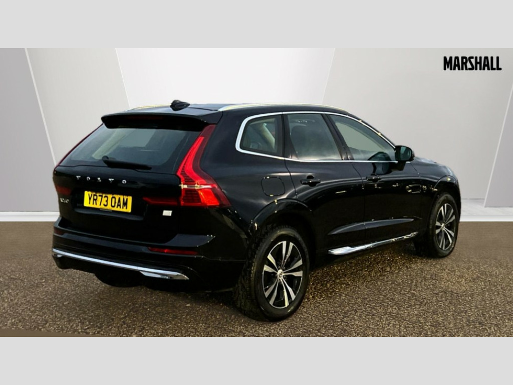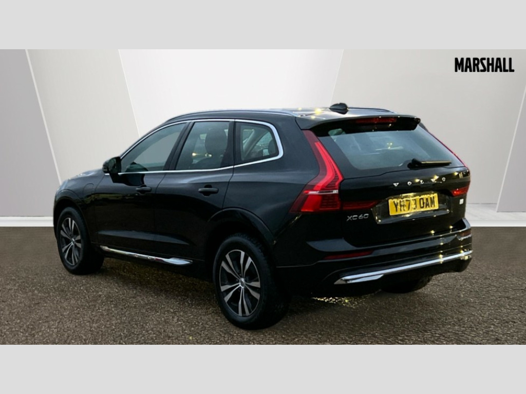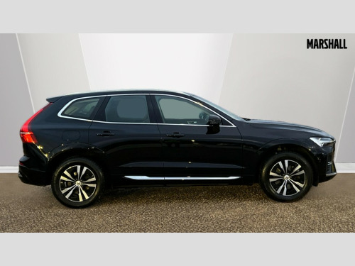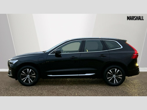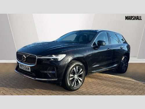 Volvo XC60 2.0 T6 [350] RC PHEV Core Bright 5dr AWD Gtron 12.3" Progressive Driver Display, 9" centre console touch screen, Adjustable steering wheel force, Bluetooth handsfree system, Drive mode settings, Driver alert control with lane keeping aid, Emergency services call system, Front and rear park assist, Google Automotive Services, Oncoming Lane Mitigation, Power tailgate, Rear park assist camera, Service interval indicator, Speed limiter, Speed sensitive steering, Trip computer, Volvo on call with App, Wireless/Inductive Mobile Phone Charging, 3.7 kW monophase on board charger, 7m 10amp Charge Cable with 3 Pin Plug and 7m 1-Phase 16amp Type 2 / Mode 3 Charge Cable, 8 speed automatic transmission with start/stop + manual change functions, Dynamic chassis, Electric rear axle drive, Recharging port located in nearside front wing, DAB Digital radio, Fresh air subwoofer, High performance sound, connected service booking, 2x USB Type A in front and 2x USB Type C in rear, 10 speakers/220W output, Low speed exterior sound speaker, Steering wheel remote infotainment controls, Adaptive brake lights with high level LED brake lights, Auto dimming interior + exterior mirrors, Automatic headlight levelling system, Automatic LED Headlights + Active high beam incorporating daytime running lights, Chrome front and rear bumper decoratives, Chrome lower side moulding trim with Recharge logo, Chrome window surround, Colour co-ordinated door mirrors, Electric adjustable/heated/auto power folding door mirrors, Electric front+rear windows, High gloss black grille with chrome inserts, Home safe and approach lighting, Integrated roof rails in Chrome, Power glass tilt and slide panoramic sunroof with sun curtain, Rain sensor with automatic windscreen wiper activation, Rear side wing doors, Rear wiper, Roof antenna, Roof spoiler, Tinted windscreen, Visible VIN plate, 12V socket in front tunnel console and luggage compartment, 2 zone electronic climate control with Clean zone air quality system and pollen filter, 3 seat bench in 2nd row, A-pillar parking ticket holder, B Pillar ventilation, Blond headlining, Bright metal luggage threshold, Centre console cupholders and storage, Charcoal floor mats, Front and rear courtesy lights, Front cupholder illumination, Front footwell illumination, Front reading lights, Glovebox compartment with illumination, Head restraints for all seats, Heated front seats, Height/reach adjustable steering column, Illuminated luggage compartment, Illuminated vanity mirrors + ticket holder, ISOFIX attachment on outer rear seats, Leather upholstery, Load cover, Load protection net, Power passenger seat with lumbar support, Rear armrest with cupholder, Rear seat concealed storage, Recharge aluminium tread plates, Single front passenger seat, Synthetic leather sport gear knob, Underfloor stowage compartment, Versatile split folding rear seat - 60/40, 5 three point seatbelts, City safety with steering support with Pedestrian + cyclist + large animal detection + front collision warning with full auto brake, Drivers knee airbag, Dual stage driver/passenger airbags, Electronic parking brake with auto hold, First aid kit, Front seats SIPS airbags, Hill descent control - Off-road drive mode, Hill start assist, IC (Inflatable Curtains) - Full Length, Passenger airbag cut-off device, Power child locks on rear doors, Road sign information display, Run off Road Mitigation, Run off Road Protection, Seatbelt reminder and pretensioners, SIPS (Side Impact Protection System), Slippery road and hazard light alert, Stability and Traction Control with Spin control, Engine Drag Control and Corner Traction Control, Tyre pressure monitoring system, Vehicle deceleration control with Anti-lock Brake System, Electronic Brake Distribution and Emergency Brake Assist, Warning triangle, WHIPS whiplash protection system - front, Anti-theft alarm including immobiliser/volume sensor + level sensor, Care key with user defined top speed, Key integrated remote control central locking + fuel flap with deadlocking system and auto open/close power windows, Keyless Start, Locking wheel nuts, Private locking for tailgate, Tyre sealant kit + 12v compressor