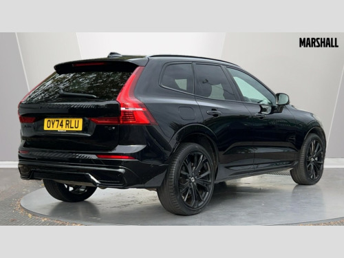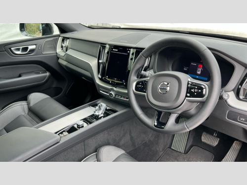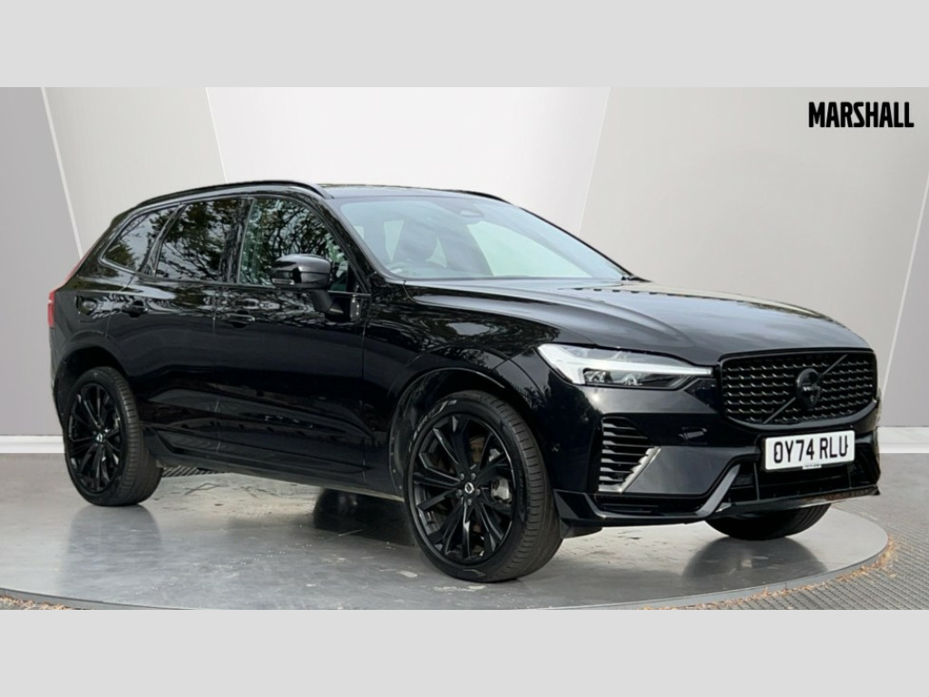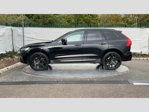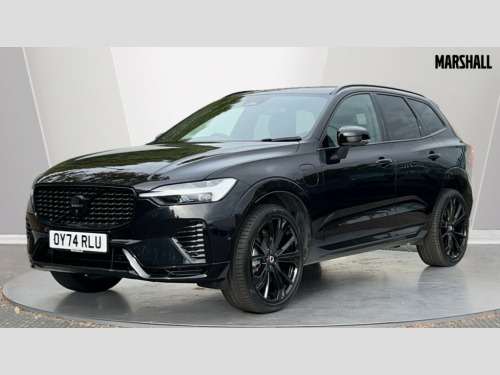 Volvo XC60 2.0 T6 350 RC PHEV Plus Black Ed 5dr AWD Gtron 12.3" Progressive Driver Display, 360 degree surround view parking camera with side proximity sensors, 9" centre console touch screen, Adjustable steering wheel force, Apple carplay (wired), Bluetooth handsfree system, Drive mode settings, Driver alert control with lane keeping aid, Driver assistance (pilot assist and adaptive cruise control), Emergency services call system, Front and rear park assist, Google Automotive Services, Oncoming Lane Mitigation, PAS, Power operated tailgate with handsfree opening and closing, Service interval indicator, Speed limiter, Speed sensitive steering, Trip computer, Volvo on call with App, Wireless/Inductive Mobile Phone Charging, 2 phase on board charger 6.4kW (home charging limited to 3.7kW), 7m 10amp charge cable with 3 pin plug and 6m 3 phase 16amp type 2/mode 3 charge cable, 8 speed automatic transmission with start/stop + manual change functions, Dynamic chassis, Electric rear axle drive, Recharging port located in nearside front wing, DAB Digital radio, Low speed exterior sound speaker, Premium Sound by Harman Kardon, dirac unison, dolby pro logic II surround sound, 13 speakers/600W output and fresh air subwoofer, Steering wheel remote infotainment controls, Adaptive brake lights with high level LED brake lights, Auto dimming interior + exterior mirrors, Automatic headlight levelling system, Automatic LED Headlights + Active high beam incorporating daytime running lights, Dark tinted windows for rear side windows and cargo area, Electric adjustable/heated/auto power folding door mirrors, Electric front+rear windows, Heated front windscreen, High gloss black door mirrors and window surround, High gloss black front and rear bumper decoratives, High gloss black mesh front grille, Surround, Strikethrough and Ironmark, High gloss black rear model, engine and volvo logo badges, Home safe and approach lighting, Integrated roof rails in high gloss black, Metallic paint, Power glass tilt and slide panoramic sunroof with sun curtain, Puddle lights, Rain sensor with automatic windscreen wiper activation, Rear side wing doors, Rear wiper, Roof antenna, Roof spoiler, Tinted windscreen, Visible VIN plate, 12V socket in front tunnel console and luggage compartment, 2 zone electronic climate control with Clean zone air quality system and pollen filter, 3 seat bench in 2nd row, 3 Spoke tailored steering wheel with chrome trim, A-pillar parking ticket holder, Air purifier particulate matter (PM) 2.5 filter, B Pillar ventilation, Bright metal luggage threshold, Centre console cupholders and storage, Charcoal floor mats, Charcoal headlining, Contour sports seats with nappa soft leather/textile upholstery, Front and rear courtesy lights, Front and rear door pocket illumination, Front cupholder illumination, Front footwell illumination, Front reading lights, Front seat cushion extensions, Glovebox compartment with illumination, Head restraints for all seats, Heated front seats, Heated rear seats outer positions, Heated steering wheel, Height/reach adjustable steering column, Illuminated luggage compartment, Illuminated vanity mirrors + ticket holder, ISOFIX attachment on outer rear seats, Load cover, Load protection net, Multi directional lumbar support, Power driver seat with memory + exterior mirrors memory, Power height adjustable passenger seat, Rear armrest with cupholder, Rear footwell and front and rear side step illumination, Rear seat concealed storage, Recharge aluminium tread plates, Single front passenger seat, Tailgate illumination and ambient door lighting, Underfloor stowage compartment, Versatile split folding rear seat - 60/40, 5 three point seatbelts, City safety with steering support with Pedestrian + cyclist + front collision warning with full auto brake and rear auto brake, Drivers knee airbag, Dual stage driver/passenger airbags, Electronic parking brake with auto hold, First aid kit, Front seats SIPS airbags, Hill descent control - Off-road drive mode, Hill start assist, IC (Inflatable Curtains) - Full Length, Passenger airbag cut-off device, Power child locks on rear doors, Road sign information display, Run off Road Mitigation, Run off Road Protection, Seatbelt reminder and pretensioners, SIPS (Side Impact Protection System), Slippery road and hazard light alert, Stability and Traction Control with Spin control, Engine Drag Control and Corner Traction Control, Tyre pressure monitoring system, Vehicle deceleration control with Anti-lock Brake System, Electronic Brake Distribution and Emergency Brake Assist, Warning triangle, WHIPS whiplash protection system - front, Anti-theft alarm including immobiliser/volume sensor + level sensor, Key integrated remote control central locking + fuel flap with deadlocking system and auto open/close power windows, Keyless Drive (includes Keyless Entry and Keyless Start), Locking wheel nuts, Private locking for tailgate, 21" 5 Double spoke high gloss black alloy wheels, Tyre sealant kit + 12v compressor