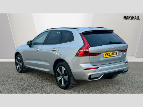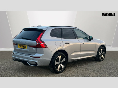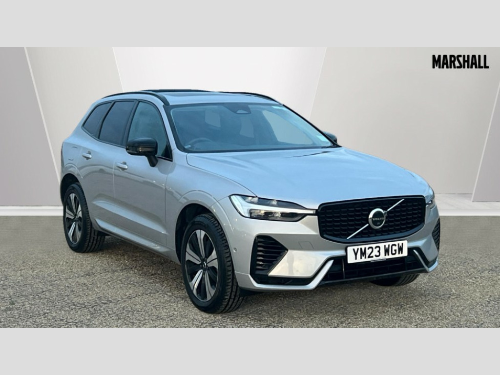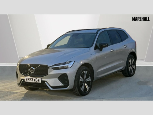 Volvo XC60 2.0 T6 [350] RC PHEV Plus Dark 5dr AWD Geartronic 12.3" Progressive Driver Display, 360 degree surround view parking camera with side proximity sensors, 9" centre console touch screen, Adjustable steering wheel force, Apple carplay (wired), Bluetooth handsfree system, Drive mode settings, Driver alert control with lane keeping aid, Driver assistance (pilot assist and adaptive cruise control), Emergency services call system, Front and rear park assist, Google Automotive Services, Oncoming Lane Mitigation, PAS, Service interval indicator, Speed limiter, Speed sensitive steering, Trip computer, Volvo on call with App, Wireless/Inductive Mobile Phone Charging, 3.7 kW monophase on board charger, 7m 10amp charge cable with 3 pin plug and 6m 3 phase 16amp type 2/mode 3 charge cable, 8 speed automatic transmission with start/stop + manual change functions, Dynamic chassis, Electric rear axle drive, Recharging port located in nearside front wing, DAB Digital radio, Low speed exterior sound speaker, Premium Sound by Harman Kardon, dirac unison, dolby pro logic II surround sound, 13 speakers/600W output and fresh air subwoofer, Steering wheel remote infotainment controls, Adaptive brake lights with high level LED brake lights, Auto dimming interior + exterior mirrors, Automatic headlight levelling system, Automatic LED Headlights + Active high beam incorporating daytime running lights, Electric adjustable/heated/auto power folding door mirrors, Electric front+rear windows, Heated front windscreen, High gloss black door mirrors and window surround, High gloss black front and rear bumper decoratives, High gloss black mesh front grille with high gloss black surround, Home safe and approach lighting, Integrated roof rails in high gloss black, Power glass tilt and slide panoramic sunroof with sun curtain, Puddle lights, Rain sensor with automatic windscreen wiper activation, Rear side wing doors, Rear wiper, Roof antenna, Roof spoiler, Tinted windscreen, Visible VIN plate, 12V socket in front tunnel console and luggage compartment, 2 zone electronic climate control with Clean zone air quality system and pollen filter, 3 seat bench in 2nd row, A-pillar parking ticket holder, Air purifier particulate matter (PM) 2.5 filter, B Pillar ventilation, Bright metal luggage threshold, Centre console cupholders and storage, Charcoal floor mats, Front and rear courtesy lights, Front and rear door pocket illumination, Front cupholder illumination, Front footwell illumination, Front reading lights, Front seat cushion extensions, Glovebox compartment with illumination, Head restraints for all seats, Heated front seats, Heated steering wheel, Height/reach adjustable steering column, Illuminated luggage compartment, Illuminated vanity mirrors + ticket holder, ISOFIX attachment on outer rear seats, Load cover, Load protection net, Multi directional lumbar support, Power driver seat with memory + exterior mirrors memory, Power height adjustable passenger seat, Rear armrest with cupholder, Rear footwell and front and rear side step illumination, Rear seat concealed storage, Recharge aluminium tread plates, Single front passenger seat, Tailgate illumination and ambient door lighting, Underfloor stowage compartment, Versatile split folding rear seat - 60/40, 5 three point seatbelts, City safety with steering support with Pedestrian + cyclist + front collision warning with full auto brake and rear auto brake, Drivers knee airbag, Dual stage driver/passenger airbags, Electronic parking brake with auto hold, First aid kit, Front seats SIPS airbags, Hill descent control - Off-road drive mode, Hill start assist, IC (Inflatable Curtains) - Full Length, Passenger airbag cut-off device, Power child locks on rear doors, Road sign information display, Run off Road Mitigation, Run off Road Protection, Seatbelt reminder and pretensioners, SIPS (Side Impact Protection System), Slippery road and hazard light alert, Stability and Traction Control with Spin control, Engine Drag Control and Corner Traction Control, Tyre pressure monitoring system, Vehicle deceleration control with Anti-lock Brake System, Electronic Brake Distribution and Emergency Brake Assist, Warning triangle, WHIPS whiplash protection system - front, Anti-theft alarm including immobiliser/volume sensor + level sensor, Care key with user defined top speed, Key integrated remote control central locking + fuel flap with deadlocking system and auto open/close power windows, Keyless Drive (includes Keyless Entry and Keyless Start) with Handsfree Tailgate Opening/Closing, Locking wheel nuts, Private locking for tailgate, Tyre sealant kit + 12v compressor