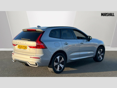 Volvo XC60 2.0 T6 [350] RC PHEV Plus Dark 5dr AWD Geartronic 12.3" Progressive Driver Display, 360 degree surround view parking camera with side proximity sensors, 9" centre console touch screen, Adjustable steering wheel force, Apple carplay (wired), Bluetooth handsfree system, Drive mode settings, Driver alert control with lane keeping aid, Driver assistance (pilot assist and adaptive cruise control), Emergency services call system, Front and rear park assist, Google Automotive Services, Oncoming Lane Mitigation, PAS, Service interval indicator, Speed limiter, Speed sensitive steering, Trip computer, Volvo on call with App, Wireless/Inductive Mobile Phone Charging, 3.7 kW monophase on board charger, 7m 10amp charge cable with 3 pin plug and 6m 3 phase 16amp type 2/mode 3 charge cable, 8 speed automatic transmission with start/stop + manual change functions, Dynamic chassis, Electric rear axle drive, Recharging port located in nearside front wing, DAB Digital radio, Low speed exterior sound speaker, Premium Sound by Harman Kardon, dirac unison, dolby pro logic II surround sound, 13 speakers/600W output and fresh air subwoofer, Steering wheel remote infotainment controls, Adaptive brake lights with high level LED brake lights, Auto dimming interior + exterior mirrors, Automatic headlight levelling system, Automatic LED Headlights + Active high beam incorporating daytime running lights, Electric adjustable/heated/auto power folding door mirrors, Electric front+rear windows, Heated front windscreen, High gloss black door mirrors and window surround, High gloss black front and rear bumper decoratives, High gloss black mesh front grille with high gloss black surround, Home safe and approach lighting, Integrated roof rails in high gloss black, Power glass tilt and slide panoramic sunroof with sun curtain, Puddle lights, Rain sensor with automatic windscreen wiper activation, Rear side wing doors, Rear wiper, Roof antenna, Roof spoiler, Tinted windscreen, Visible VIN plate, 12V socket in front tunnel console and luggage compartment, 2 zone electronic climate control with Clean zone air quality system and pollen filter, 3 seat bench in 2nd row, A-pillar parking ticket holder, Air purifier particulate matter (PM) 2.5 filter, B Pillar ventilation, Bright metal luggage threshold, Centre console cupholders and storage, Charcoal floor mats, Front and rear courtesy lights, Front and rear door pocket illumination, Front cupholder illumination, Front footwell illumination, Front reading lights, Front seat cushion extensions, Glovebox compartment with illumination, Head restraints for all seats, Heated front seats, Heated steering wheel, Height/reach adjustable steering column, Illuminated luggage compartment, Illuminated vanity mirrors + ticket holder, ISOFIX attachment on outer rear seats, Load cover, Load protection net, Multi directional lumbar support, Power driver seat with memory + exterior mirrors memory, Power height adjustable passenger seat, Rear armrest with cupholder, Rear footwell and front and rear side step illumination, Rear seat concealed storage, Recharge aluminium tread plates, Single front passenger seat, Tailgate illumination and ambient door lighting, Underfloor stowage compartment, Versatile split folding rear seat - 60/40, 5 three point seatbelts, City safety with steering support with Pedestrian + cyclist + front collision warning with full auto brake and rear auto brake, Drivers knee airbag, Dual stage driver/passenger airbags, Electronic parking brake with auto hold, First aid kit, Front seats SIPS airbags, Hill descent control - Off-road drive mode, Hill start assist, IC (Inflatable Curtains) - Full Length, Passenger airbag cut-off device, Power child locks on rear doors, Road sign information display, Run off Road Mitigation, Run off Road Protection, Seatbelt reminder and pretensioners, SIPS (Side Impact Protection System), Slippery road and hazard light alert, Stability and Traction Control with Spin control, Engine Drag Control and Corner Traction Control, Tyre pressure monitoring system, Vehicle deceleration control with Anti-lock Brake System, Electronic Brake Distribution and Emergency Brake Assist, Warning triangle, WHIPS whiplash protection system - front, Anti-theft alarm including immobiliser/volume sensor + level sensor, Care key with user defined top speed, Key integrated remote control central locking + fuel flap with deadlocking system and auto open/close power windows, Keyless Drive (includes Keyless Entry and Keyless Start) with Handsfree Tailgate Opening/Closing, Locking wheel nuts, Private locking for tailgate, Tyre sealant kit + 12v compressor