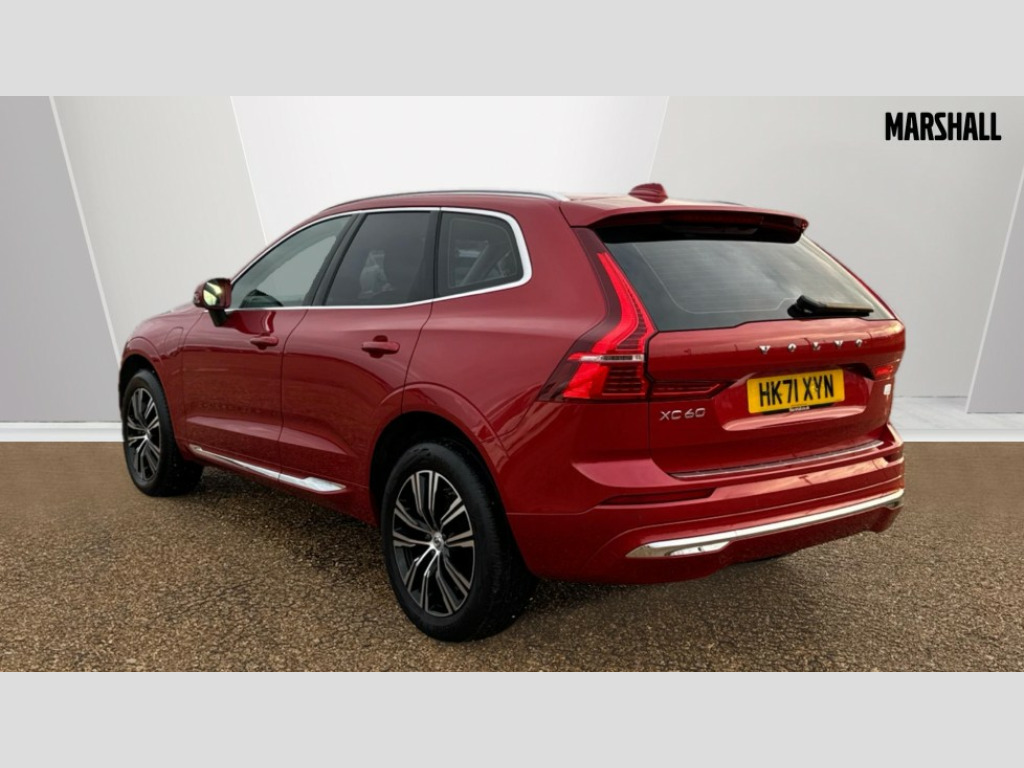 Volvo XC60 2.0 T6 Recharge PHEV Inscription 5dr AWD Auto 12.3" Active TFT crystal driver's instrument display, 9" centre console touch screen, Adjustable steering wheel force, Bluetooth handsfree system, Drive mode selector, Driver alert control with lane keeping aid, Emergency services call system, Front and rear park assist, Google Automotive Services, Oncoming Lane Mitigation, Service interval indicator, Speed limiter, Speed sensitive steering, Trip computer, Volvo on call with App, Wireless apple carplay, Wireless/Inductive Mobile Phone Charging, 7m 10amp Charge Cable with 3 Pin Plug and 7m 1-Phase 16amp Type 2 / Mode 3 Charge Cable, 8 speed automatic transmission with start/stop + manual change functions, Dynamic chassis, Electric rear axle drive, Recharging port located in nearside front wing, DAB Digital radio, Fresh air subwoofer, Adaptive brake lights with high level LED brake lights, Auto dimming interior + exterior mirrors, Automatic headlight levelling system, Automatic LED Headlights + Active high beam incorporating daytime running lights, Chrome deco lower front bumper, Chrome lower side moulding trim with Recharge logo, Chrome window surround, Colour co-ordinated door mirrors, Electric adjustable/heated/auto power folding door mirrors, Electric front+rear windows, High gloss black grille with chrome inserts, Home safe and approach lighting, Integrated roof rails in Chrome, Power glass tilt and slide panoramic sunroof with sun curtain, Puddle lights, Rain sensor with automatic windscreen wiper activation, Rear Bumper Chrome Insert, Rear side wing doors, Rear wiper, Roof antenna, Roof spoiler, Tinted windscreen, Visible VIN plate, 12V socket in front tunnel console and luggage compartment, 2 zone electronic climate control with Clean zone air quality system and pollen filter, 3 seat bench in 2nd row, A-pillar parking ticket holder, B Pillar ventilation, Bright metal luggage threshold, Centre armrest storage illumination, Centre console cupholders and storage, Floor mats, Front and rear door pocket and front cupholder illumination, Front footwell and side step illumination, Front reading lights, Front seat cushion extensions, Head restraints for all seats, Heated front seats, Height/reach adjustable steering column, High gloss black steering wheel remote infotainment controls, Illuminated glovebox, Illuminated luggage compartment, Illuminated vanity mirrors + ticket holder, Load cover, Load protection net, Multi directional lumbar support, Multicolour theatre lights, Orrefors Crystal gear lever knob, Rear armrest with cupholder, Rear footwell and side step illumination, Rear seat concealed storage, Recharge aluminium tread plates, Single front passenger seat, Tailgate illumination and ambient door lighting, Underfloor stowage compartment, Versatile split folding rear seat - 60/40, Seat pack - XC60 R-Design Pro/Inscription Pro, 5 three point seatbelts, City safety with steering support with Pedestrian + cyclist + large animal detection + front collision warning with full auto brake, Drivers knee airbag, Dual stage driver/passenger airbags, Electronic parking brake with auto hold, First aid kit, Hill descent control, Hill start assist, IC (Inflatable Curtains) - Full Length, Mechanical child locks on rear doors, Passenger airbag cut-off device, Road sign information display, Run off Road Mitigation, Run off Road Protection, Seatbelt reminder and pretensioners, SIPS (Side Impact Protection System), SIPS airbags, Slippery road and hazard light alert, Stability and Traction Control with Spin control, Engine Drag Control and Corner Traction Control, Tyre pressure monitoring system, Vehicle deceleration control with Anti-lock Brake System, Electronic Brake Distribution and Emergency Brake Assist, Warning triangle, WHIPS whiplash protection system - front, Anti-theft alarm including immobiliser/volume sensor + level sensor, Care key with user defined top speed, Key integrated remote control central locking + fuel flap with deadlocking system and auto open/close power windows, Keyless Drive (includes Keyless Entry and Keyless Start) with Handsfree Tailgate Opening/Closing, Locking wheel nuts, Private locking for tailgate, Tailored instrument panel with contrast stitching, Tyre sealant kit + 12v compressor