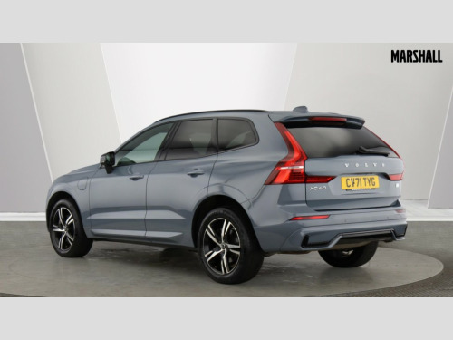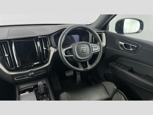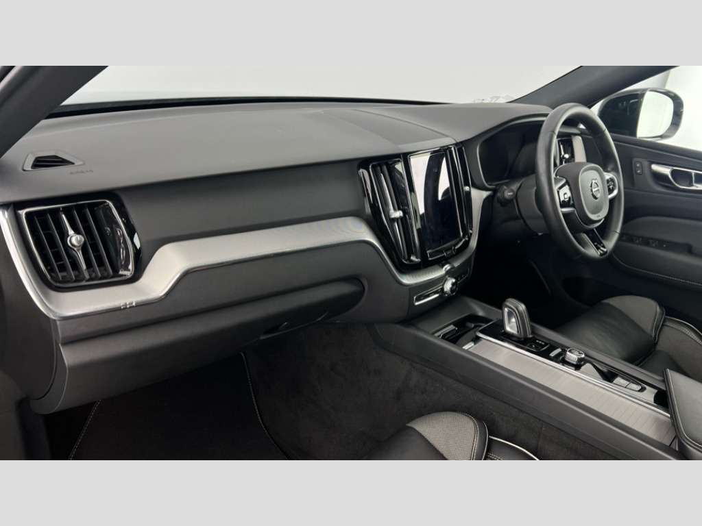 Volvo XC60 2.0 T6 Recharge PHEV R DESIGN 5dr AWD Auto 12.3" Active TFT crystal driver's instrument display, 9" centre console touch screen, Adjustable steering wheel force, Bluetooth handsfree system, Drive mode selector, Driver alert control with lane keeping aid, Emergency services call system, Front and rear park assist, Google Automotive Services, Oncoming Lane Mitigation, Service interval indicator, Speed limiter, Speed sensitive steering, Trip computer, Volvo on call with App, Wireless apple carplay, Wireless/Inductive Mobile Phone Charging, 7m 10amp Charge Cable with 3 Pin Plug and 7m 1-Phase 16amp Type 2 / Mode 3 Charge Cable, 8 speed automatic transmission with start/stop + manual change functions, Dynamic chassis, Electric rear axle drive, Recharging port located in nearside front wing, DAB Digital radio, Fresh air subwoofer, Adaptive brake lights with high level LED brake lights, Auto dimming interior + exterior mirrors, Automatic headlight levelling system, Automatic LED Headlights + Active high beam incorporating daytime running lights, Dark tinted windows for rear side windows and cargo area, Electric adjustable/heated/auto power folding door mirrors, Electric front+rear windows, High gloss black door mirrors, High gloss black mesh front grille with high gloss black surround, High gloss black rear bumper deco, High gloss black window frame surround, Home safe and approach lighting, Integrated roof rails in high gloss black, Power glass tilt and slide panoramic sunroof with sun curtain, Puddle lights, Rain sensor with automatic windscreen wiper activation, Rear side wing doors, Rear wiper, Roof antenna, Roof spoiler, Tinted windscreen, Visible VIN plate, 12V socket in front tunnel console and luggage compartment, 2 zone electronic climate control with Clean zone air quality system and pollen filter, 3 seat bench in 2nd row, 3 spoke tailored sports steering wheel, A-pillar parking ticket holder, B Pillar ventilation, Bright metal luggage threshold, Centre armrest storage illumination, Centre console cupholders and storage, Charcoal headlining, Contour sports seats with nappa leather/textile upholstery, Floor mats, Front and rear door pocket and front cupholder illumination, Front footwell and side step illumination, Front reading lights, Front seat cushion extensions, Head restraints for all seats, Heated front seats, Height/reach adjustable steering column, High gloss black steering wheel remote infotainment controls, Illuminated glovebox, Illuminated luggage compartment, Illuminated vanity mirrors + ticket holder, Load cover, Load protection net, Multi directional lumbar support, Multicolour theatre lights, Rear armrest with cupholder, Rear footwell and side step illumination, Rear seat concealed storage, Recharge aluminium tread plates, Single front passenger seat, Sport leather gear knob, Sport pedals, Tailgate illumination and ambient door lighting, Underfloor stowage compartment, Versatile split folding rear seat - 60/40, 5 three point seatbelts, City safety with steering support with Pedestrian + cyclist + large animal detection + front collision warning with full auto brake, Drivers knee airbag, Dual stage driver/passenger airbags, Electronic parking brake with auto hold, First aid kit, Hill descent control, Hill start assist, IC (Inflatable Curtains) - Full Length, Mechanical child locks on rear doors, Passenger airbag cut-off device, Road sign information display, Run off Road Mitigation, Run off Road Protection, Seatbelt reminder and pretensioners, SIPS (Side Impact Protection System), SIPS airbags, Slippery road and hazard light alert, Stability and Traction Control with Spin control, Engine Drag Control and Corner Traction Control, Tyre pressure monitoring system, Vehicle deceleration control with Anti-lock Brake System, Electronic Brake Distribution and Emergency Brake Assist, Warning triangle, WHIPS whiplash protection system - front, Anti-theft alarm including immobiliser/volume sensor + level sensor, Care key with user defined top speed, Key integrated remote control central locking + fuel flap with deadlocking system and auto open/close power windows, Keyless Drive (includes Keyless Entry and Keyless Start) with Handsfree Tailgate Opening/Closing, Locking wheel nuts, Private locking for tailgate, Metal mesh inlays, Tyre sealant kit + 12v compressor
