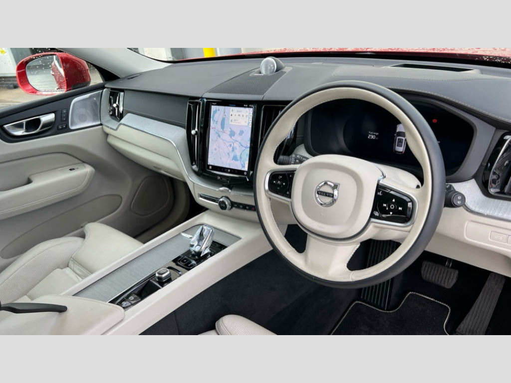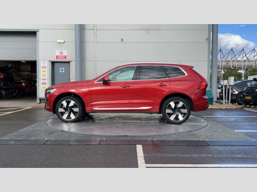 Volvo XC60 2.0 T8 [455] PHEV Ultra Dark 5dr AWD Geartronic 12.3" Progressive Driver Display, 360 degree surround view parking camera with side proximity sensors, 9" centre console touch screen, Adjustable steering wheel force, Apple carplay (wired), Bluetooth handsfree system, Drive mode settings, Driver alert control with lane keeping aid, Driver assistance (pilot assist and adaptive cruise control), Driver awareness - Blind spot information system with steer assist, cross traffic alert with autobrake and rear collision warning and mitigation, Emergency services call system, Front and rear park assist, Google Automotive Services, Intelligent speed assistance, Oncoming Lane Mitigation, PAS, Power operated tailgate with handsfree opening and closing, Service interval indicator, Speed limiter, Speed sensitive steering, Trip computer, Volvo cars services with app, Volvo on call with App, Wireless/Inductive Mobile Phone Charging, 2 phase on board charger 6.4kW (home charging limited to 3.7kW), 7m 10amp charge cable with 3 pin plug and 6m 3 phase 16amp type 2/mode 3 charge cable, 8 speed automatic transmission with start/stop + manual change functions, Active four-C chassis + four corner adaptive damper with electronic rear air suspension, Electric rear axle drive, Recharging port located in nearside front wing, DAB Digital radio, Low speed exterior sound speaker, Premium Sound by Bowers and Wilkins, dirac live, dolby pro logic II surround sound, 14 speakers/1100W output and subwoofer, Steering wheel remote infotainment controls, Active bending headlights with adaptive shadow technology, Adaptive brake lights with high level LED brake lights, Auto dimming interior + exterior mirrors, Automatic headlight levelling system, Automatic LED Headlights + Active high beam incorporating daytime running lights, Dark tinted windows for rear side windows and cargo area, Electric adjustable/heated/auto power folding door mirrors, Electric front+rear windows, Headlight cleaning system, High gloss black door mirrors and window surround, High gloss black front and rear bumper decoratives, High gloss black mesh front grille with high gloss black surround, Home safe and approach lighting, Integrated roof rails in high gloss black, Power glass tilt and slide panoramic sunroof with sun curtain, Puddle lights, Rain sensor with automatic windscreen wiper activation, Rear side wing doors, Rear wiper, Roof antenna, Roof spoiler, Tinted windscreen, Visible VIN plate, 12V socket in front tunnel console and luggage compartment, 2 zone electronic climate control with Clean zone air quality system and pollen filter, 3 seat bench in 2nd row, A-pillar parking ticket holder, Air purifier particulate matter (PM) 2.5 filter, B Pillar ventilation, Bright metal luggage scuff plate, Centre console cupholders and storage, Charcoal floor mats, Front and rear courtesy lights, Front and rear door pocket illumination, Front cupholder illumination, Front footwell illumination, Front reading lights, Front seat cushion extensions, Glovebox compartment with illumination, Head restraints for all seats, Heated front seats, Heated steering wheel, Height/reach adjustable steering column, Illuminated luggage compartment, Illuminated vanity mirrors + ticket holder, ISOFIX attachment on outer rear seats, Load cover, Load protection net, Multi directional lumbar support, Power driver seat with memory + exterior mirrors memory, Power folding rear headrests, Power passenger seat with memory, Rear armrest with cupholder, Rear footwell and front and rear side step illumination, Rear reading lights, Rear seat concealed storage, Recharge aluminium tread plates, Single front passenger seat, Tailgate illumination and ambient door lighting, Underfloor stowage compartment, Versatile split folding rear seat - 60/40, 5 three point seatbelts, City safety with steering support with Pedestrian + cyclist + front collision warning with full auto brake and rear auto brake, Drivers knee airbag, Dual stage driver/passenger airbags, Electronic parking brake with auto hold, First aid kit, Front seats SIPS airbags, Hill descent control - Off-road drive mode, Hill start assist, IC (Inflatable Curtains) - Full Length, Passenger airbag cut-off device, Power child locks on rear doors, Run off Road Mitigation, Run off Road Protection, Seatbelt reminder and pretensioners, SIPS (Side Impact Protection System), Slippery road and hazard light alert, Stability and Traction Control with Spin control, Engine Drag Control and Corner Traction Control, Tyre pressure monitoring system, Vehicle deceleration control with Anti-lock Brake System, Electronic Brake Distribution and Emergency Brake Assist, Warning triangle, WHIPS whiplash protection system - front, Anti-theft alarm including immobiliser/volume sensor + level sensor, Care key with user defined top speed, Key integrated remote control central locking + fuel flap with deadlocking system and auto open/close power windows, Keyless Drive (includes Keyless Entry and Keyless Start), Locking wheel nuts, Private locking for tailgate, Tailored instrument panel with contrast stitching, Tyre sealant kit + 12v compressor