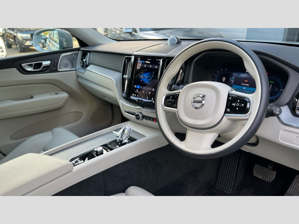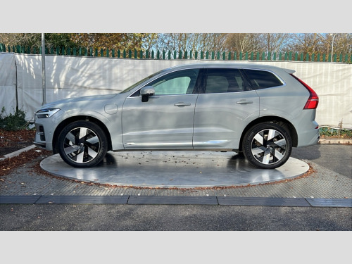 Volvo XC60 2.0 T8 [455] PHEV Ultra Dark 5dr AWD Geartronic 12.3" Progressive Driver Display, 360 degree surround view parking camera with side proximity sensors, 9" centre console touch screen, Adjustable steering wheel force, Apple carplay (wired), Bluetooth handsfree system, Drive mode settings, Driver alert control with lane keeping aid, Emergency services call system, Front and rear park assist, Google Automotive Services, Intelligent speed assistance, Oncoming Lane Mitigation, PAS, Power operated tailgate with handsfree opening and closing, Service interval indicator, Speed limiter, Speed sensitive steering, Trip computer, Volvo cars services with app, Volvo on call with App, Wireless/Inductive Mobile Phone Charging, 2 phase on board charger 6.4kW (home charging limited to 3.7kW), 7m 10amp charge cable with 3 pin plug and 6m 3 phase 16amp type 2/mode 3 charge cable, 8 speed automatic transmission with start/stop + manual change functions, Active four-C chassis + four corner adaptive damper with electronic rear air suspension, Electric rear axle drive, Recharging port located in nearside front wing, DAB Digital radio, Low speed exterior sound speaker, Premium Sound by Bowers and Wilkins, dirac live, dolby pro logic II surround sound, 14 speakers/1100W output and subwoofer, Steering wheel remote infotainment controls, Active bending headlights with adaptive shadow technology, Adaptive brake lights with high level LED brake lights, Auto dimming interior + exterior mirrors, Automatic headlight levelling system, Automatic LED Headlights + Active high beam incorporating daytime running lights, Dark tinted windows for rear side windows and cargo area, Electric adjustable/heated/auto power folding door mirrors, Electric front+rear windows, Headlight cleaning system, High gloss black door mirrors and window surround, High gloss black front and rear bumper decoratives, High gloss black mesh front grille with high gloss black surround, Home safe and approach lighting, Integrated roof rails in high gloss black, Power glass tilt and slide panoramic sunroof with sun curtain, Puddle lights, Rain sensor with automatic windscreen wiper activation, Rear side wing doors, Rear wiper, Roof antenna, Roof spoiler, Tinted windscreen, Visible VIN plate, 12V socket in front tunnel console and luggage compartment, 2 zone electronic climate control with Clean zone air quality system and pollen filter, 3 seat bench in 2nd row, A-pillar parking ticket holder, Air purifier particulate matter (PM) 2.5 filter, B Pillar ventilation, Bright metal luggage scuff plate, Centre console cupholders and storage, Charcoal floor mats, Front and rear courtesy lights, Front and rear door pocket illumination, Front cupholder illumination, Front footwell illumination, Front reading lights, Front seat cushion extensions, Glovebox compartment with illumination, Head restraints for all seats, Heated front seats, Heated steering wheel, Height/reach adjustable steering column, Illuminated luggage compartment, Illuminated vanity mirrors + ticket holder, ISOFIX attachment on outer rear seats, Load cover, Load protection net, Multi directional lumbar support, Power driver seat with memory + exterior mirrors memory, Power folding rear headrests, Power passenger seat with memory, Rear armrest with cupholder, Rear footwell and front and rear side step illumination, Rear reading lights, Rear seat concealed storage, Recharge aluminium tread plates, Single front passenger seat, Tailgate illumination and ambient door lighting, Underfloor stowage compartment, Versatile split folding rear seat - 60/40, Driver assist pack with Driver awareness - XC60, 5 three point seatbelts, City safety with steering support with Pedestrian + cyclist + front collision warning with full auto brake and rear auto brake, Drivers knee airbag, Dual stage driver/passenger airbags, Electronic parking brake with auto hold, First aid kit, Front seats SIPS airbags, Hill descent control - Off-road drive mode, Hill start assist, IC (Inflatable Curtains) - Full Length, Passenger airbag cut-off device, Power child locks on rear doors, Run off Road Mitigation, Run off Road Protection, Seatbelt reminder and pretensioners, SIPS (Side Impact Protection System), Slippery road and hazard light alert, Stability and Traction Control with Spin control, Engine Drag Control and Corner Traction Control, Tyre pressure monitoring system, Vehicle deceleration control with Anti-lock Brake System, Electronic Brake Distribution and Emergency Brake Assist, Warning triangle, WHIPS whiplash protection system - front, Anti-theft alarm including immobiliser/volume sensor + level sensor, Care key with user defined top speed, Key integrated remote control central locking + fuel flap with deadlocking system and auto open/close power windows, Keyless Drive (includes Keyless Entry and Keyless Start), Locking wheel nuts, Private locking for tailgate, Tailored instrument panel with contrast stitching, Tyre sealant kit + 12v compressor