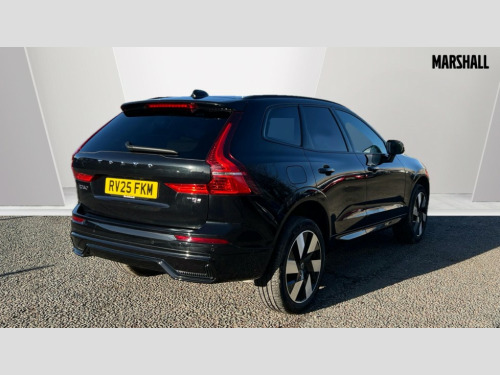 Volvo XC60 2.0 T8 [455] PHEV Ultra Dark 5dr AWD Geartronic 12.3" Progressive Driver Display, 360 degree surround view parking camera with side proximity sensors, 9" centre console touch screen, Adjustable steering wheel force, Apple carplay (wired), Bluetooth handsfree system, Drive mode settings, Driver alert control with lane keeping aid, Emergency services call system, Front and rear park assist, Google Automotive Services, Intelligent speed assistance, Oncoming Lane Mitigation, PAS, Power operated tailgate with handsfree opening and closing, Service interval indicator, Speed limiter, Speed sensitive steering, Trip computer, Volvo cars services with app, Volvo on call with App, Wireless/Inductive Mobile Phone Charging, 2 phase on board charger 6.4kW (home charging limited to 3.7kW), 7m 10amp charge cable with 3 pin plug and 6m 3 phase 16amp type 2/mode 3 charge cable, 8 speed automatic transmission with start/stop + manual change functions, Active four-C chassis + four corner adaptive damper with electronic rear air suspension, Electric rear axle drive, Recharging port located in nearside front wing, DAB Digital radio, Low speed exterior sound speaker, Premium Sound by Bowers and Wilkins, dirac live, dolby pro logic II surround sound, 14 speakers/1100W output and subwoofer, Steering wheel remote infotainment controls, Active bending headlights with adaptive shadow technology, Adaptive brake lights with high level LED brake lights, Auto dimming interior + exterior mirrors, Automatic headlight levelling system, Automatic LED Headlights + Active high beam incorporating daytime running lights, Dark tinted windows for rear side windows and cargo area, Electric adjustable/heated/auto power folding door mirrors, Electric front+rear windows, Headlight cleaning system, High gloss black door mirrors and window surround, High gloss black front and rear bumper decoratives, High gloss black mesh front grille with high gloss black surround, Home safe and approach lighting, Integrated roof rails in high gloss black, Power glass tilt and slide panoramic sunroof with sun curtain, Puddle lights, Rain sensor with automatic windscreen wiper activation, Rear side wing doors, Rear wiper, Roof antenna, Roof spoiler, Tinted windscreen, Visible VIN plate, 12V socket in front tunnel console and luggage compartment, 2 zone electronic climate control with Clean zone air quality system and pollen filter, 3 seat bench in 2nd row, A-pillar parking ticket holder, Air purifier particulate matter (PM) 2.5 filter, B Pillar ventilation, Bright metal luggage scuff plate, Centre console cupholders and storage, Charcoal floor mats, Front and rear courtesy lights, Front and rear door pocket illumination, Front cupholder illumination, Front footwell illumination, Front reading lights, Front seat cushion extensions, Glovebox compartment with illumination, Head restraints for all seats, Heated front seats, Heated steering wheel, Height/reach adjustable steering column, Illuminated luggage compartment, Illuminated vanity mirrors + ticket holder, ISOFIX attachment on outer rear seats, Load cover, Load protection net, Multi directional lumbar support, Power driver seat with memory + exterior mirrors memory, Power folding rear headrests, Power passenger seat with memory, Rear armrest with cupholder, Rear footwell and front and rear side step illumination, Rear reading lights, Rear seat concealed storage, Recharge aluminium tread plates, Single front passenger seat, Tailgate illumination and ambient door lighting, Underfloor stowage compartment, Versatile split folding rear seat - 60/40, Driver assist pack with Driver awareness - XC60, 5 three point seatbelts, City safety with steering support with Pedestrian + cyclist + front collision warning with full auto brake and rear auto brake, Drivers knee airbag, Dual stage driver/passenger airbags, Electronic parking brake with auto hold, First aid kit, Front seats SIPS airbags, Hill descent control - Off-road drive mode, Hill start assist, IC (Inflatable Curtains) - Full Length, Passenger airbag cut-off device, Power child locks on rear doors, Run off Road Mitigation, Run off Road Protection, Seatbelt reminder and pretensioners, SIPS (Side Impact Protection System), Slippery road and hazard light alert, Stability and Traction Control with Spin control, Engine Drag Control and Corner Traction Control, Tyre pressure monitoring system, Vehicle deceleration control with Anti-lock Brake System, Electronic Brake Distribution and Emergency Brake Assist, Warning triangle, WHIPS whiplash protection system - front, Anti-theft alarm including immobiliser/volume sensor + level sensor, Care key with user defined top speed, Key integrated remote control central locking + fuel flap with deadlocking system and auto open/close power windows, Keyless Drive (includes Keyless Entry and Keyless Start), Locking wheel nuts, Private locking for tailgate, Tailored instrument panel with contrast stitching, Tyre sealant kit + 12v compressor
