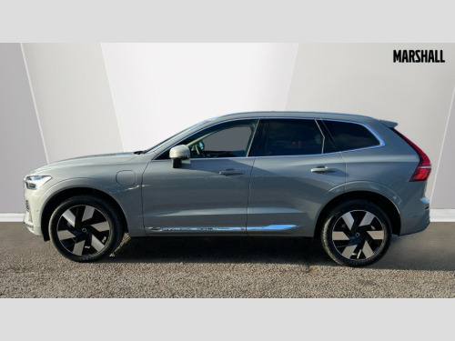 Volvo XC60 2.0 T8 [455] PHEV Ultra Dark 5dr AWD Geartronic 12.3" Progressive Driver Display, 360 degree surround view parking camera with side proximity sensors, 9" centre console touch screen, Adjustable steering wheel force, Apple carplay (wired), Bluetooth handsfree system, Drive mode settings, Driver alert control with lane keeping aid, Emergency services call system, Front and rear park assist, Google Automotive Services, Intelligent speed assistance, Oncoming Lane Mitigation, PAS, Power operated tailgate with handsfree opening and closing, Service interval indicator, Speed limiter, Speed sensitive steering, Trip computer, Volvo cars services with app, Volvo on call with App, Wireless/Inductive Mobile Phone Charging, 2 phase on board charger 6.4kW (home charging limited to 3.7kW), 7m 10amp charge cable with 3 pin plug and 6m 3 phase 16amp type 2/mode 3 charge cable, 8 speed automatic transmission with start/stop + manual change functions, Active four-C chassis + four corner adaptive damper with electronic rear air suspension, Electric rear axle drive, Recharging port located in nearside front wing, DAB Digital radio, Low speed exterior sound speaker, Premium Sound by Bowers and Wilkins, dirac live, dolby pro logic II surround sound, 14 speakers/1100W output and subwoofer, Steering wheel remote infotainment controls, Active bending headlights with adaptive shadow technology, Adaptive brake lights with high level LED brake lights, Auto dimming interior + exterior mirrors, Automatic headlight levelling system, Automatic LED Headlights + Active high beam incorporating daytime running lights, Dark tinted windows for rear side windows and cargo area, Electric adjustable/heated/auto power folding door mirrors, Electric front+rear windows, Headlight cleaning system, High gloss black door mirrors and window surround, High gloss black front and rear bumper decoratives, High gloss black mesh front grille with high gloss black surround, Home safe and approach lighting, Integrated roof rails in high gloss black, Power glass tilt and slide panoramic sunroof with sun curtain, Puddle lights, Rain sensor with automatic windscreen wiper activation, Rear side wing doors, Rear wiper, Roof antenna, Roof spoiler, Tinted windscreen, Visible VIN plate, 12V socket in front tunnel console and luggage compartment, 2 zone electronic climate control with Clean zone air quality system and pollen filter, 3 seat bench in 2nd row, A-pillar parking ticket holder, Air purifier particulate matter (PM) 2.5 filter, B Pillar ventilation, Bright metal luggage scuff plate, Centre console cupholders and storage, Charcoal floor mats, Front and rear courtesy lights, Front and rear door pocket illumination, Front cupholder illumination, Front footwell illumination, Front reading lights, Front seat cushion extensions, Glovebox compartment with illumination, Head restraints for all seats, Heated front seats, Heated steering wheel, Height/reach adjustable steering column, Illuminated luggage compartment, Illuminated vanity mirrors + ticket holder, ISOFIX attachment on outer rear seats, Load cover, Load protection net, Multi directional lumbar support, Power driver seat with memory + exterior mirrors memory, Power folding rear headrests, Power passenger seat with memory, Rear armrest with cupholder, Rear footwell and front and rear side step illumination, Rear reading lights, Rear seat concealed storage, Recharge aluminium tread plates, Single front passenger seat, Tailgate illumination and ambient door lighting, Underfloor stowage compartment, Versatile split folding rear seat - 60/40, Driver assist pack with Driver awareness - XC60, 5 three point seatbelts, City safety with steering support with Pedestrian + cyclist + front collision warning with full auto brake and rear auto brake, Drivers knee airbag, Dual stage driver/passenger airbags, Electronic parking brake with auto hold, First aid kit, Front seats SIPS airbags, Hill descent control - Off-road drive mode, Hill start assist, IC (Inflatable Curtains) - Full Length, Passenger airbag cut-off device, Power child locks on rear doors, Run off Road Mitigation, Run off Road Protection, Seatbelt reminder and pretensioners, SIPS (Side Impact Protection System), Slippery road and hazard light alert, Stability and Traction Control with Spin control, Engine Drag Control and Corner Traction Control, Tyre pressure monitoring system, Vehicle deceleration control with Anti-lock Brake System, Electronic Brake Distribution and Emergency Brake Assist, Warning triangle, WHIPS whiplash protection system - front, Anti-theft alarm including immobiliser/volume sensor + level sensor, Care key with user defined top speed, Key integrated remote control central locking + fuel flap with deadlocking system and auto open/close power windows, Keyless Drive (includes Keyless Entry and Keyless Start), Locking wheel nuts, Private locking for tailgate, Tailored instrument panel with contrast stitching, Tyre sealant kit + 12v compressor