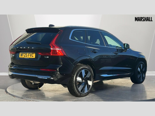 Volvo XC60 2.0 T8 [455] PHEV Ultra Dark 5dr AWD Geartronic 12.3" Progressive Driver Display, 360 degree surround view parking camera with side proximity sensors, 9" centre console touch screen, Adjustable steering wheel force, Apple carplay (wired), Bluetooth handsfree system, Drive mode settings, Driver alert control with lane keeping aid, Emergency services call system, Front and rear park assist, Google Automotive Services, Intelligent speed assistance, Oncoming Lane Mitigation, PAS, Power operated tailgate with handsfree opening and closing, Service interval indicator, Speed limiter, Speed sensitive steering, Trip computer, Volvo cars services with app, Volvo on call with App, Wireless/Inductive Mobile Phone Charging, 2 phase on board charger 6.4kW (home charging limited to 3.7kW), 7m 10amp charge cable with 3 pin plug and 6m 3 phase 16amp type 2/mode 3 charge cable, 8 speed automatic transmission with start/stop + manual change functions, Active four-C chassis + four corner adaptive damper with electronic rear air suspension, Electric rear axle drive, Recharging port located in nearside front wing, DAB Digital radio, Low speed exterior sound speaker, Premium Sound by Bowers and Wilkins, dirac live, dolby pro logic II surround sound, 14 speakers/1100W output and subwoofer, Steering wheel remote infotainment controls, Active bending headlights with adaptive shadow technology, Adaptive brake lights with high level LED brake lights, Auto dimming interior + exterior mirrors, Automatic headlight levelling system, Automatic LED Headlights + Active high beam incorporating daytime running lights, Dark tinted windows for rear side windows and cargo area, Electric adjustable/heated/auto power folding door mirrors, Electric front+rear windows, Headlight cleaning system, High gloss black door mirrors and window surround, High gloss black front and rear bumper decoratives, High gloss black mesh front grille with high gloss black surround, Home safe and approach lighting, Integrated roof rails in high gloss black, Power glass tilt and slide panoramic sunroof with sun curtain, Puddle lights, Rain sensor with automatic windscreen wiper activation, Rear side wing doors, Rear wiper, Roof antenna, Roof spoiler, Tinted windscreen, Visible VIN plate, 12V socket in front tunnel console and luggage compartment, 2 zone electronic climate control with Clean zone air quality system and pollen filter, 3 seat bench in 2nd row, A-pillar parking ticket holder, Air purifier particulate matter (PM) 2.5 filter, B Pillar ventilation, Bright metal luggage scuff plate, Centre console cupholders and storage, Charcoal floor mats, Front and rear courtesy lights, Front and rear door pocket illumination, Front cupholder illumination, Front footwell illumination, Front reading lights, Front seat cushion extensions, Glovebox compartment with illumination, Head restraints for all seats, Heated front seats, Heated steering wheel, Height/reach adjustable steering column, Illuminated luggage compartment, Illuminated vanity mirrors + ticket holder, ISOFIX attachment on outer rear seats, Load cover, Load protection net, Multi directional lumbar support, Power driver seat with memory + exterior mirrors memory, Power folding rear headrests, Power passenger seat with memory, Rear armrest with cupholder, Rear footwell and front and rear side step illumination, Rear reading lights, Rear seat concealed storage, Recharge aluminium tread plates, Single front passenger seat, Tailgate illumination and ambient door lighting, Underfloor stowage compartment, Versatile split folding rear seat - 60/40, Driver assist pack with Driver awareness - XC60, 5 three point seatbelts, City safety with steering support with Pedestrian + cyclist + front collision warning with full auto brake and rear auto brake, Drivers knee airbag, Dual stage driver/passenger airbags, Electronic parking brake with auto hold, First aid kit, Front seats SIPS airbags, Hill descent control - Off-road drive mode, Hill start assist, IC (Inflatable Curtains) - Full Length, Passenger airbag cut-off device, Power child locks on rear doors, Run off Road Mitigation, Run off Road Protection, Seatbelt reminder and pretensioners, SIPS (Side Impact Protection System), Slippery road and hazard light alert, Stability and Traction Control with Spin control, Engine Drag Control and Corner Traction Control, Tyre pressure monitoring system, Vehicle deceleration control with Anti-lock Brake System, Electronic Brake Distribution and Emergency Brake Assist, Warning triangle, WHIPS whiplash protection system - front, Anti-theft alarm including immobiliser/volume sensor + level sensor, Care key with user defined top speed, Key integrated remote control central locking + fuel flap with deadlocking system and auto open/close power windows, Keyless Drive (includes Keyless Entry and Keyless Start), Locking wheel nuts, Private locking for tailgate, Tailored instrument panel with contrast stitching, Tyre sealant kit + 12v compressor
