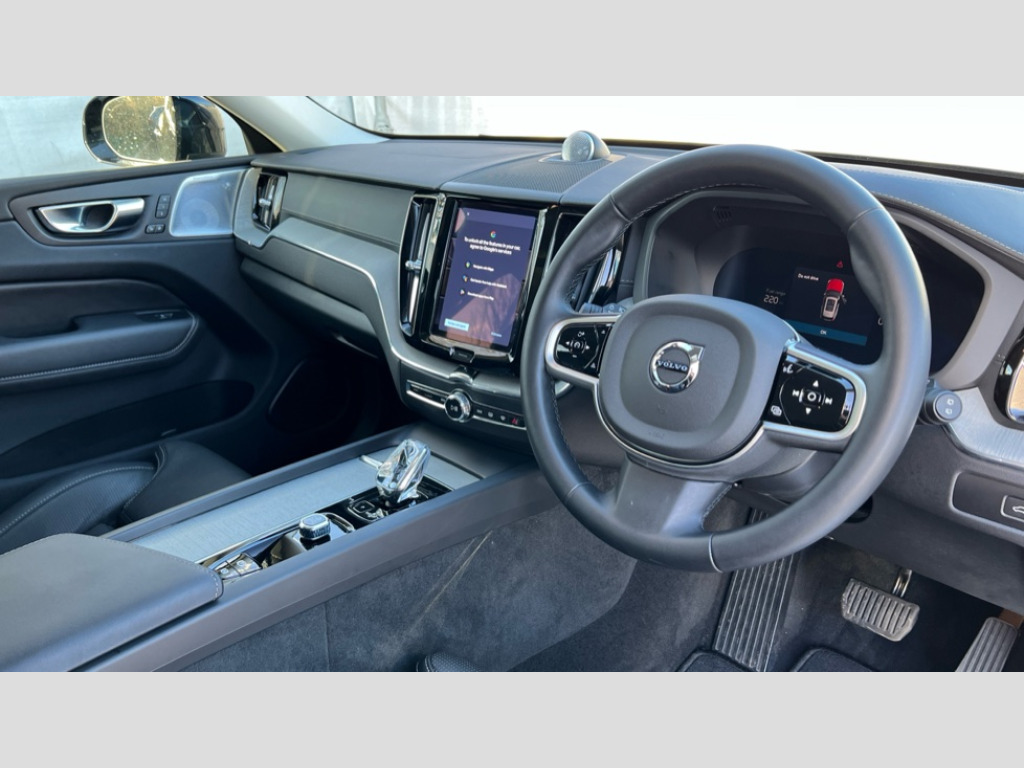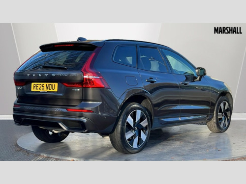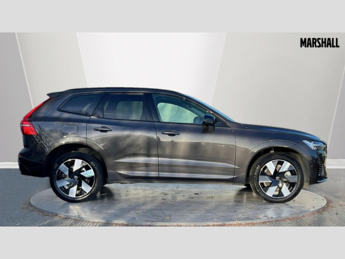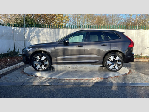 Volvo XC60 2.0 T8 [455] PHEV Ultra Dark 5dr AWD Geartronic 12.3" Progressive Driver Display, 360 degree surround view parking camera with side proximity sensors, 9" centre console touch screen, Adjustable steering wheel force, Apple carplay (wired), Bluetooth handsfree system, Drive mode settings, Driver alert control with lane keeping aid, Emergency services call system, Front and rear park assist, Google Automotive Services, Intelligent speed assistance, Oncoming Lane Mitigation, PAS, Power operated tailgate with handsfree opening and closing, Service interval indicator, Speed limiter, Speed sensitive steering, Trip computer, Volvo cars services with app, Volvo on call with App, Wireless/Inductive Mobile Phone Charging, 2 phase on board charger 6.4kW (home charging limited to 3.7kW), 7m 10amp charge cable with 3 pin plug and 6m 3 phase 16amp type 2/mode 3 charge cable, 8 speed automatic transmission with start/stop + manual change functions, Active four-C chassis + four corner adaptive damper with electronic rear air suspension, Electric rear axle drive, Recharging port located in nearside front wing, DAB Digital radio, Low speed exterior sound speaker, Premium Sound by Bowers and Wilkins, dirac live, dolby pro logic II surround sound, 14 speakers/1100W output and subwoofer, Steering wheel remote infotainment controls, Active bending headlights with adaptive shadow technology, Adaptive brake lights with high level LED brake lights, Auto dimming interior + exterior mirrors, Automatic headlight levelling system, Automatic LED Headlights + Active high beam incorporating daytime running lights, Dark tinted windows for rear side windows and cargo area, Electric adjustable/heated/auto power folding door mirrors, Electric front+rear windows, Headlight cleaning system, High gloss black door mirrors and window surround, High gloss black front and rear bumper decoratives, High gloss black mesh front grille with high gloss black surround, Home safe and approach lighting, Integrated roof rails in high gloss black, Power glass tilt and slide panoramic sunroof with sun curtain, Puddle lights, Rain sensor with automatic windscreen wiper activation, Rear side wing doors, Rear wiper, Roof antenna, Roof spoiler, Tinted windscreen, Visible VIN plate, 12V socket in front tunnel console and luggage compartment, 2 zone electronic climate control with Clean zone air quality system and pollen filter, 3 seat bench in 2nd row, A-pillar parking ticket holder, Air purifier particulate matter (PM) 2.5 filter, B Pillar ventilation, Bright metal luggage scuff plate, Centre console cupholders and storage, Charcoal floor mats, Front and rear courtesy lights, Front and rear door pocket illumination, Front cupholder illumination, Front footwell illumination, Front reading lights, Front seat cushion extensions, Glovebox compartment with illumination, Head restraints for all seats, Heated front seats, Heated steering wheel, Height/reach adjustable steering column, Illuminated luggage compartment, Illuminated vanity mirrors + ticket holder, ISOFIX attachment on outer rear seats, Load cover, Load protection net, Multi directional lumbar support, Power driver seat with memory + exterior mirrors memory, Power folding rear headrests, Power passenger seat with memory, Rear armrest with cupholder, Rear footwell and front and rear side step illumination, Rear reading lights, Rear seat concealed storage, Recharge aluminium tread plates, Single front passenger seat, Tailgate illumination and ambient door lighting, Underfloor stowage compartment, Versatile split folding rear seat - 60/40, Driver assist pack with Driver awareness - XC60, 5 three point seatbelts, City safety with steering support with Pedestrian + cyclist + front collision warning with full auto brake and rear auto brake, Drivers knee airbag, Dual stage driver/passenger airbags, Electronic parking brake with auto hold, First aid kit, Front seats SIPS airbags, Hill descent control - Off-road drive mode, Hill start assist, IC (Inflatable Curtains) - Full Length, Passenger airbag cut-off device, Power child locks on rear doors, Run off Road Mitigation, Run off Road Protection, Seatbelt reminder and pretensioners, SIPS (Side Impact Protection System), Slippery road and hazard light alert, Stability and Traction Control with Spin control, Engine Drag Control and Corner Traction Control, Tyre pressure monitoring system, Vehicle deceleration control with Anti-lock Brake System, Electronic Brake Distribution and Emergency Brake Assist, Warning triangle, WHIPS whiplash protection system - front, Anti-theft alarm including immobiliser/volume sensor + level sensor, Care key with user defined top speed, Key integrated remote control central locking + fuel flap with deadlocking system and auto open/close power windows, Keyless Drive (includes Keyless Entry and Keyless Start), Locking wheel nuts, Private locking for tailgate, Tailored instrument panel with contrast stitching, Tyre sealant kit + 12v compressor