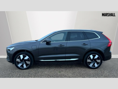 Volvo XC60 2.0 T8 [455] PHEV Ultra Dark 5dr AWD Geartronic 12.3" Progressive Driver Display, 360 degree surround view parking camera with side proximity sensors, 9" centre console touch screen, Adjustable steering wheel force, Apple carplay (wired), Bluetooth handsfree system, Drive mode settings, Driver alert control with lane keeping aid, Emergency services call system, Front and rear park assist, Google Automotive Services, Intelligent speed assistance, Oncoming Lane Mitigation, PAS, Power operated tailgate with handsfree opening and closing, Service interval indicator, Speed limiter, Speed sensitive steering, Trip computer, Volvo cars services with app, Volvo on call with App, Wireless/Inductive Mobile Phone Charging, 2 phase on board charger 6.4kW (home charging limited to 3.7kW), 7m 10amp charge cable with 3 pin plug and 6m 3 phase 16amp type 2/mode 3 charge cable, 8 speed automatic transmission with start/stop + manual change functions, Active four-C chassis + four corner adaptive damper with electronic rear air suspension, Electric rear axle drive, Recharging port located in nearside front wing, DAB Digital radio, Low speed exterior sound speaker, Premium Sound by Bowers and Wilkins, dirac live, dolby pro logic II surround sound, 14 speakers/1100W output and subwoofer, Steering wheel remote infotainment controls, Active bending headlights with adaptive shadow technology, Adaptive brake lights with high level LED brake lights, Auto dimming interior + exterior mirrors, Automatic headlight levelling system, Automatic LED Headlights + Active high beam incorporating daytime running lights, Dark tinted windows for rear side windows and cargo area, Electric adjustable/heated/auto power folding door mirrors, Electric front+rear windows, Headlight cleaning system, High gloss black door mirrors and window surround, High gloss black front and rear bumper decoratives, High gloss black mesh front grille with high gloss black surround, Home safe and approach lighting, Integrated roof rails in high gloss black, Power glass tilt and slide panoramic sunroof with sun curtain, Puddle lights, Rain sensor with automatic windscreen wiper activation, Rear side wing doors, Rear wiper, Roof antenna, Roof spoiler, Tinted windscreen, Visible VIN plate, 12V socket in front tunnel console and luggage compartment, 2 zone electronic climate control with Clean zone air quality system and pollen filter, 3 seat bench in 2nd row, A-pillar parking ticket holder, Air purifier particulate matter (PM) 2.5 filter, B Pillar ventilation, Bright metal luggage scuff plate, Centre console cupholders and storage, Charcoal floor mats, Front and rear courtesy lights, Front and rear door pocket illumination, Front cupholder illumination, Front footwell illumination, Front reading lights, Front seat cushion extensions, Glovebox compartment with illumination, Head restraints for all seats, Heated front seats, Heated steering wheel, Height/reach adjustable steering column, Illuminated luggage compartment, Illuminated vanity mirrors + ticket holder, ISOFIX attachment on outer rear seats, Load cover, Load protection net, Multi directional lumbar support, Power driver seat with memory + exterior mirrors memory, Power folding rear headrests, Power passenger seat with memory, Rear armrest with cupholder, Rear footwell and front and rear side step illumination, Rear reading lights, Rear seat concealed storage, Recharge aluminium tread plates, Single front passenger seat, Tailgate illumination and ambient door lighting, Underfloor stowage compartment, Versatile split folding rear seat - 60/40, Driver assist pack with Driver awareness - XC60, 5 three point seatbelts, City safety with steering support with Pedestrian + cyclist + front collision warning with full auto brake and rear auto brake, Drivers knee airbag, Dual stage driver/passenger airbags, Electronic parking brake with auto hold, First aid kit, Front seats SIPS airbags, Hill descent control - Off-road drive mode, Hill start assist, IC (Inflatable Curtains) - Full Length, Passenger airbag cut-off device, Power child locks on rear doors, Run off Road Mitigation, Run off Road Protection, Seatbelt reminder and pretensioners, SIPS (Side Impact Protection System), Slippery road and hazard light alert, Stability and Traction Control with Spin control, Engine Drag Control and Corner Traction Control, Tyre pressure monitoring system, Vehicle deceleration control with Anti-lock Brake System, Electronic Brake Distribution and Emergency Brake Assist, Warning triangle, WHIPS whiplash protection system - front, Anti-theft alarm including immobiliser/volume sensor + level sensor, Care key with user defined top speed, Key integrated remote control central locking + fuel flap with deadlocking system and auto open/close power windows, Keyless Drive (includes Keyless Entry and Keyless Start), Locking wheel nuts, Private locking for tailgate, Tailored instrument panel with contrast stitching, Tyre sealant kit + 12v compressor