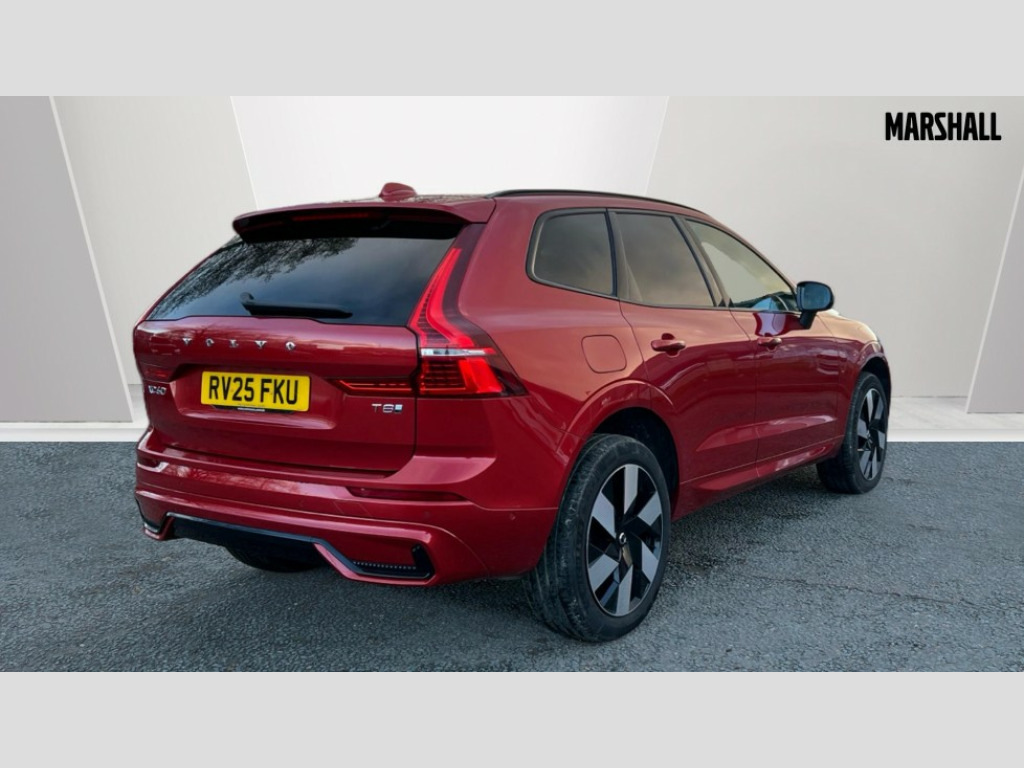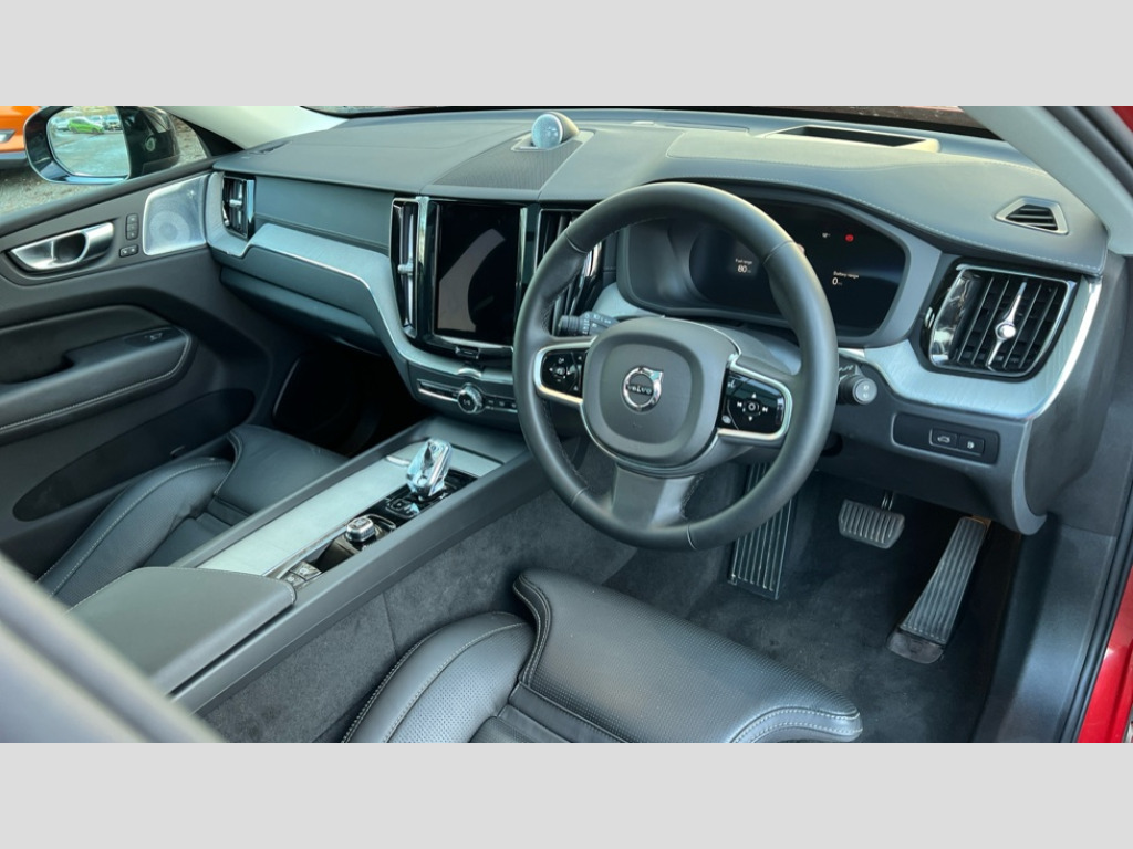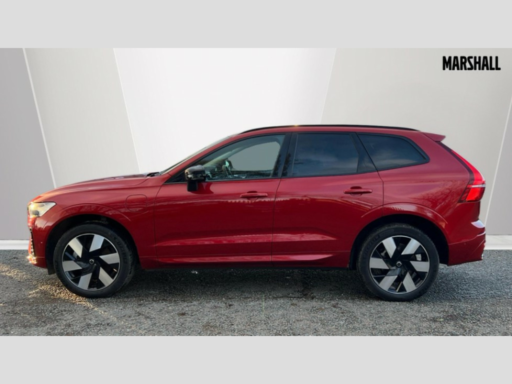 Volvo XC60 2.0 T8 [455] PHEV Ultra Dark 5dr AWD Geartronic 12.3" Progressive Driver Display, 360 degree surround view parking camera with side proximity sensors, 9" centre console touch screen, Adjustable steering wheel force, Apple carplay (wired), Bluetooth handsfree system, Drive mode settings, Driver alert control with lane keeping aid, Emergency services call system, Front and rear park assist, Google Automotive Services, Intelligent speed assistance, Oncoming Lane Mitigation, PAS, Power operated tailgate with handsfree opening and closing, Service interval indicator, Speed limiter, Speed sensitive steering, Trip computer, Volvo cars services with app, Volvo on call with App, Wireless/Inductive Mobile Phone Charging, 2 phase on board charger 6.4kW (home charging limited to 3.7kW), 7m 10amp charge cable with 3 pin plug and 6m 3 phase 16amp type 2/mode 3 charge cable, 8 speed automatic transmission with start/stop + manual change functions, Active four-C chassis + four corner adaptive damper with electronic rear air suspension, Electric rear axle drive, Recharging port located in nearside front wing, DAB Digital radio, Low speed exterior sound speaker, Premium Sound by Bowers and Wilkins, dirac live, dolby pro logic II surround sound, 14 speakers/1100W output and subwoofer, Steering wheel remote infotainment controls, Active bending headlights with adaptive shadow technology, Adaptive brake lights with high level LED brake lights, Auto dimming interior + exterior mirrors, Automatic headlight levelling system, Automatic LED Headlights + Active high beam incorporating daytime running lights, Dark tinted windows for rear side windows and cargo area, Electric adjustable/heated/auto power folding door mirrors, Electric front+rear windows, Headlight cleaning system, High gloss black door mirrors and window surround, High gloss black front and rear bumper decoratives, High gloss black mesh front grille with high gloss black surround, Home safe and approach lighting, Integrated roof rails in high gloss black, Power glass tilt and slide panoramic sunroof with sun curtain, Puddle lights, Rain sensor with automatic windscreen wiper activation, Rear side wing doors, Rear wiper, Roof antenna, Roof spoiler, Tinted windscreen, Visible VIN plate, 12V socket in front tunnel console and luggage compartment, 2 zone electronic climate control with Clean zone air quality system and pollen filter, 3 seat bench in 2nd row, A-pillar parking ticket holder, Air purifier particulate matter (PM) 2.5 filter, B Pillar ventilation, Bright metal luggage scuff plate, Centre console cupholders and storage, Charcoal floor mats, Front and rear courtesy lights, Front and rear door pocket illumination, Front cupholder illumination, Front footwell illumination, Front reading lights, Front seat cushion extensions, Glovebox compartment with illumination, Head restraints for all seats, Heated front seats, Heated steering wheel, Height/reach adjustable steering column, Illuminated luggage compartment, Illuminated vanity mirrors + ticket holder, ISOFIX attachment on outer rear seats, Load cover, Load protection net, Multi directional lumbar support, Power driver seat with memory + exterior mirrors memory, Power folding rear headrests, Power passenger seat with memory, Rear armrest with cupholder, Rear footwell and front and rear side step illumination, Rear reading lights, Rear seat concealed storage, Recharge aluminium tread plates, Single front passenger seat, Tailgate illumination and ambient door lighting, Underfloor stowage compartment, Versatile split folding rear seat - 60/40, Driver assist pack with Driver awareness - XC60, 5 three point seatbelts, City safety with steering support with Pedestrian + cyclist + front collision warning with full auto brake and rear auto brake, Drivers knee airbag, Dual stage driver/passenger airbags, Electronic parking brake with auto hold, First aid kit, Front seats SIPS airbags, Hill descent control - Off-road drive mode, Hill start assist, IC (Inflatable Curtains) - Full Length, Passenger airbag cut-off device, Power child locks on rear doors, Run off Road Mitigation, Run off Road Protection, Seatbelt reminder and pretensioners, SIPS (Side Impact Protection System), Slippery road and hazard light alert, Stability and Traction Control with Spin control, Engine Drag Control and Corner Traction Control, Tyre pressure monitoring system, Vehicle deceleration control with Anti-lock Brake System, Electronic Brake Distribution and Emergency Brake Assist, Warning triangle, WHIPS whiplash protection system - front, Anti-theft alarm including immobiliser/volume sensor + level sensor, Care key with user defined top speed, Key integrated remote control central locking + fuel flap with deadlocking system and auto open/close power windows, Keyless Drive (includes Keyless Entry and Keyless Start), Locking wheel nuts, Private locking for tailgate, Tailored instrument panel with contrast stitching, Tyre sealant kit + 12v compressor