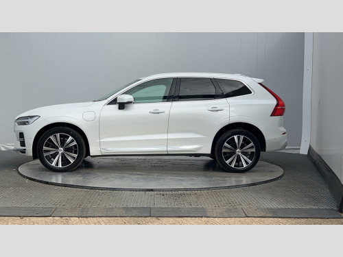 Volvo XC60 2.0 T8 455 RC PHEV Inscription Pro 5dr AWD Auto 12.3" Active TFT crystal driver's instrument display, 9" centre console touch screen, Adjustable steering wheel force, Bluetooth handsfree system, Drive mode selector, Driver alert control with lane keeping aid, Emergency services call system, Front and rear park assist, Google Automotive Services, Oncoming Lane Mitigation, Service interval indicator, Speed limiter, Speed sensitive steering, Trip computer, Volvo on call with App, Wireless/Inductive Mobile Phone Charging, 7m 10amp Charge Cable with 3 Pin Plug and 7m 1-Phase 16amp Type 2 / Mode 3 Charge Cable, 8 speed automatic transmission with start/stop + manual change functions, Active four-C chassis + four corner adaptive damper with electronic rear air suspension, Electric rear axle drive, Recharging port located in nearside front wing, DAB Digital radio, Fresh air subwoofer, Adaptive brake lights with high level LED brake lights, Auto dimming interior + exterior mirrors, Automatic headlight levelling system, Automatic LED Headlights + Active high beam incorporating daytime running lights, Chrome deco lower front bumper, Chrome lower side moulding trim with Recharge logo, Chrome window surround, Colour co-ordinated door mirrors, Electric adjustable/heated/auto power folding door mirrors, Electric front+rear windows, High gloss black grille with chrome inserts, Home safe and approach lighting, Integrated roof rails in Chrome, Power glass tilt and slide panoramic sunroof with sun curtain, Puddle lights, Rain sensor with automatic windscreen wiper activation, Rear Bumper Chrome Insert, Rear side wing doors, Rear wiper, Roof antenna, Roof spoiler, Tinted windscreen, Visible VIN plate, 12V socket in front tunnel console and luggage compartment, 2 zone electronic climate control with Clean zone air quality system and pollen filter, 3 seat bench in 2nd row, A-pillar parking ticket holder, B Pillar ventilation, Blond headlining, Bright metal luggage threshold, Centre armrest storage illumination, Centre console cupholders and storage, Floor mats, Front and rear door pocket and front cupholder illumination, Front footwell and side step illumination, Front reading lights, Front seat backrest massage, Front seat cushion extension and power adjustable front seats side support, Head restraints for all seats, Heated front seats, Heated steering wheel, Height/reach adjustable steering column, High gloss black steering wheel remote infotainment controls, Illuminated glovebox, Illuminated luggage compartment, Illuminated vanity mirrors + ticket holder, Load cover, Load protection net, Multi directional lumbar support, Nappa soft leather perforated front and ventilated upholstery, Orrefors Crystal gear lever knob, Power driver seat with memory + exterior mirrors memory, Rear armrest with cupholder, Rear footwell and side step illumination, Rear seat concealed storage, Recharge aluminium tread plates, Single front passenger seat, Tailgate illumination and ambient door lighting, Theatre lights, Underfloor stowage compartment, Versatile split folding rear seat - 60/40, Lighting Pack - XC60 PHEV, Seat pack - XC60 R-Design Pro/Inscription Pro, 5 three point seatbelts, City safety with steering support with Pedestrian + cyclist + large animal detection + front collision warning with full auto brake, Drivers knee airbag, Dual stage driver/passenger airbags, Electronic parking brake with auto hold, First aid kit, Hill descent control, Hill start assist, IC (Inflatable Curtains) - Full Length, Mechanical child locks on rear doors, Passenger airbag cut-off device, Road sign information display, Run off Road Mitigation, Run off Road Protection, Seatbelt reminder and pretensioners, SIPS (Side Impact Protection System), SIPS airbags, Slippery road and hazard light alert, Stability and Traction Control with Spin control, Engine Drag Control and Corner Traction Control, Tyre pressure monitoring system, Vehicle deceleration control with Anti-lock Brake System, Electronic Brake Distribution and Emergency Brake Assist, Warning triangle, WHIPS whiplash protection system - front, Anti-theft alarm including immobiliser/volume sensor + level sensor, Care key with user defined top speed, Key integrated remote control central locking + fuel flap with deadlocking system and auto open/close power windows, Keyless Drive (includes Keyless Entry and Keyless Start) with Handsfree Tailgate Opening/Closing, Locking wheel nuts, Private locking for tailgate, Driftwood inlays, Tailored instrument panel with contrast stitching, Tyre sealant kit + 12v compressor