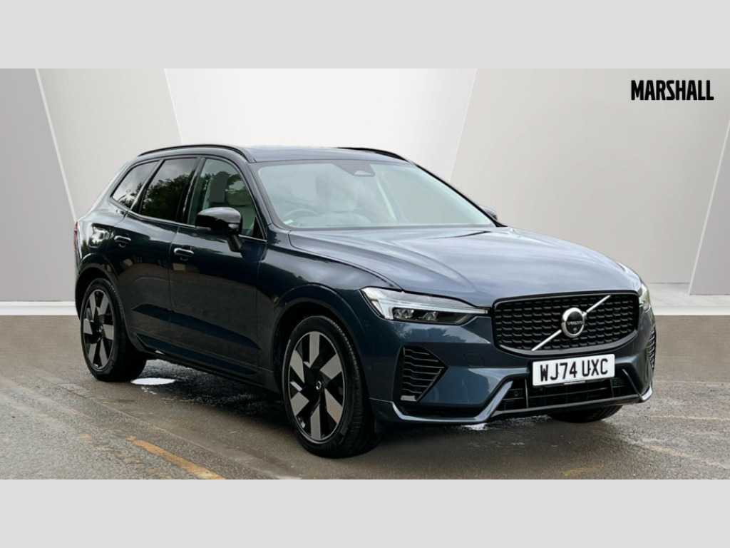 Volvo XC60 2.0 T8 [455] RC PHEV Ultimate Dark 5dr AWD Gtron 12.3" Progressive Driver Display, 360 degree surround view parking camera with side proximity sensors, 9" centre console touch screen, Adjustable steering wheel force, Apple carplay (wired), Bluetooth handsfree system, Drive mode settings, Driver alert control with lane keeping aid, Driver assistance (pilot assist and adaptive cruise control), Driver awareness - Blind spot information system with steer assist, cross traffic alert with autobrake and rear collision warning and mitigation, Emergency services call system, Front and rear park assist, Google Automotive Services, Head up display in windscreen includes road sign information, distance alert, set speed and navigation, Oncoming Lane Mitigation, PAS, Service interval indicator, Speed limiter, Speed sensitive steering, Trip computer, Volvo on call with App, Wireless/Inductive Mobile Phone Charging, 3.7 kW monophase on board charger, 7m 10amp charge cable with 3 pin plug and 6m 3 phase 16amp type 2/mode 3 charge cable, 8 speed automatic transmission with start/stop + manual change functions, Active four-C chassis + four corner adaptive damper with electronic rear air suspension, Electric rear axle drive, Recharging port located in nearside front wing, DAB Digital radio, Low speed exterior sound speaker, Premium Sound by Bowers and Wilkins, dirac live, dolby pro logic II surround sound, 14 speakers/1100W output and subwoofer, Steering wheel remote infotainment controls, Active bending headlights with adaptive shadow technology, Adaptive brake lights with high level LED brake lights, Auto dimming interior + exterior mirrors, Automatic headlight levelling system, Automatic LED Headlights + Active high beam incorporating daytime running lights, Dark tinted windows for rear side windows and cargo area, Electric adjustable/heated/auto power folding door mirrors, Electric front+rear windows, Headlight cleaning system, Heated front windscreen, High gloss black door mirrors and window surround, High gloss black front and rear bumper decoratives, High gloss black mesh front grille with high gloss black surround, Home safe and approach lighting, Integrated roof rails in high gloss black, Power glass tilt and slide panoramic sunroof with sun curtain, Puddle lights, Rain sensor with automatic windscreen wiper activation, Rear side wing doors, Rear wiper, Roof antenna, Roof spoiler, Tinted windscreen, Visible VIN plate, 12V socket in front tunnel console and luggage compartment, 2 zone electronic climate control with Clean zone air quality system and pollen filter, 3 seat bench in 2nd row, 3 Spoke tailored steering wheel with chrome trim, A-pillar parking ticket holder, Air purifier particulate matter (PM) 2.5 filter, B Pillar ventilation, Bright metal luggage threshold, Centre console cupholders and storage, Charcoal floor mats, Front and rear courtesy lights, Front and rear door pocket illumination, Front cupholder illumination, Front footwell illumination, Front reading lights, Front seat cushion extensions, Glovebox compartment with illumination, Head restraints for all seats, Heated front seats, Heated steering wheel, Height/reach adjustable steering column, Illuminated luggage compartment, Illuminated vanity mirrors + ticket holder, ISOFIX attachment on outer rear seats, Load cover, Load protection net, Multi directional lumbar support, Power driver seat with memory + exterior mirrors memory, Power folding rear headrests, Power passenger seat with memory, Rear armrest with cupholder, Rear footwell and front and rear side step illumination, Rear seat concealed storage, Recharge aluminium tread plates, Single front passenger seat, Tailgate illumination and ambient door lighting, Underfloor stowage compartment, Versatile split folding rear seat - 60/40, 5 three point seatbelts, City safety with steering support with Pedestrian + cyclist + front collision warning with full auto brake and rear auto brake, Drivers knee airbag, Dual stage driver/passenger airbags, Electronic parking brake with auto hold, First aid kit, Front seats SIPS airbags, Hill descent control - Off-road drive mode, Hill start assist, IC (Inflatable Curtains) - Full Length, Passenger airbag cut-off device, Power child locks on rear doors, Run off Road Mitigation, Run off Road Protection, Seatbelt reminder and pretensioners, SIPS (Side Impact Protection System), Slippery road and hazard light alert, Stability and Traction Control with Spin control, Engine Drag Control and Corner Traction Control, Tyre pressure monitoring system, Vehicle deceleration control with Anti-lock Brake System, Electronic Brake Distribution and Emergency Brake Assist, Warning triangle, WHIPS whiplash protection system - front, Anti-theft alarm including immobiliser/volume sensor + level sensor, Care key with user defined top speed, Key integrated remote control central locking + fuel flap with deadlocking system and auto open/close power windows, Keyless Drive (includes Keyless Entry and Keyless Start) with Handsfree Tailgate Opening/Closing, Locking wheel nuts, Private locking for tailgate, Tailored instrument panel with contrast stitching, Tyre sealant kit + 12v compressor
