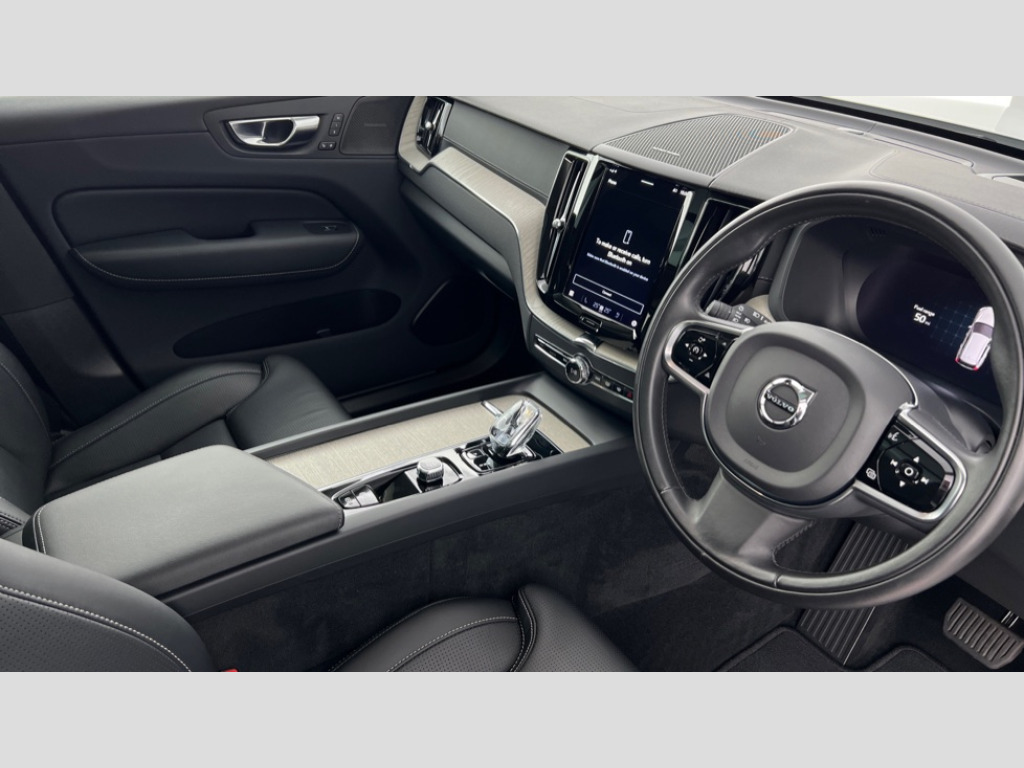 The performance of this XC60 is truly impressive, with a rapid 0 to 60 miles per hour acceleration time of just 4.6 seconds, demonstrating its dynamic capabilities. This swift acceleration sets it apart from many other vehicles in its class. Furthermore, its substantial towing weight of 2250 kg makes it a versatile choice for those needing to tow. The generous boot space also provides ample room for luggage or shopping, enhancing its practicality for everyday use and longer journeys. 12.3" Active TFT crystal driver's instrument display, 9" centre console touch screen, Adjustable steering wheel force, Bluetooth handsfree system, Drive mode selector, Driver alert control with lane keeping aid, Emergency services call system, Front and rear park assist, Google Automotive Services, Oncoming Lane Mitigation, Service interval indicator, Speed limiter, Speed sensitive steering, Trip computer, Volvo on call with App, Wireless apple carplay, Wireless/Inductive Mobile Phone Charging, 7m 10amp Charge Cable with 3 Pin Plug and 7m 1-Phase 16amp Type 2 / Mode 3 Charge Cable, 8 speed automatic transmission with start/stop + manual change functions, Active four-C chassis + four corner adaptive damper with electronic rear air suspension, Electric rear axle drive, Recharging port located in nearside front wing, DAB Digital radio, Fresh air subwoofer, Adaptive brake lights with high level LED brake lights, Auto dimming interior + exterior mirrors, Automatic headlight levelling system, Automatic LED Headlights + Active high beam incorporating daytime running lights, Chrome deco lower front bumper, Chrome lower side moulding trim with Recharge logo, Chrome window surround, Colour co-ordinated door mirrors, Electric adjustable/heated/auto power folding door mirrors, Electric front+rear windows, High gloss black grille with chrome inserts, Home safe and approach lighting, Integrated roof rails in Chrome, Power glass tilt and slide panoramic sunroof with sun curtain, Puddle lights, Rain sensor with automatic windscreen wiper activation, Rear Bumper Chrome Insert, Rear side wing doors, Rear wiper, Roof antenna, Roof spoiler, Tinted windscreen, Visible VIN plate, 12V socket in front tunnel console and luggage compartment, 2 zone electronic climate control with Clean zone air quality system and pollen filter, 3 seat bench in 2nd row, A-pillar parking ticket holder, B Pillar ventilation, Blond headlining, Bright metal luggage threshold, Centre armrest storage illumination, Centre console cupholders and storage, Floor mats, Front and rear door pocket and front cupholder illumination, Front footwell and side step illumination, Front reading lights, Front seat cushion extension and power adjustable front seats side support, Head restraints for all seats, Heated front seats, Heated steering wheel, Height/reach adjustable steering column, High gloss black steering wheel remote infotainment controls, Illuminated glovebox, Illuminated luggage compartment, Illuminated vanity mirrors + ticket holder, Load cover, Load protection net, Massage function for front seats, Multi directional lumbar support, Multicolour theatre lights, Nappa soft leather perforated front and ventilated upholstery, Orrefors Crystal gear lever knob, Rear armrest with cupholder, Rear footwell and side step illumination, Rear seat concealed storage, Recharge aluminium tread plates, Single front passenger seat, Tailgate illumination and ambient door lighting, Underfloor stowage compartment, Versatile split folding rear seat - 60/40, Lighting Pack - XC60 PHEV, Seat pack - XC60 R-Design Pro/Inscription Pro, 5 three point seatbelts, City safety with steering support with Pedestrian + cyclist + large animal detection + front collision warning with full auto brake, Drivers knee airbag, Dual stage driver/passenger airbags, Electronic parking brake with auto hold, First aid kit, Hill descent control, Hill start assist, IC (Inflatable Curtains) - Full Length, Mechanical child locks on rear doors, Passenger airbag cut-off device, Road sign information display, Run off Road Mitigation, Run off Road Protection, Seatbelt reminder and pretensioners, SIPS (Side Impact Protection System), SIPS airbags, Slippery road and hazard light alert, Stability and Traction Control with Spin control, Engine Drag Control and Corner Traction Control, Tyre pressure monitoring system, Vehicle deceleration control with Anti-lock Brake System, Electronic Brake Distribution and Emergency Brake Assist, Warning triangle, WHIPS whiplash protection system - front, Anti-theft alarm including immobiliser/volume sensor + level sensor, Care key with user defined top speed, Key integrated remote control central locking + fuel flap with deadlocking system and auto open/close power windows, Keyless Drive (includes Keyless Entry and Keyless Start) with Handsfree Tailgate Opening/Closing, Locking wheel nuts, Private locking for tailgate, Driftwood inlays, Tailored instrument panel with contrast stitching, Tyre sealant kit + 12v compressor