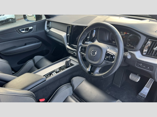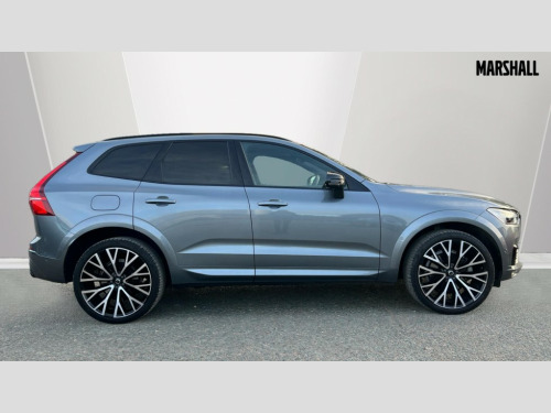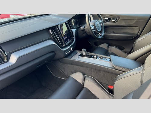 Volvo XC60 2.0 T8 Recharge PHEV R DESIGN Pro 5dr AWD Auto 12.3" Active TFT crystal driver's instrument display, 9" Touch screen, Adjustable steering wheel force, Bluetooth handsfree system, Drive mode selector, Driver alert control with lane keeping aid, Oncoming Lane Mitigation, Sensus navigation with European mapping and traffic information, Service interval indicator, Speed limiter, Speed sensitive steering, Trip computer, Voice control system, Volvo on call, 8 speed automatic transmission with start/stop + manual change functions, Active four-C chassis + four corner adaptive damper with electronic rear air suspension, All wheel drive system, Electric rear axle drive, Recharging port located in nearside front wing, DAB Digital radio, Active bending headlights with adaptive shadow technology, Adaptive brake lights with high level LED brake lights, Auto dimming interior + exterior mirrors, Automatic headlight levelling system, Body colour bumpers, Colour coordinated auto folding and heated power door mirrors, Dark tinted windows for rear side windows and cargo area, Dual integrated exhaust pipes with high gloss black surround, Electric front+rear windows, Headlamp cleaning system, Heated aqua blades, High gloss black door mirrors, High gloss black mesh front grille with high gloss black surround, High gloss black window frame surround, Home safe and approach lighting, Illuminated side steps, Integrated roof rails in high gloss black, LED Headlights + Active high beam incorporating daytime running lights, Power glass tilt and slide panoramic sunroof with sun curtain, Rain sensor with automatic windscreen wiper activation, Rear wiper, Roof antenna, Roof spoiler, Tinted windscreen, Visible VIN plate, 12V socket in front tunnel console and luggage compartment, 2 zone electronic climate control with Clean zone air quality system and pollen filter, 3 spoke sport leather steering wheel, Auxiliary fuel fired heater with pre conditioning functions, B Pillar ventilation, Black headlining, Bright metal luggage threshold, Centre armrest storage illumination, Centre console cupholders and storage, Charge cable bag, Contour sports seats with nappa leather/textile upholstery, Extended front seat cushions, Floor mats, Front and rear door pocket and front cupholder illumination, Front footwell illumination, Front reading lights, Head restraints for all seats, Heated front seats, Heated steering wheel, Height/reach adjustable steering column, High gloss black steering wheel remote infotainment controls, Illuminated glovebox, Illuminated luggage compartment, Illuminated vanity mirrors + ticket holder, Load cover, Load protection net, Multicolour theatre lights, Rear armrest / integral cup holders / storage tray, Rear footwell illumination, Rear seat concealed storage, Recharge aluminium tread plates, Sport leather gear knob, Sport pedals, Tailgate illumination and ambient door lighting, Underfloor stowage compartment, Versatile split folding rear seat - 60/40, 5 three point seatbelts, City safety with steering support with Pedestrian + cyclist + large animal detection + front collision warning with full auto brake, Drivers knee airbag, Dual stage driver/passenger airbags, Electronic parking brake with auto hold, First aid kit, Hill descent control, Hill start assist, IC (Inflatable Curtains) - Full Length, Passenger airbag cut-off device, Road sign information display, Run off Road Mitigation, Run off Road Protection, Seatbelt reminder and pretensioners, SIPS (Side Impact Protection System), SIPS airbags, Slippery road and hazard light alert, Stability and Traction Control with Spin control, Engine Drag Control and Corner Traction Control, Tyre pressure monitoring system, Vehicle deceleration control with Anti-lock Brake System, Electronic Brake Distribution and Emergency Brake Assist, Warning triangle, WHIPS whiplash protection system - front, Anti-theft alarm including immobiliser/volume sensor + level sensor, Care key with user defined top speed, Key integrated remote control central locking + fuel flap with deadlocking system and auto open/close power windows, Keyless Drive (includes Keyless Entry and Keyless Start) with Handsfree Tailgate Opening/Closing, Locking wheel nuts, Private locking for tailgate, Metal mesh inlays, Tailored instrument panel with contrast stitching, Tyre sealant kit + 12v compressor