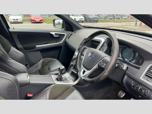 Volvo XC60 D4 [190] R DESIGN 5dr Active TFT Crystal Display, Bluetooth hands free telephone kit, Information centre, Intelligent driver information system (IDIS), Service interval indicator, Diesel particulate filter, Sports chassis, Auxiliary input socket, DAB Digital radio, Steering wheel mounted remote controls, Adaptive brake lights, Black roof rails, Body colour bumpers, Chrome side window trim, Electric front+rear windows, Electrically adjustable and heated door mirrors, Front skid plate, Headlamp levelling, Home safe and approach lighting, LED daytime running lights, Matt silver finish door mirrors, Rain sensor windscreen wipers, Rear diffuser, Rear spoiler, Rear wiper, Side marker illumination, Tinted windscreen, Twin exhaust pipes, 12V socket in front + rear tunnel console, 3 spoke steering wheel, 4 aluminium high level anchor points, A-pillar parking ticket holder, Air quality control system, Aluminium sports pedals, B Pillar ventilation, Charcoal headlining, Electronic climate control (ECC), Footwell lights, Front centre armrest with storage compartment and cupholders, Front sports seats, Front/rear reading lights, Head restraints for all seats, Height adjustable drivers seat with lumbar support, Height/reach adjustable steering column, Illuminated driver/passenger vanity mirrors, Isofix attachments on outer rear seats, Leather steering wheel, Load cover, Lockable load floor, Passenger seat adjustable for lumbar support, Sports floor mats, Versatile split folding rear seat - 40/20/40, WHIPS - Whiplash Protection System, 5 three point seatbelts, ABS/EBD, City safety, DSTC-Dynamic Stability and Traction Control, Dual stage driver/passenger airbags, EBA, Electronic parking brake, Hill start assist, Hydraulic Brake Assist (HBA), Inflatable curtain, Passenger airbag deactivate switch, Roll over protection, RSC - Roll stability control, Seatbelt pre-tensioners, SIPS airbags, Tyre pressure monitor, Warning triangle, Anti-theft alarm including immobiliser/volume sensor + level sensor, Fuel flap with deadlocking system, Key integrated remote control central locking, Locking wheel nuts, Shimmer graphite aluminium trim