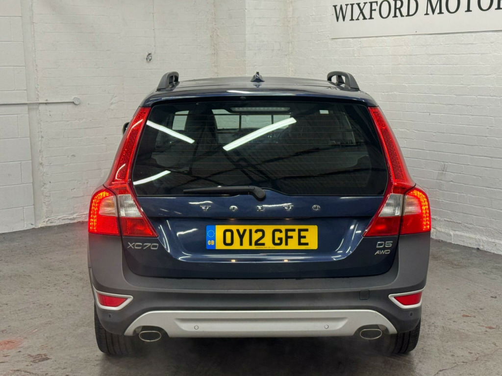 This stunning 2012 Volvo XC70 D5 SE Lux is a remarkable find, having been cherished by just one owner from new and boasting a full service history. Supplied with two keys, huge specification including full leather interior, heated seats, navigation system, cruise control, powered folding mirrors, powered tailgate, auto xenon headlights, cruise control, bluetooth phone kit, audio streaming, parking sensors. Under the bonnet, you'll find a robust 2.4 litre D5 diesel engine paired with a capable four wheel drive system, ensuring confident performance in various conditions. The SE Lux trim level means this XC70 comes well equipped, featuring a Bluetooth Handsfree System for seamless connectivity, Rear Park Assist to aid with parking manoeuvres, and Electronic Climate Control for consistent cabin comfort. Additionally, the Power Driver Seat with Memory function for both the seat and exterior mirrors adds a touch of everyday luxury.The generous boot space of this Volvo XC70 makes it an ideal choice for those who need practicality without compromising on style or performance. Its impressive acceleration, reaching 0-60mph in just 7.8 seconds, demonstrates that this capable estate car offers a dynamic driving experience. These highlights, combined with its single owner provenance and comprehensive feature set, set this XC70 apart from other vehicles in its class, offering a compelling package for any discerning buyer. v socket - front, 12v socket - rear, 18in alloy wheels - pan diamond cut, a-pillar parking ticket holder, abs - anti-lock brake system, adaptive brake lights, air conditioning, air quality system, airbags - drivers dual stage, airbags - dual chamber sips, airbags - passenger dual stage, anti-theft alarm, armrest - front centre, armrest - front and rear centre with cupholders and storage, auto dimming rear view mirror, aux input, b-pillar ventilation, bluetooth handsfree system, central locking - remote, charcoal lower door mouldings-wheel arch extensions-lower front and rear bumper mouldings, chrome rotary knobs, chrome trim on air vents and side defrosters and mannequin, chrome window trim, city safety, climate control - electronic, colour display screen - 7in, cruise control, daytime running lights, door mirrors - body coloured, door mirrors - heated power adjustment, door mirrors - power folding with ground lights, dynamic stability control, eba - emergency brake assistance, electric windows - front and rear, exhaust pipes - twin aluminium, floor mats, forward folding front passenger seat, front fog lights, front reading lights, front and rear reading lights, grocery bag holder, head restraints - all seats, headlight cleaning system, headlights - active bending, headlights - levelling system, headlights - xenon, heated windscreen washer nozzles, height and reach adjustable steering column, high level led brake light, high performance multimedia sound audio system - cd-dvd, hill descent control, home safe and approach lighting, ic - inflatable curtains, idis - intelligent driver information system, isofix child seat preparation - rear, illuminated driver and passenger vanity mirrors, information centre, instrument cluster - chronograph dials, interior trim - xc crossed aluminium, locking wheel nuts, luggage compartment - 3d cargo system, luggage compartment - cover, luggage compartment - lockable load floor, passenger airbag cut-off switch, pollen filter, power driver seat with memory for seat and exterior mirrors, power folding rear headrests, power operated tailgate, power parking brake, power steering system, rain sensor, rear centre armrest with cupholders and storage, rear park assist, rear reading lights, roof rails - black, sips - side impact protection system, satellite navigation - inc rds-tmc and european mapping dvd - voice activated, seats - drivers height adjustment with lumbar support, seats - front lumbar support, seats - passenger height adjustment with lumbar support, side marker illumination, silver inserts in front bumper and side mouldings, skid plates - front and rear - silver, steering wheel - leather with silk metal inserts, steering wheel remote audio controls, tinted windows - windscreen, traction control, tyre sealant kit and compressor, usb and aux input, versatile split folding rear seat - 40-20-40, visible vin plate, whips - whiplash protection system - front seats, warning triangle
