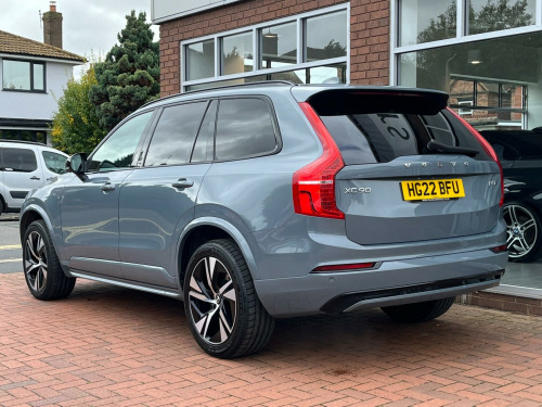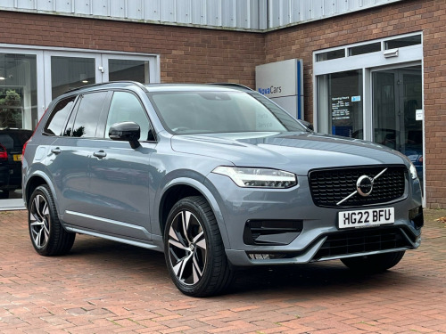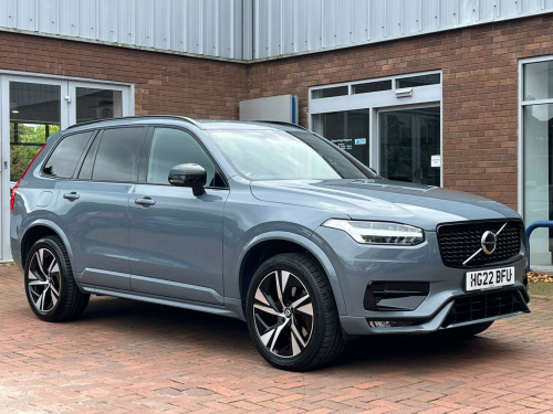 This 2022 Volvo XC90 B5 R-Design is a superb example, boasting a full dealership service history and having had only one owner from new. This impressive seven seat SUV features a 2.0 litre petrol hybrid engine paired with Four Wheel Drive, ensuring capable performance and efficiency, meeting Euro 6 emissions standards. Inside, you'll find luxurious Nappa Soft Leather in Charcoal, a power driver's seat with memory and multi directional lumbar support, and a 360 degree surround view parking camera for effortless manoeuvring.Experience advanced driving assistance with Pilot Assist and Adaptive Cruise Control, keeping you comfortable and secure on longer journeys. The Bluetooth handsfree system allows for seamless connectivity. With a towing weight of 2400 kg, this XC90 is as practical as it is refined. Its 0-60mph acceleration in just 7.3 seconds demonstrates a responsive and engaging driving experience, setting it apart from other vehicles in its class.. 12.3in Active TFT Crystal Drivers Information Display, 12v Socket, 2-Zone Electronic Climate Control with CleanZone Air Quality System with Pollen Filter, 20in Alloy Wheels - 5-Spoke Diamond Cut - Black, 2nd Row Centre Armrest with Storage and Cupholders, 9in Centre Console Portrait Touch Screen, A-Pillar Parking Ticket Holder, Adaptive Brake Lights including High Level LED Brake Light, Adjustable Steering Force, Ambient Door and Instrument Panel Lighting, Anti-Theft Alarm including Immobiliser - Volume Sensor and Level Sensor, Auto Dimming Interior and Exterior Mirrors, Automatic Headlight Levelling System, Automatic LED Headlights with Active High Beam incorporating Day Running Lights, B-Pillar Ventilation, Bluetooth Handsfree System, Bright Metal Luggage Compartment Threshold, Care Key with User Defined Top Speed, Cargo Divider with Grocery Bag Holder, Centre Console Cupholders and Storage, Charcoal Headlining, City Safety, Colour Co-Ordinated Autofolding Heated Power Door Mirrors, DAB - Digital Audio Broadcasting Radio, Dark Tinted Windows - Rear Side Windows and Cargo Area, Drive Mode Settings, Driver Assistance - Pilot Assist and Adaptive Cruise Control, Driver Awareness, Driver Knee Airbag, Drivers Side Lower Dashboard Storage Compartment, Dual Stage Driver and Passenger Airbags, First Aid Kit, Front Footwell and Side Step Illumination, Front LED Foglights, Front Seat Cushion Extensions, Front and Rear Door Pocket and Front Cupholder Illumination, Front and Rear Park Assist, Front and Rear Power Windows, Front and Rear Reading Lights - Theatre Lighting and Centre Armrest Storage Illumination, Handsfree Tailgate Opening-Closing, Heated Front Seats, Height and Reach Adjustable Steering Column, High Gloss Black Deco Lower Front Bumper, High Gloss Black Door Mirrors, High Gloss Black Lower Rear Valance, High Gloss Black Mesh Front Grille with Surround, High Gloss Black Window Surround, Hill Descent Control, Hill Start Assist, Home Safe and Approach Lighting, IC - Inflatable Curtains - Full Length, ISOFIX Attachment, Illuminated Front and Rear Tread Plates, Illuminated Vanity Mirrors with Ticket Holder, Integrated Sun Curtains - Rear Doors, Key Integrated Remote Control Central Locking including Fuel Flap with Deadlocking System and Auto Open-Close Power Windows, Keyless Drive, Lane Keeping Aid with Driver Alert Control, Load Protection Net, Lockable Glovebox Compartment with Illumination, Locking Wheel Nuts, Luggage Compartment Illumination, Mechanical Child Locks - Rear Doors, Multicolour Theatre Lighting, Oncoming Lane Mitigation, Outboard Armrest with Cupholder and Storage for Third Row Passengers, P-SIM Card - Access to 1 Year - 100GB of Data, Passenger Airbag Cut-Off Switch, Power Driver Seat with Multi-Directional Lumbar Support and Memory for Seat and Exterior Mirrors, Power Folding 2nd Row Headrests, Power Operated Tailgate, Power Parking Brake with Auto Hold Function, Power Passenger Seat with Multi-Directional Lumbar Support and Memory, Private Locking for Glovebox and Tailgate, Puddle Lights, Rain Sensor - Automatic Windscreen Wiper Activation, Rear Footwell and Side Step Illumination, Rear Park Assist Camera, Road Sign Information Display, Roof Antenna, Roof Rails - Integrated High Gloss Black, Roof Spoiler, Run-Off Road Mitigation, Run-Off Road Protection, SIPS - Side Impact Protection System, SIPS Airbags - Front Seats, Seatbelt Reminder and Pretensioners, Semi-Automatic Load Cover, Sensus Connect with High Performance Sound, Sensus Navigation, Slippery Road and Hazard Light Alert, Speed Limiter, Speed Sensitive Steering, Sports Floor Mats, Sports Leather Gear Knob, Sports Pedals, Stability and Traction Control, Steering Wheel Remote Infotainment Controls, Tailgate Illumination, Tailored Instrument Panel and Door Tops with Contrast Stitching, Tailored Sports Steering Wheel, Tempa Spare Wheel and Jack, Three 2nd Row Individual Folding Passenger Seats with Fore-Aft Adjustment, Touring Chassis, Two 3rd Row Indivi. Full dealership history