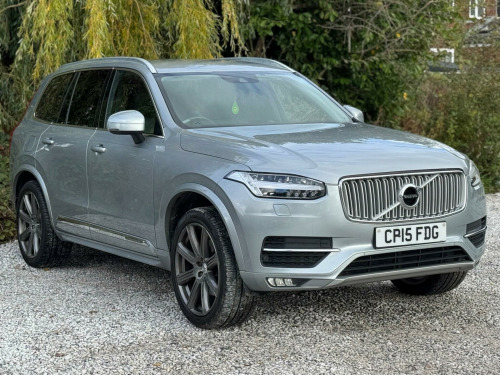 2 KEYSFULL SERVICE HISTORY - 11 SERVICES - 8 MAIN DEALER SERVICES - SERVICE INTERVALS  8K, 20K, 29K, 44K, 55K, 61K, 72K, 83K, 96K, 101K, 106K - CAMBELT DONE  101,152 - MOST RECENT SERVICE DONE  106,338EURO 6ULEZ COMPLIANTEquipment:Navigation HDDClimate ControlParking Sensor(s)Leather Trim7 Seats21'' Alloy WheelsPrivacy GlassThis 2015 Volvo XC90 D5 Inscription offers a premium driving experience with its powerful 2.0L diesel engine and Four Wheel Drive system, ensuring confident handling in all conditions. As a Euro 6 compliant vehicle, it meets stringent emission standards. This spacious SUV comfortably seats seven, making it ideal for families or those needing extra capacity. The Inscription trim level boasts luxurious Nappa soft leather upholstery, perforated and ventilated in Charcoal, complemented by striking 21in Diamond Cut alloy wheels. For added comfort, it features power adjustable front seat side support and a heated steering wheel.The XC90 D5 Inscription is designed for performance and enjoyment, accelerating from 0-60mph in a swift 7.4 seconds. This impressive acceleration, combined with its Euro 6 rating and Four Wheel Drive, demonstrates its superior capability compared to similar vehicles. The Sensus Connect system, featuring a Premium Sound system by Bowers and Wilkins, provides an exceptional audio experience. Furthermore, its substantial towing weight of 2700 kg makes it a versatile choice for those who need to tow. nsus connect with premium sound by bowers and wilkins, 21in alloy wheels - 8-spoke diamond cut, winter pack, heated front seats, heated steering wheel, power adjustable front seat side support, power front seat cushion extensions, nappa soft leather perforated and ventilated - charcoal, 12.3in active tft crystal drivers information display, 12v socket - front, 12v socket - rear, 20in alloy wheels - 10-spoke diamond cut light grey, 3 spoke leather steering wheel, 9in centre console touch screen, a-pillar parking ticket holder, abs - anti-lock brake system, access to a range of selected web apps and internet browser, adaptive brake lights, additional slot for data sim, air quality system, airbags - drivers dual stage, airbags - passenger dual stage, airbags - sips - side impact protection system, ambient door and instrument panel lighting, anti-theft alarm, armrest - 3rd row with cupholder and storage, armrest - 3rd row with storage, armrest - front centre with storage, armrest - rear centre with storage, auto dimming interior and exterior mirrors, auto hold function, b-pillar ventilation, bluetooth handsfree system, bright metal luggage compartment threshold, carpet and floor mats - charcoal, chassis - touring, chrome door handle deco strip and window surround, chrome side mouldings and incription logo, city safety, climate control - electronic 2-zone, collision warning with full auto brake, connected service booking, cruise control, cupholders - front centre, cupholders - front illumination, cupholders - rear centre, dab - digital audio broadcasting radio, dac - driver alert control, dashboard monitor, daytime running lights, deadlock system, door mirrors - body coloured, door mirrors - power folding with ground lights, door mirrors with memory, door sill tread plates - illuminated, dynamic stability control, eba - emergency brake assistance, ebd - electronic brake distribution, electric windows - front and rear, emergency call, engine drag control, european mapping, first aid kit, floor mats, front footwell lighting, front grille - matt silver with chrome surround, front led fog lights with cornering function, front and rear reading lights, grocery bag holder, hard disk drive for music storage, headlight cleaning system, headlights - active bending, headlights - cornering light function, headlights - high beam assistant, headlights - led, headlights - levelling system, headlights - tunnel sensor, headlining - blond, height and reach adjustable steering column, high level led brake light, hill start assist, home safe and approach lighting, ic - inflatable curtains, isofix child seat preparation - rear, illuminated driver and passenger vanity mirrors, illuminated gear knob, illumination pack, immobiliser, instrument cluster - leather, integrated sun curtains - rear doors, keyless drive, ldw - lane departure warning, level sensor, lifetime annual map updates, lockable glovebox compartment with illumination, locking wheel nuts, luggage compartment - cover, luggage compartment illumination, mechanical child locks - rear doors, metal mesh inlays, multicolour theatre lighting, passenger airbag cut-off switch, pedestrian and cyclist detection, pollen filter, power operated tailgate, power parking brake, power passenger seat, rds-tmc - traffic message channel, rain sensor, rear footwell illumination, rear park assist, remote door unlocking, road sign information display, roof rails - silver, sips - side impact protection system, safety and security package - 3 years, seats - 2 individual folding 3rd row, seats - 3 individual folding 2nd row, seats - drivers electric adjustment, seats - drivers memory, seats - front lumbar support, seats - passenger memory, sensus connect with high performance sound, sensus navigation, side step illumination, speakers x10, speed limiter, speed sensitive steering, spin control, steering wheel remote audio controls, stolen vehicle tracking, storage - front door pocket, storage - rear door pocket, tailgate illumination, traction control, twin exhaust with integrated end pipes, tyre pressure monitoring system, tyre sealant kit and compressor, usb and aux input, vehicle deceleration control, voice activated control, volume sensor, volvo on call, whips - whiplash protection system - front seats, warning triangle