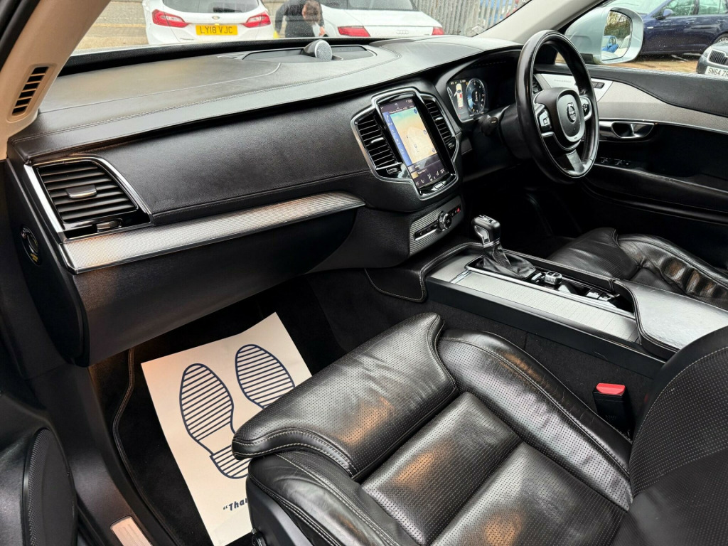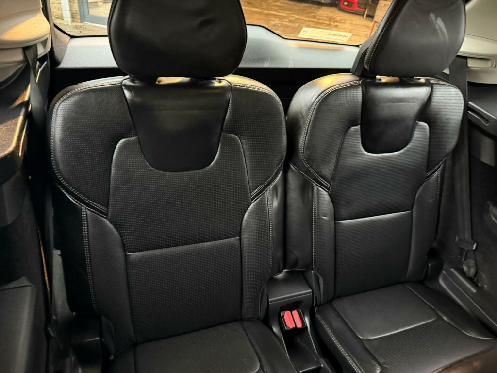 This 2015 Volvo XC90 D5 Inscription is a superb example, having had only two owners from new. This premium seven seater SUV boasts a powerful 2.0 litre Euro 6 diesel engine, paired with a smooth four wheel drive system for confident handling in all conditions. The Inscription trim level signifies a high standard of luxury, further enhanced by striking 21 inch diamond cut alloy wheels. Inside, you will find sumptuous Nappa soft leather upholstery, both perforated and ventilated for ultimate comfort, with power adjustable front seat side support for a personalised driving position.Experience an elevated journey with the advanced Sensus Connect system, featuring a premium sound experience from Bowers and Wilkins, ensuring every drive is accompanied by exceptional audio quality. The Head Up Display projects vital information onto the windscreen, allowing you to keep your eyes on the road. This XC90 is not only refined but also capable, with a towing weight of 2700 kg, making it a versatile choice for various needs. Its impressive acceleration, reaching 0-60mph in just 7.4 seconds, demonstrates a blend of performance and efficiency that sets it apart from other vehicles in its class. nsus connect with premium sound by bowers and wilkins, 21in alloy wheels - 8-spoke diamond cut, head-up display in windscreen, heated front seats, heated steering wheel, power adjustable front seat side support, power front seat cushion extensions, nappa soft leather perforated and ventilated - charcoal, 12.3in active tft crystal drivers information display, 12v socket - front, 12v socket - rear, 20in alloy wheels - 10-spoke diamond cut light grey, 3 spoke leather steering wheel, 9in centre console touch screen, a-pillar parking ticket holder, abs - anti-lock brake system, access to a range of selected web apps and internet browser, adaptive brake lights, additional slot for data sim, air quality system, airbags - drivers dual stage, airbags - passenger dual stage, airbags - sips - side impact protection system, ambient door and instrument panel lighting, anti-theft alarm, armrest - 3rd row with cupholder and storage, armrest - 3rd row with storage, armrest - front centre with storage, armrest - rear centre with storage, auto dimming interior and exterior mirrors, auto hold function, b-pillar ventilation, bluetooth handsfree system, bright metal luggage compartment threshold, carpet and floor mats - charcoal, chassis - touring, chrome door handle deco strip and window surround, chrome side mouldings and incription logo, city safety, climate control - electronic 2-zone, collision warning with full auto brake, connected service booking, cruise control, cupholders - front centre, cupholders - front illumination, cupholders - rear centre, dab - digital audio broadcasting radio, dac - driver alert control, dashboard monitor, daytime running lights, deadlock system, door mirrors - body coloured, door mirrors - power folding with ground lights, door mirrors with memory, door sill tread plates - illuminated, dynamic stability control, eba - emergency brake assistance, ebd - electronic brake distribution, electric windows - front and rear, emergency call, engine drag control, european mapping, first aid kit, floor mats, front footwell lighting, front grille - matt silver with chrome surround, front led fog lights with cornering function, front and rear reading lights, grocery bag holder, hard disk drive for music storage, headlight cleaning system, headlights - active bending, headlights - cornering light function, headlights - high beam assistant, headlights - led, headlights - levelling system, headlights - tunnel sensor, headlining - blond, height and reach adjustable steering column, high level led brake light, hill start assist, home safe and approach lighting, ic - inflatable curtains, isofix child seat preparation - rear, illuminated driver and passenger vanity mirrors, illuminated gear knob, illumination pack, immobiliser, instrument cluster - leather, integrated sun curtains - rear doors, keyless drive, ldw - lane departure warning, level sensor, lifetime annual map updates, lockable glovebox compartment with illumination, locking wheel nuts, luggage compartment - cover, luggage compartment illumination, mechanical child locks - rear doors, metal mesh inlays, multicolour theatre lighting, passenger airbag cut-off switch, pedestrian and cyclist detection, pollen filter, power operated tailgate, power parking brake, power passenger seat, rds-tmc - traffic message channel, rain sensor, rear footwell illumination, rear park assist, remote door unlocking, road sign information display, roof rails - silver, sips - side impact protection system, safety and security package - 3 years, seats - 2 individual folding 3rd row, seats - 3 individual folding 2nd row, seats - drivers electric adjustment, seats - drivers memory, seats - front lumbar support, seats - passenger memory, sensus connect with high performance sound, sensus navigation, side step illumination, speakers x10, speed limiter, speed sensitive steering, spin control, steering wheel remote audio controls, stolen vehicle tracking, storage - front door pocket, storage - rear door pocket, tailgate illumination, traction control, twin exhaust with integrated end pipes, tyre pressure monitoring system, tyre sealant kit and compressor, usb and aux input, vehicle deceleration control, voice activated control, volume sensor, volvo on call, whips - whiplash protection system - front seats, warning triangle